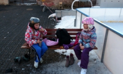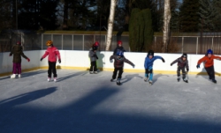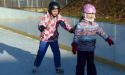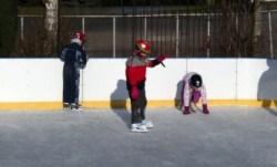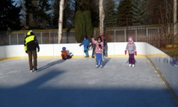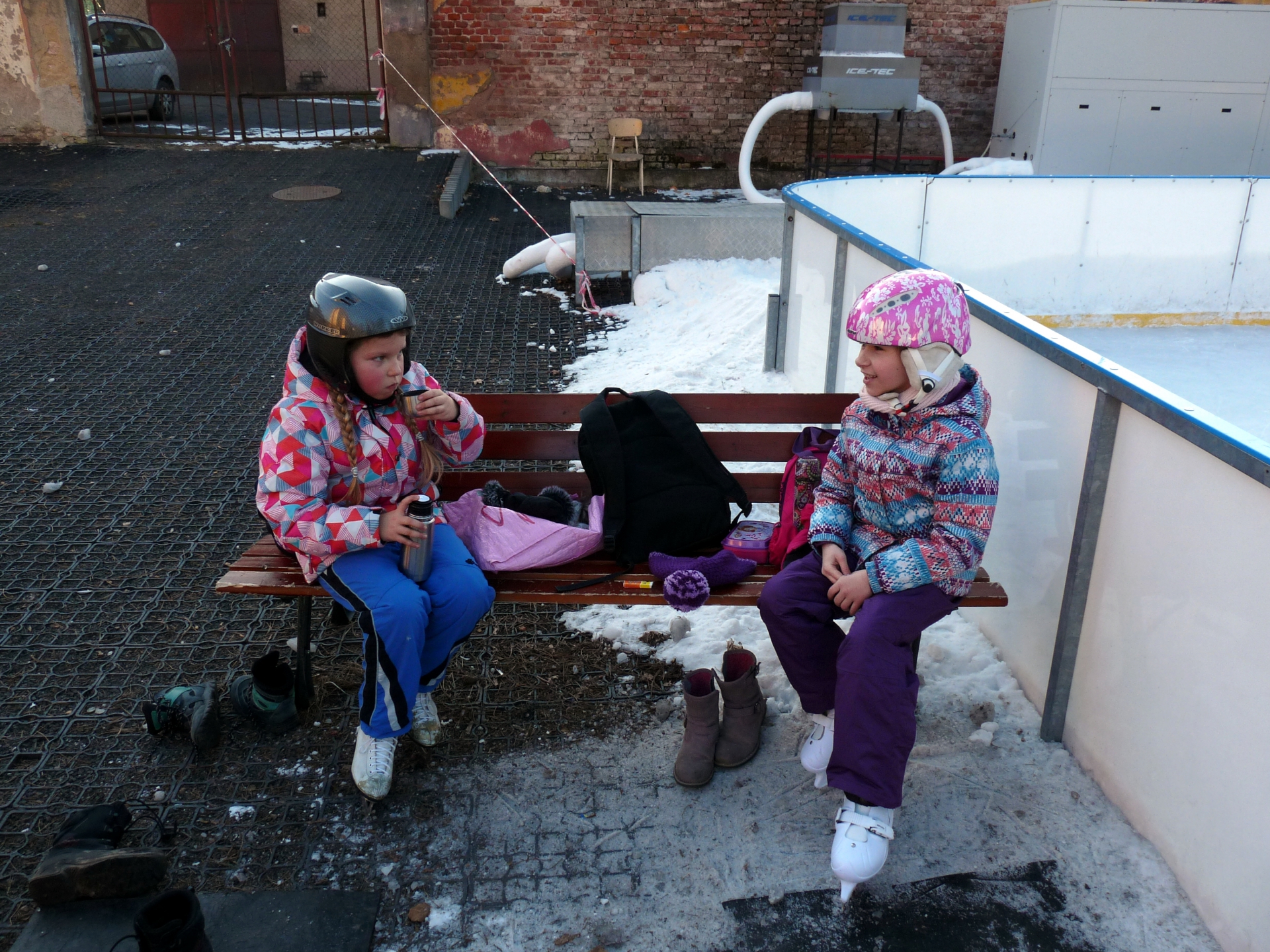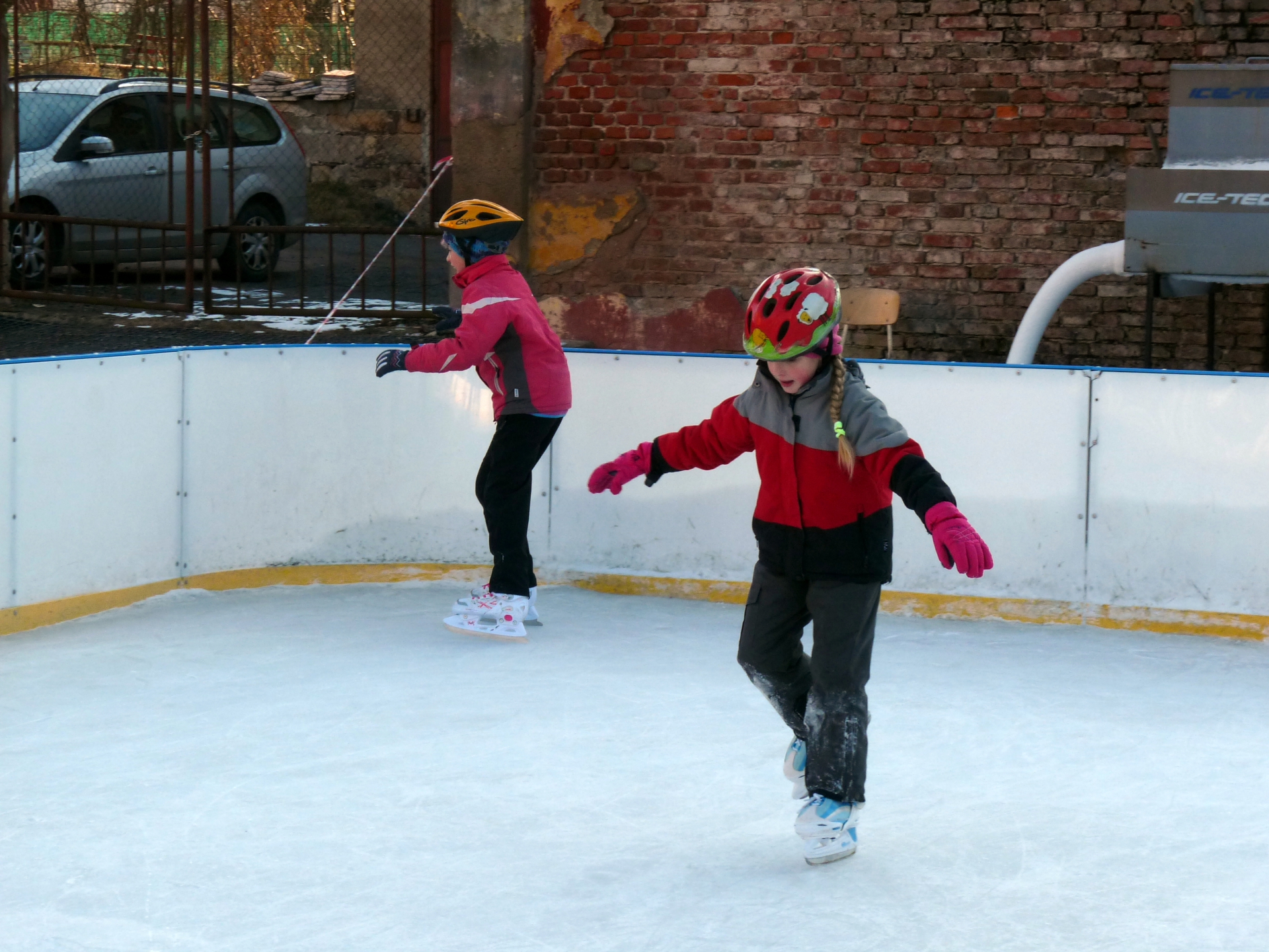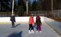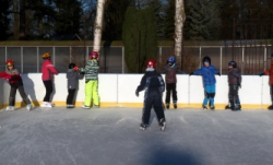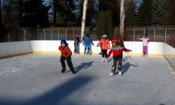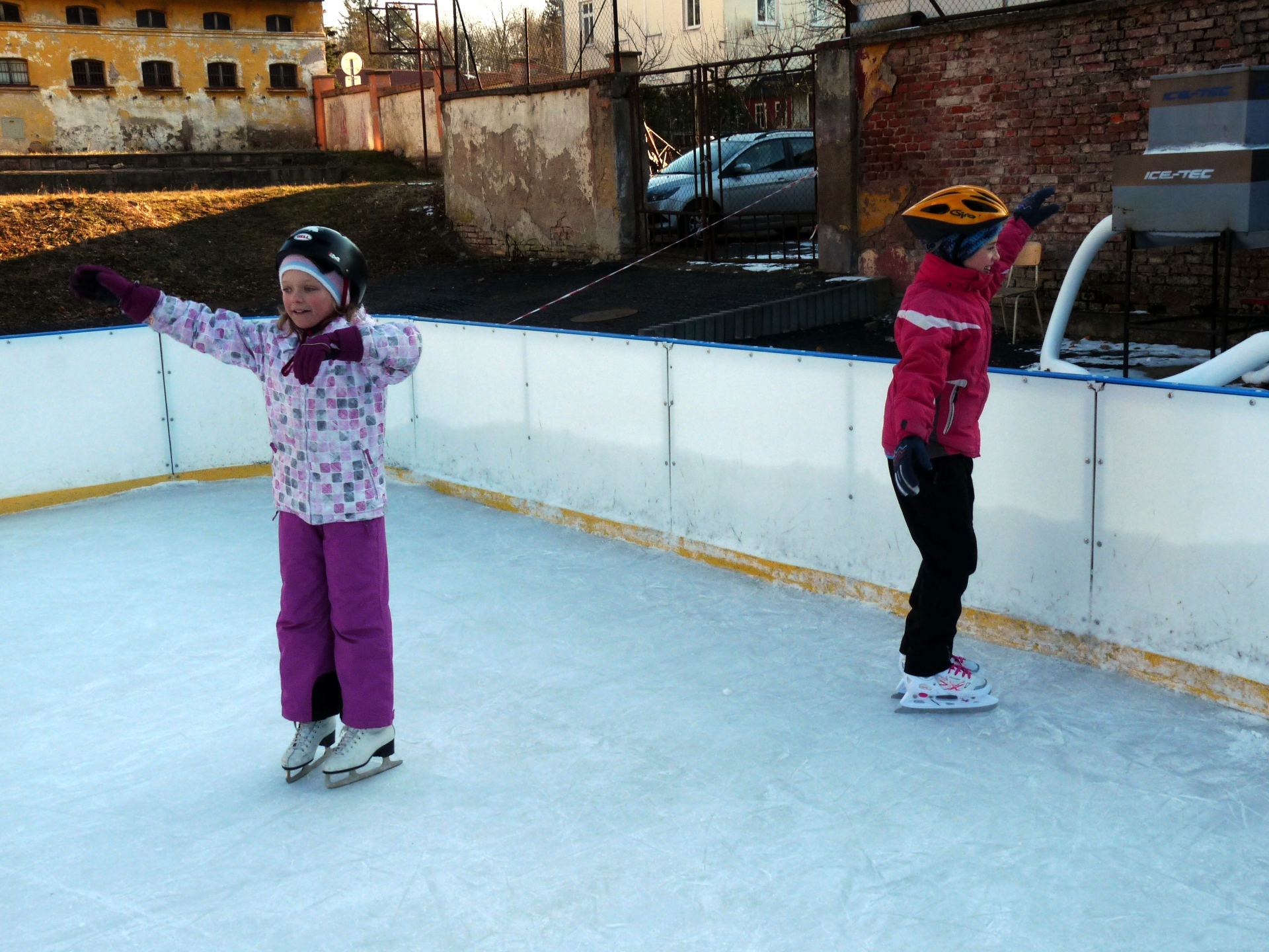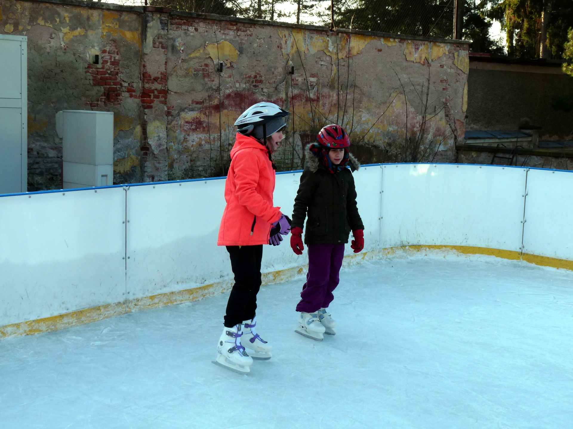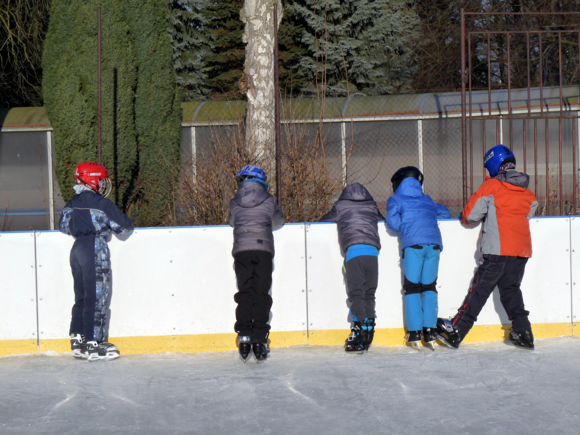 Navíc nám přálo počasí a ohřívalo nás sluníčko. Na ledě si děti zahrály na olympiádu, učily se bruslit a společně si zahrály na vlky a ovečky.