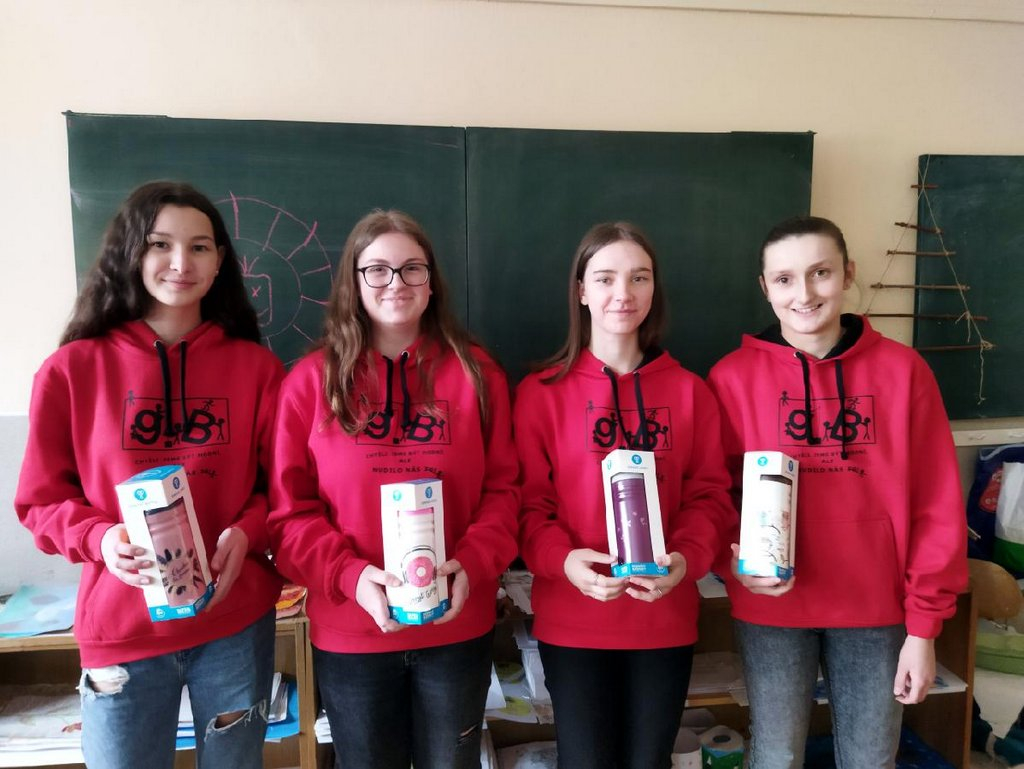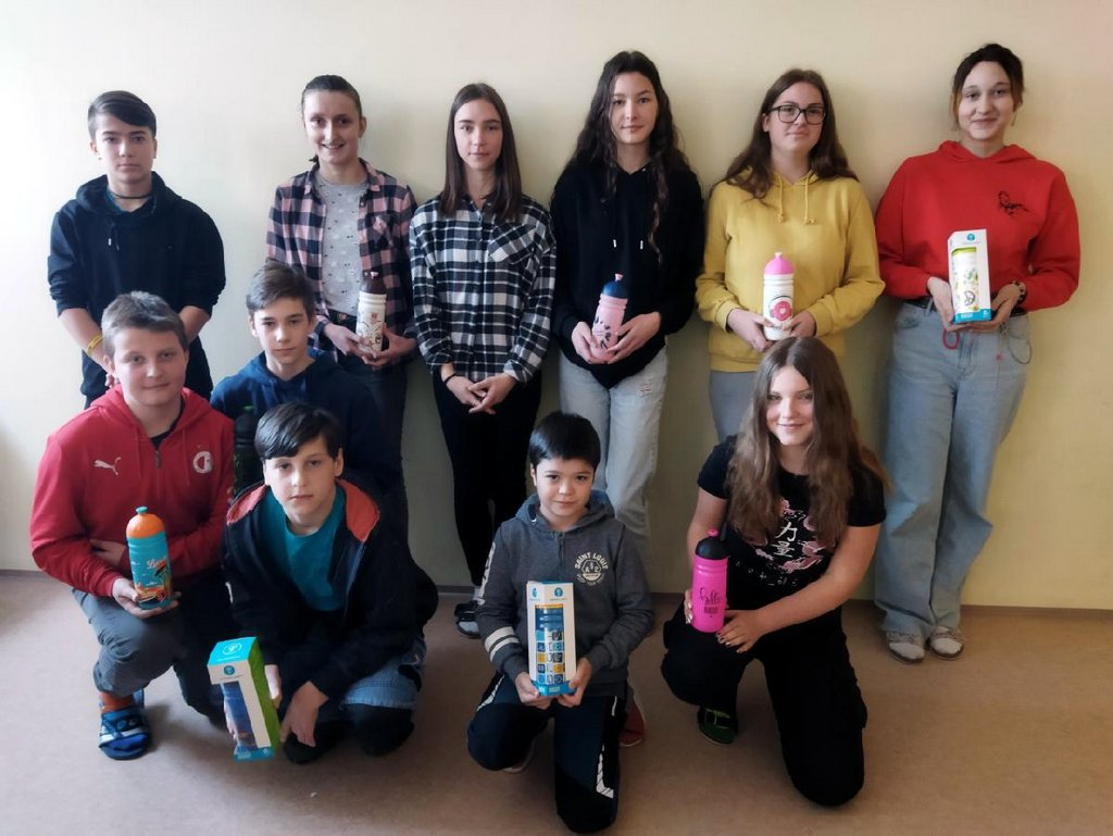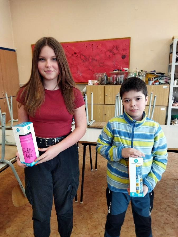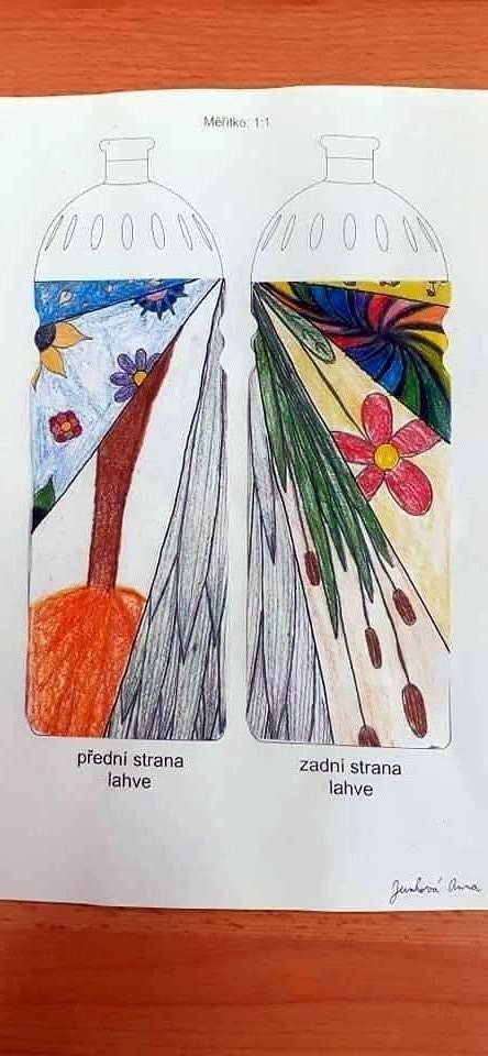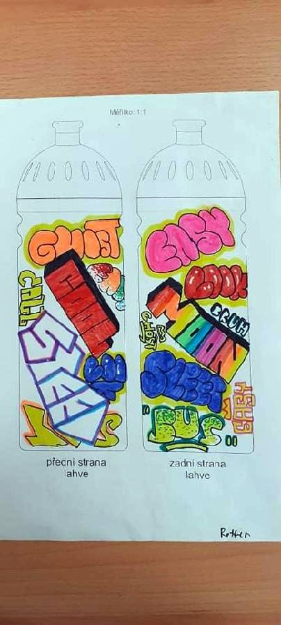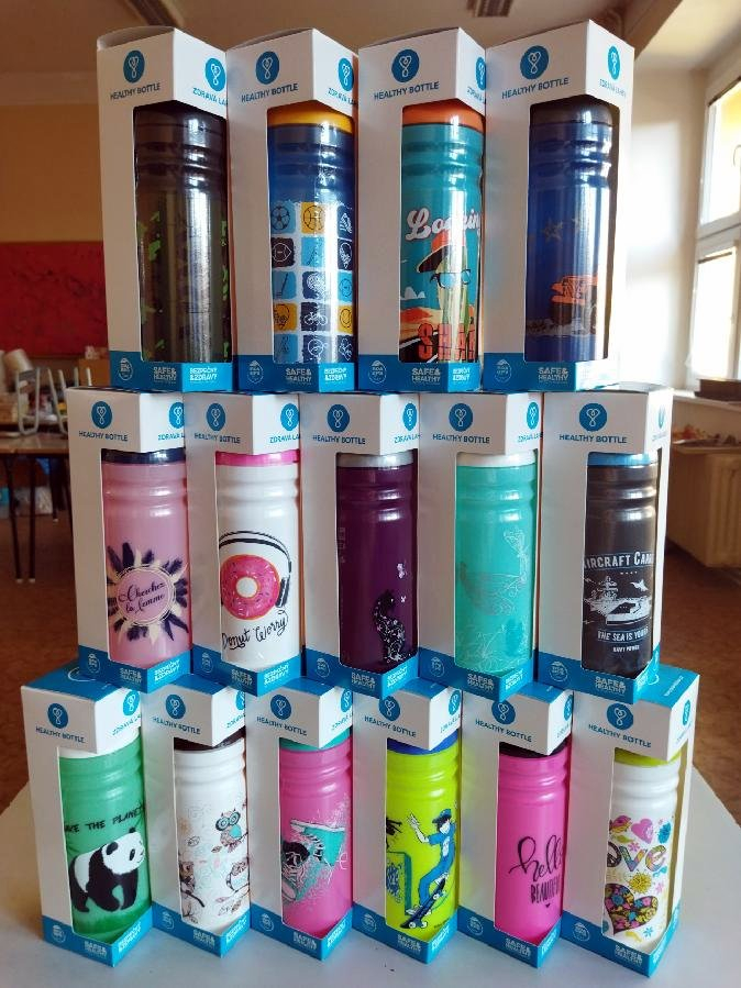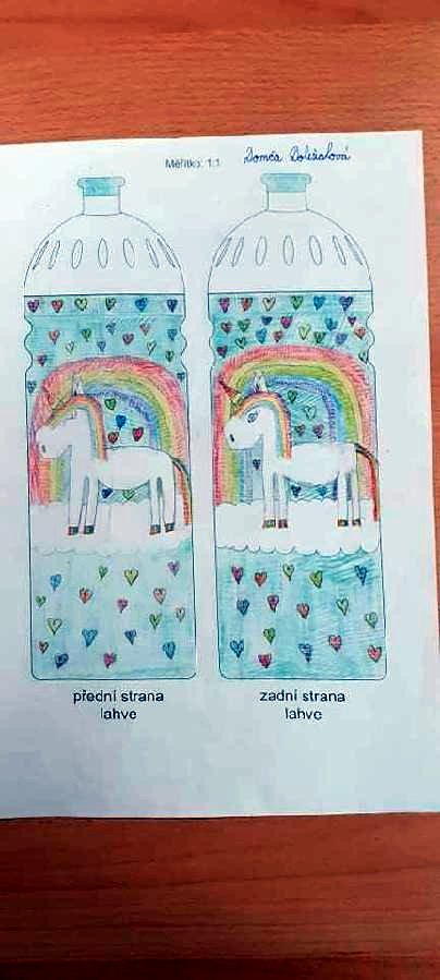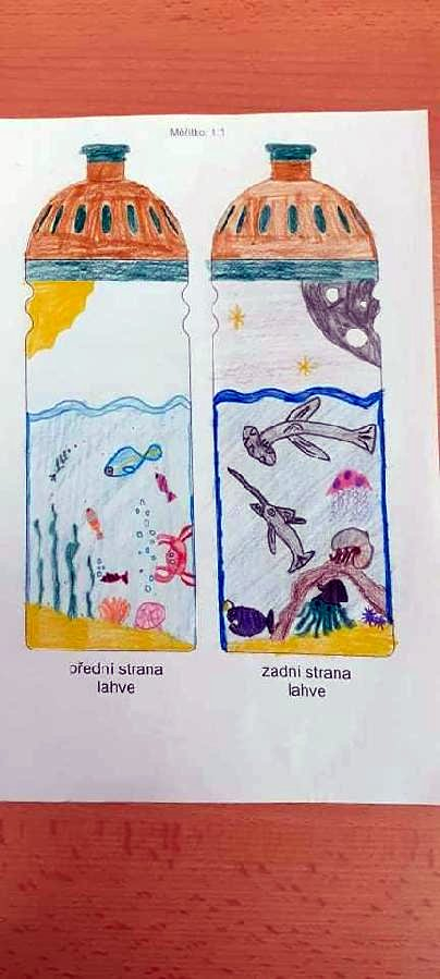 Oslovila nás firma R&B Mědílek, která vyrábí Zdravé lahve. Připravuje novou kolekci a chtěla zjistit, jaký motiv na lahvi by děti chtěly (uvítaly). A tak v rámci hodin výtvarné výchovy dostaly šablony lahví, které pak dle své fantazie graficky zpracovaly. Jejich snahu firma ocenila po svém – věnovala ZDRAVÉ LAHVE.