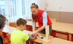 Program byl rozdělen do dvou částí. První část byla teoretická a skládala se z přednášek na téma dýchací a oběhová soustava. Druhá část již byla praktická. Žáci se rozdělili do čtyř skupin, ve kterých prošli nácvikem základů první pomoci. Vyzkoušeli si resuscitaci, přenos zraněného na nosítkách, ošetření zlomeniny a krvácení, seznámili se i s přístroji monitorujícími základní životní funkce. Měřili si tlak, teplotu, zjišťovali puls.