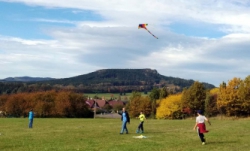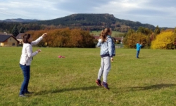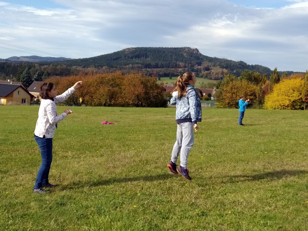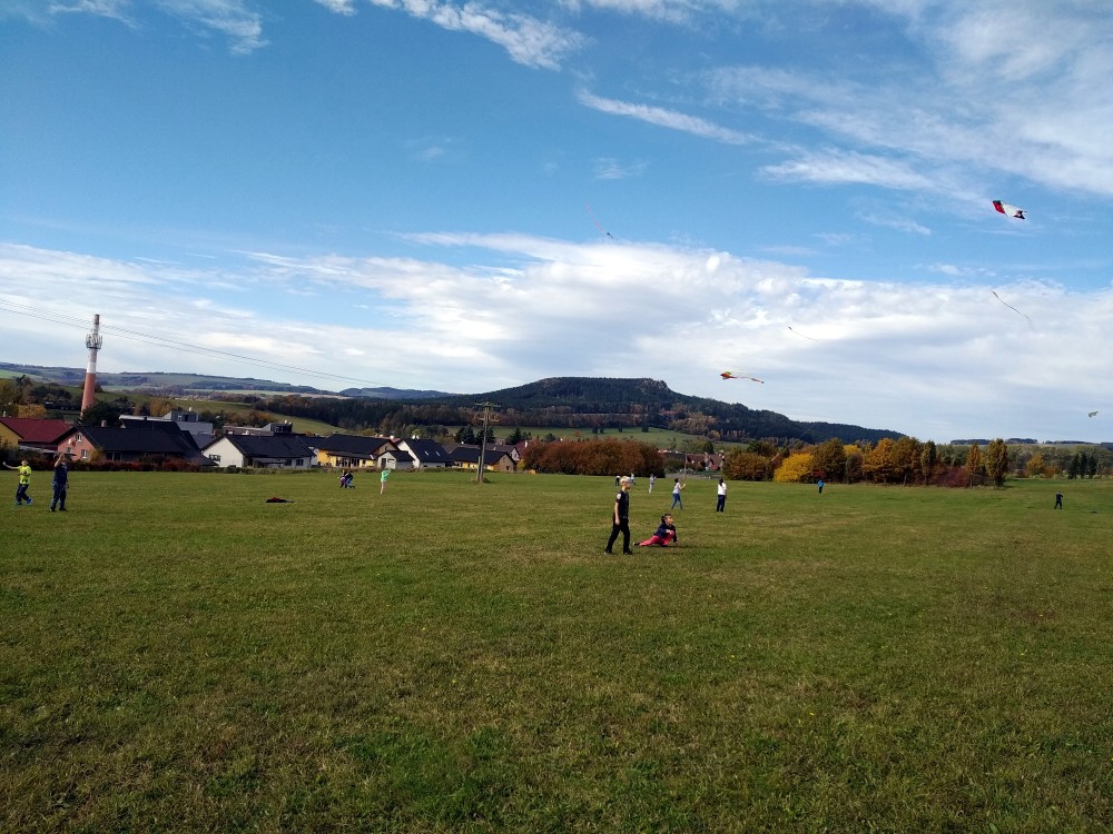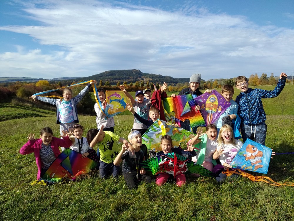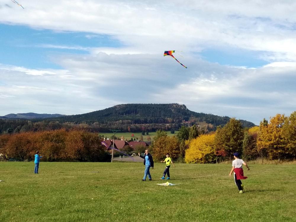 Od naší říjnové drakiády už nějaká voda v potoce utekla, ale přesto bych se k ní chtěla vrátit. Děkuji moc všem dětem za to, že mě tehdy přemluvily. Rozhodli jsme se vyrazit na kopec, i když se tady dole ani lístek nepohnul.