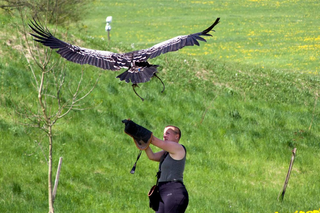 Program byl zakončen ukázkou sokolnictví, to jest disciplíny, která se zabývá lovem za použití schopností a dovedností dravých ptáků. V této fázi programu byly teoretické poznatky, se kterými jsme byli seznámeni dříve, demonstrovány v praxi. Mohli jsme se tedy mimo jiné přesvědčit, že orli nepatří mezi nejobratnější letce a spíše než na obratnost se spoléhají na svou rychlost, že karančo jižní preferuje dinosauří chůzi podobný pohyb před vlastním letem, či že draví ptáci skutečně nejsou ochočená zvířátka, která k nám ochotně přiletí zpět po prvním zavolání.