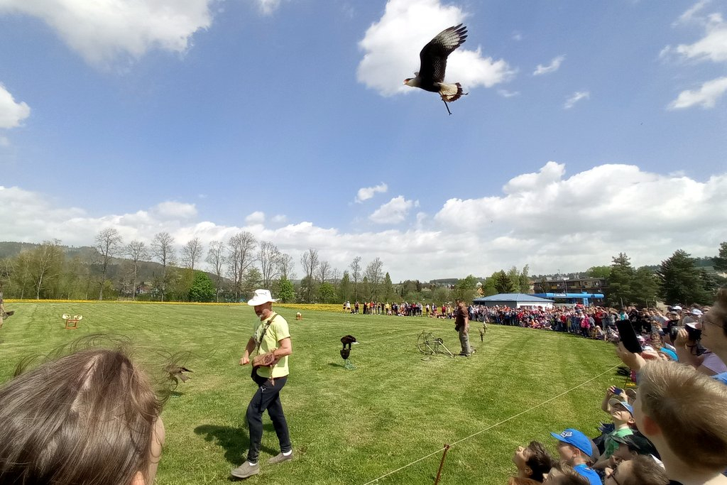Vyvrcholením celého programu pak byla ukázka letu jednoho z nejrychlejších tvorů, kteří byli při této příležitosti k vidění, sokola šahina. Ten dokázal, navzdory nepříznivým povětrnostním podmínkám, elegantně polapit realisticky vypadající motorovou vránu, letící rychlostí až 148km/h. Užití této vrány pro účely demonstrace „stíhacích“ dovedností sokolovitých ptáků je dle sdělení sokolníků skupiny Zayferus v rámci ČR ojedinělé, a my bychom jim proto chtěli poděkovat, že jsme mohli spatřit tento unikátní kousek (a nejen ten!) na vlastní oči.