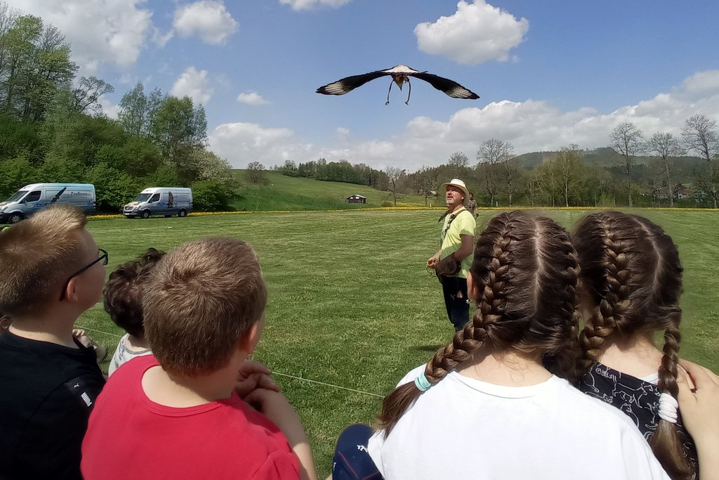 Ve čtvrtek, 12. 5. 2022, se žáci naší školy zúčastnili vzdělávacího programu společnosti Zayferus. V rámci programu mohli na vlastní oči spatřit živé exempláře dravých ptáků domácí i zahraniční provenience. Tuzemští dravci byli zastoupeni například sovou pálenou, sokolem stěhovavým či poštolkou obecnou. Mezi zahraničními ptáky pak vyčnívali velcí dravci, jako třeba výr západosibiřský, sup krahujový či všeobecně známý symbol Spojených států amerických, orel bělohlavý.