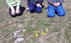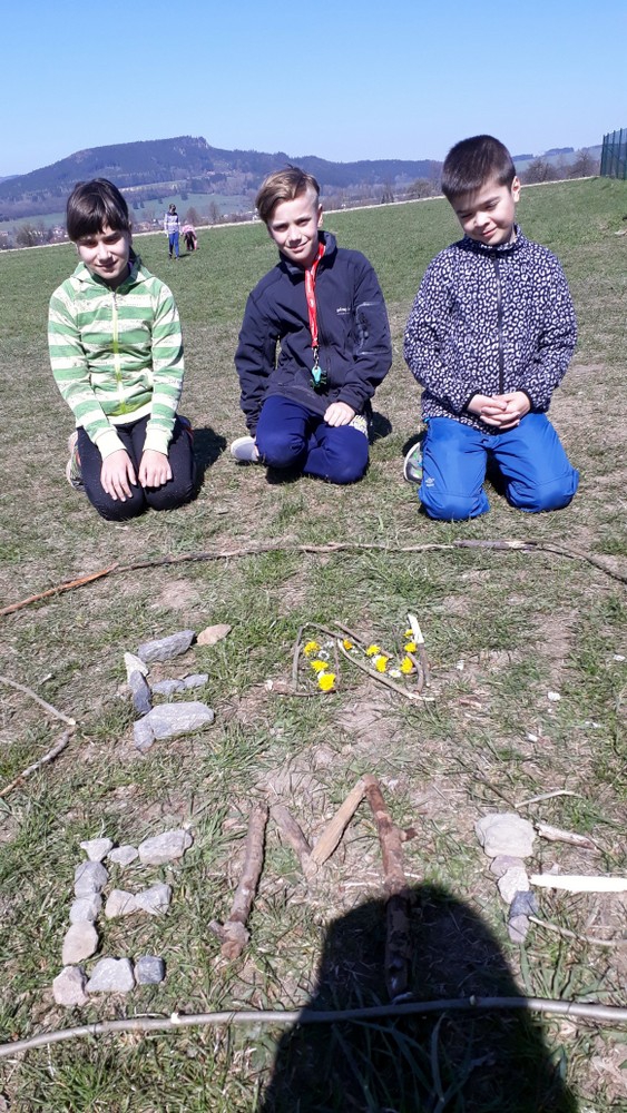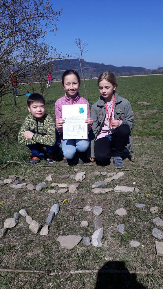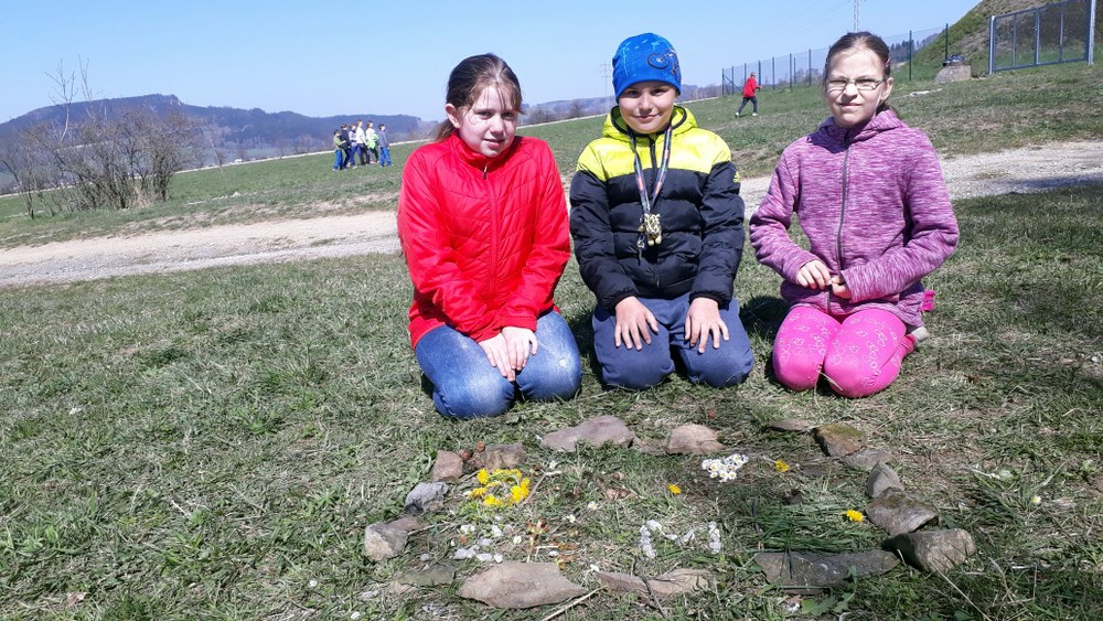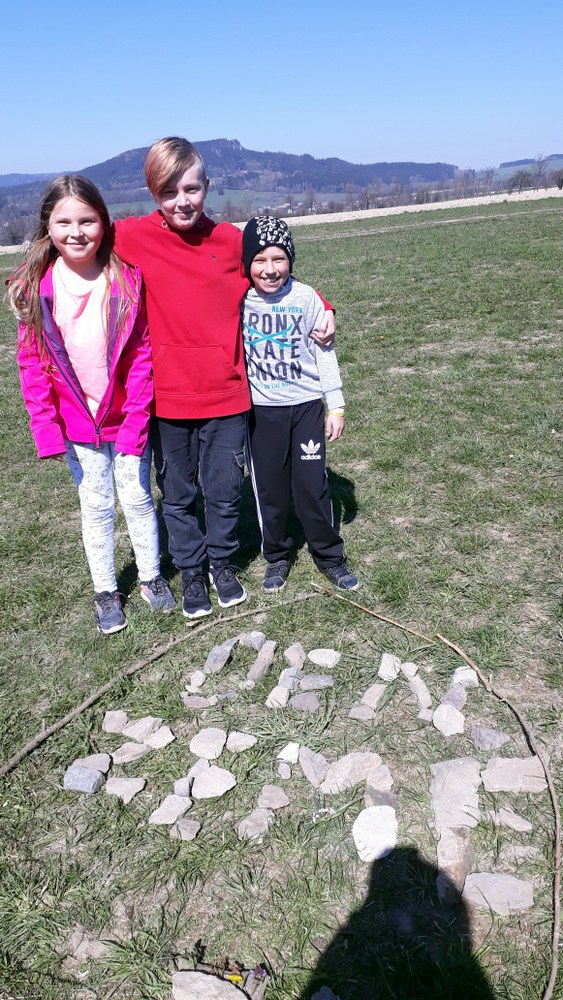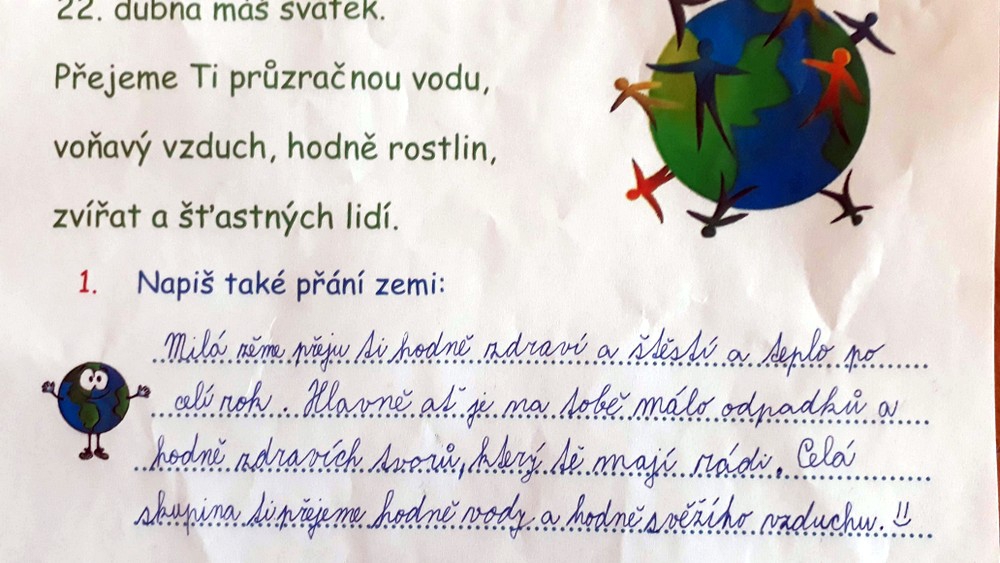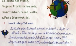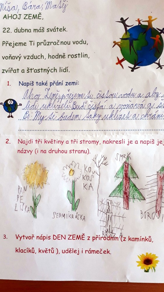 Další tradiční dubnovou akcí byla oslava Dne Země. Děti si připomněly, jak se chovat v přírodě a třídit odpadky. Malovaly, psaly přání zemi a řešily úkoly ve skupinkách. Nakonec vytvořily nápis Den Země z přírodnin.