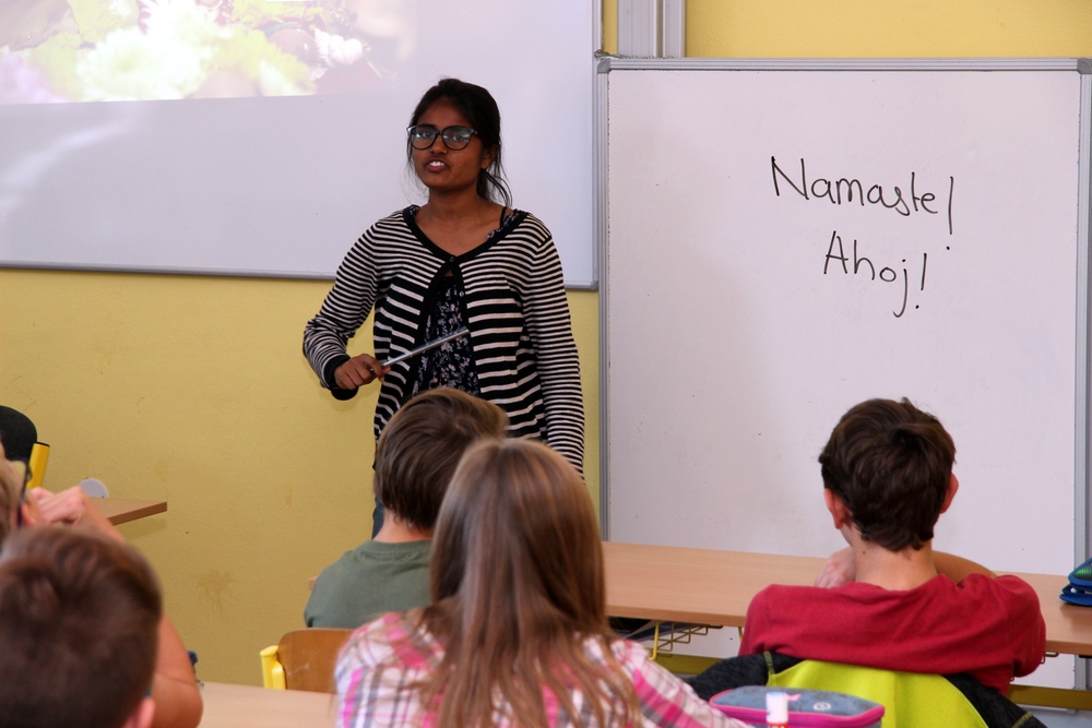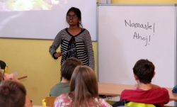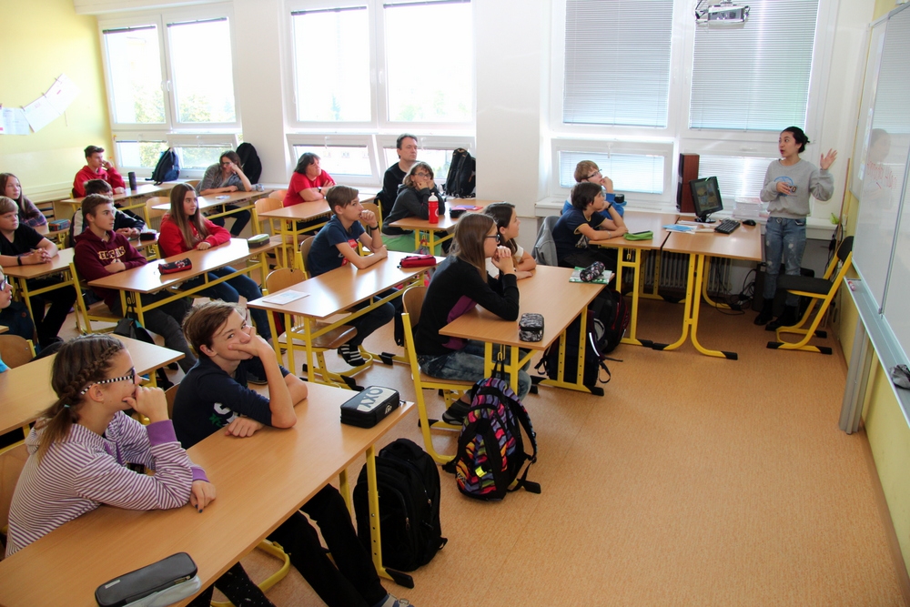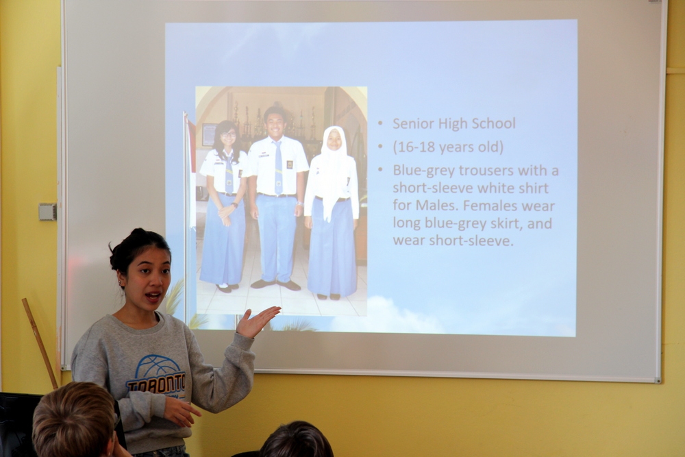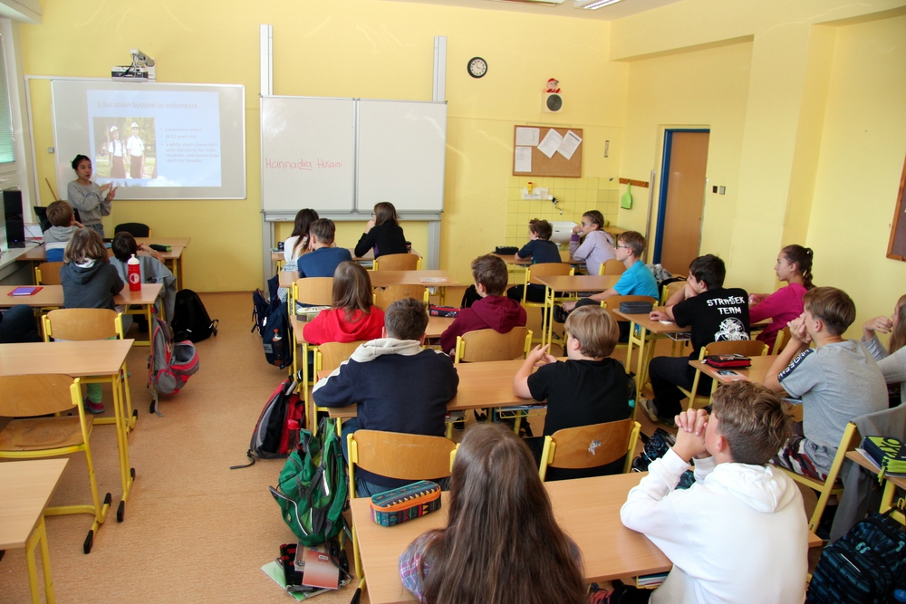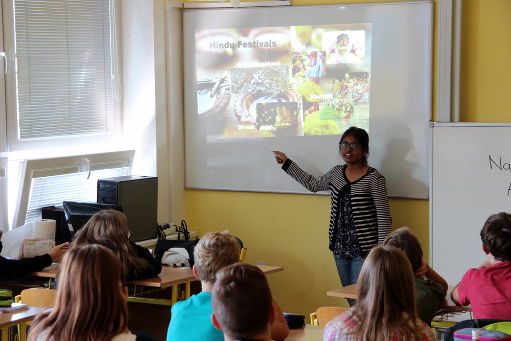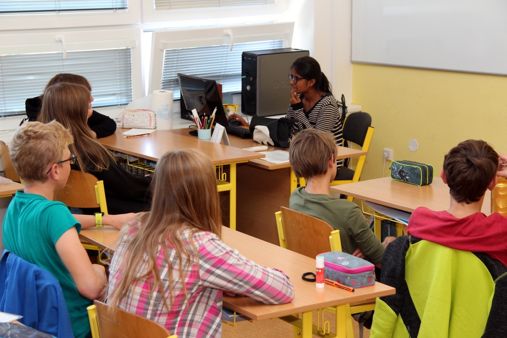 Good morning., Hello., How are you?, Where are you from? A spousta další angličtiny se minulý týden opět ozývala v naší škole. Už potřetí proběhl projekt EDISON, v rámci kterého nás navštívili studentky z Brazílie Indonésie, Indie, Rumunska, Ruska a Gruzie. Po slavnostním zahájení se rozešli do tříd a stali se tak součástí vyučování. Naši žáci reagovali velmi pozitivně a uvědomili si potřebu komunikovat v cizím jazyce. Kromě prezentací svých zemí a spousty užitečných informací zapojili žáky do konverzace a zdánlivá jazyková bariéra nebyla najednou nijak znát.