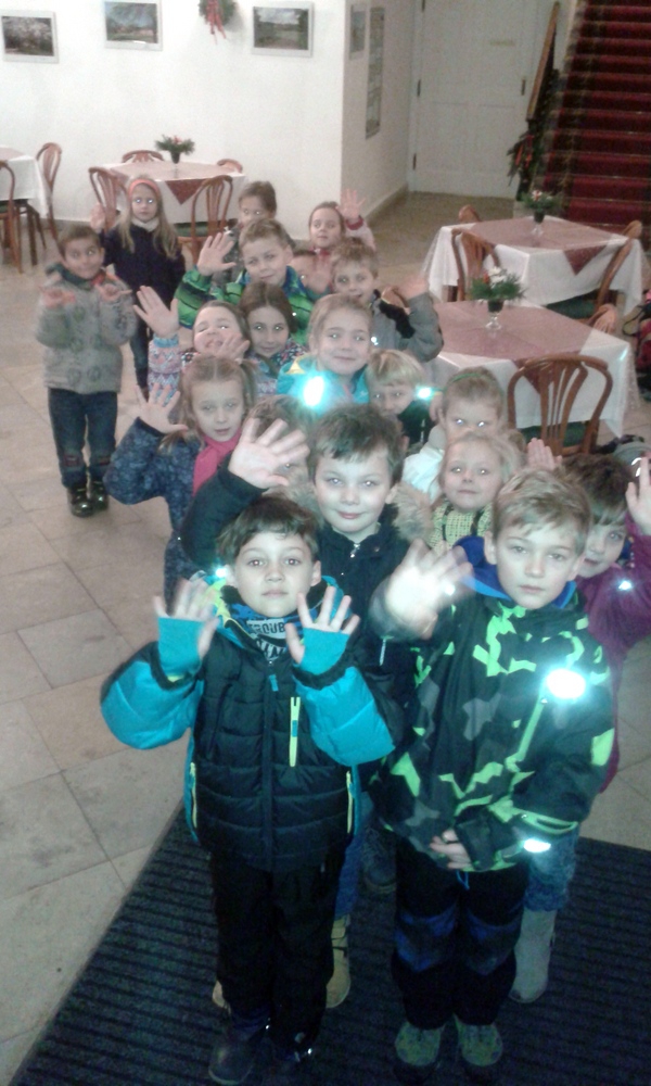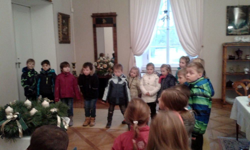 Navštívili jsme nádherně vánočně vyzdobený zámek. Procházeli jsme jednotlivé místnosti, ve kterých byly hrány drobné scénky o tom, jak adventní čas a přípravy na Vánoce trávila šlechta. Moc se nám líbilo i krátké divadlo ve mlýně, zazpívali jsme si koledy se souborem Barunka a prošli jsme se až ke Starému bělidlu. Nechyběly adventní trhy, kde jsme se mohli občerstvit a koupit si něco pro radost. Náladu nám nepokazilo ani všudypřítomné bláto – tímto se omlouváme rodičům za ušpiněné boty a kalhoty.