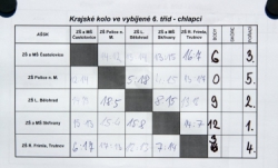 Přestože jsme v okresním kole skončili na 2. místě, jelo naše družstvo chlapců na krajské finále, protože se vítězové okresní kola ze ZŠ Hradební Broumov nemohli z organizačních důvodů tohoto finále zúčastnit. Za krásného, ale velice větrného počasí se turnaje účastnilo celkem 5 družstev chlapců v krásném areálu ZŠ K. V. Raise. Bohužel naši chlapci nenavázali na předvedenou hru v okresním kole a podle toho také dopadlo konečné umístění. Pouze ve dvou zápasech dokázali chlapci hrát vyrovnanou partii se soupeřem, ale svými zbytečnými chybami se připravili o vítězství. Přesto našim chlapcům patří poděkování za reprezentaci školy. Výsledky celého turnaje jsou v přiloženém souboru.