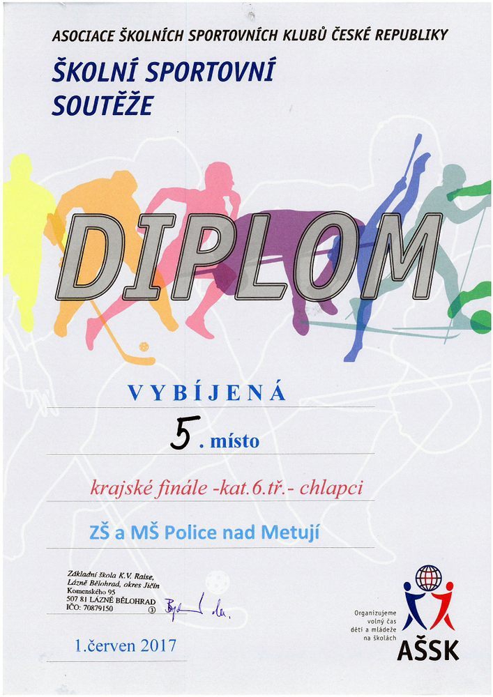 1. června se naše družstvo žáků šestých tříd zúčastnilo krajského finále ve vybíjené v Lázních Bělohrad.