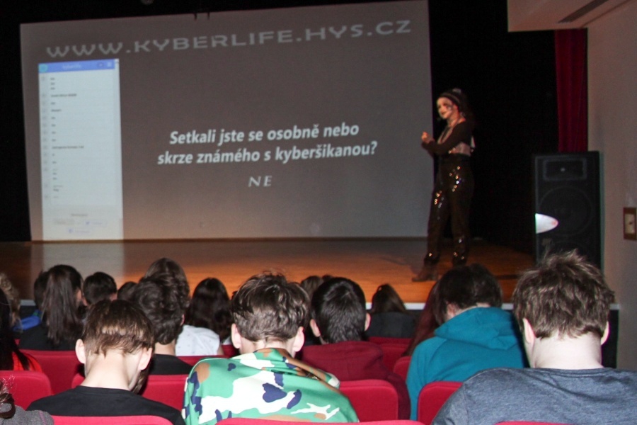 Žáci měli možnost ovlivňovat pokračování příběhu svým hlasováním a zároveň vyjadřovat názory prostřednictvím chatu. Po projekci následovala beseda s tvůrcem projektu, panem Dominikem Macháčkem, který přímo reagoval na vyjádřené názory a případně žákům pojmenoval jejich chování v kyberprostoru.