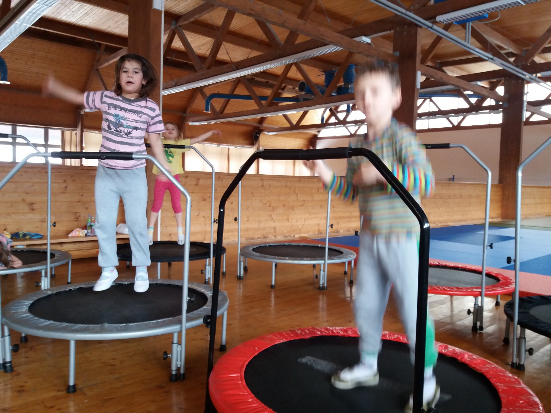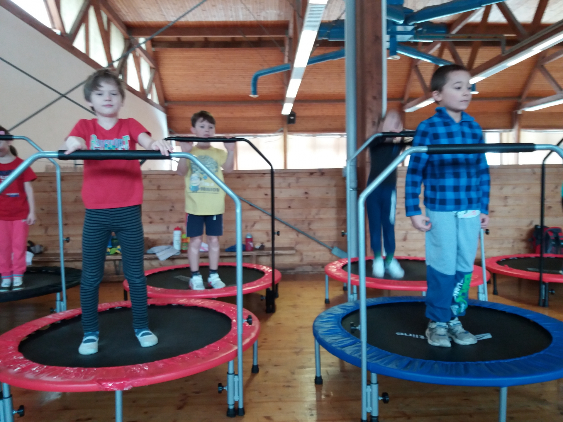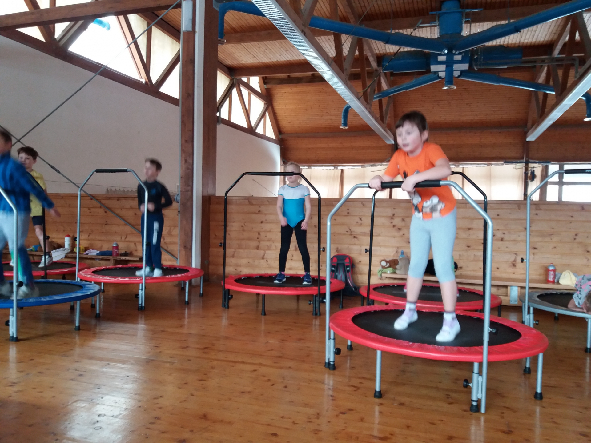 Třída 1.A absolvovala ve středu 18.1. hodinu tělesné výchovy na minitrampolínkách v broumovské sportovní hale.