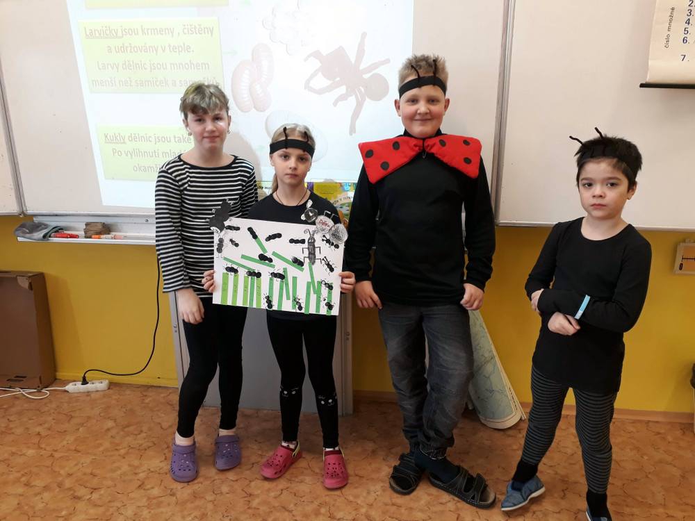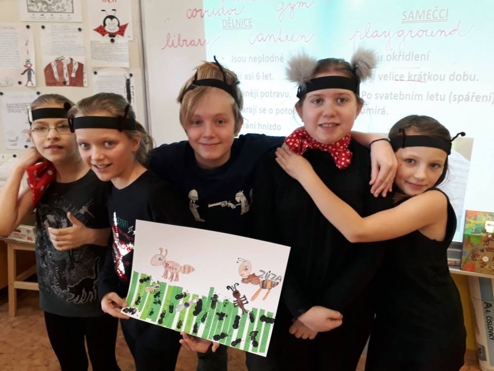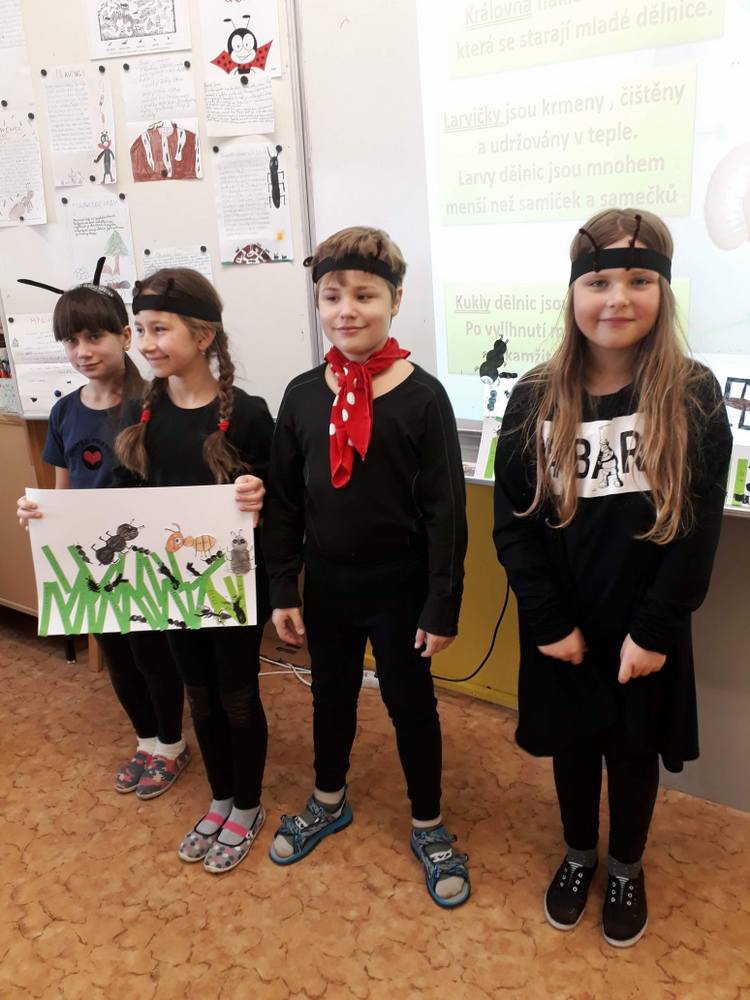 Žáci 4.C si poslední den prvního pololetí zpříjemnili projektem Mravenčí den. Děti si doma připravily zajímavosti o mravencích, oblékly se do černého oblečení a ve škole si dotvořily tykadla a šátky.