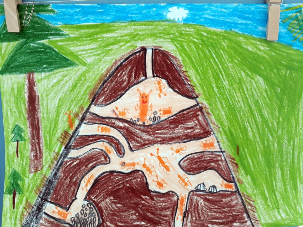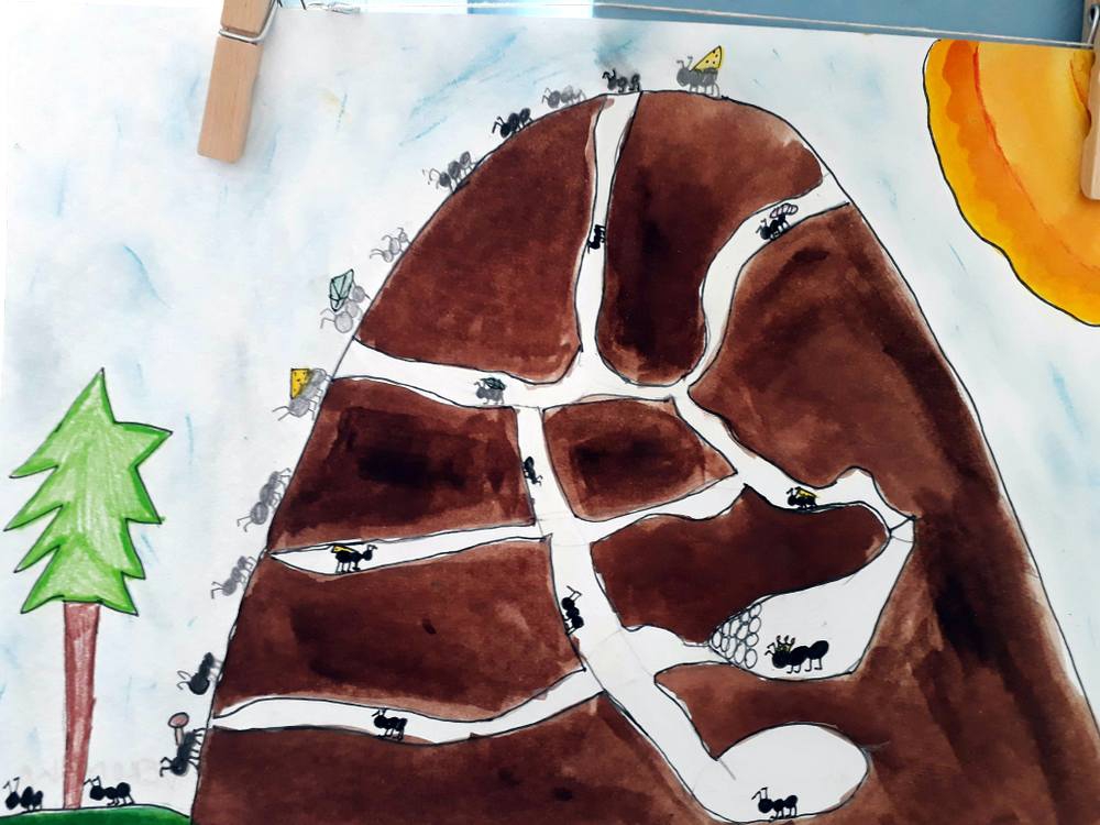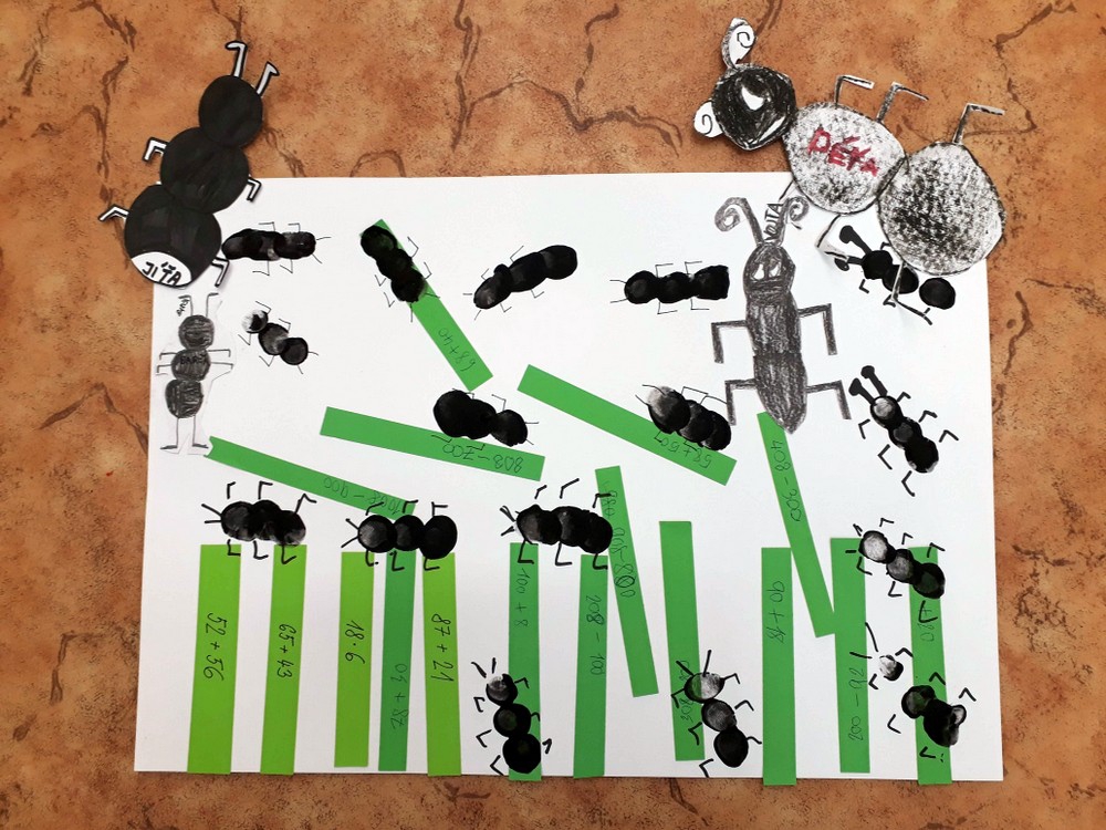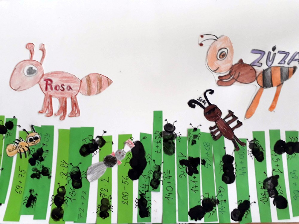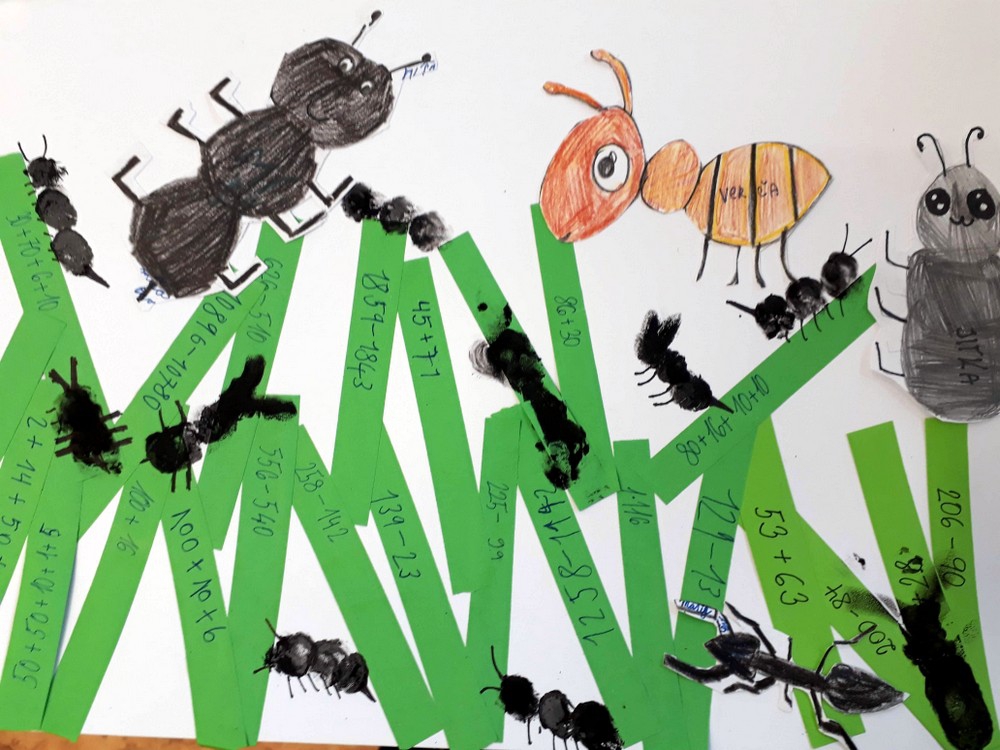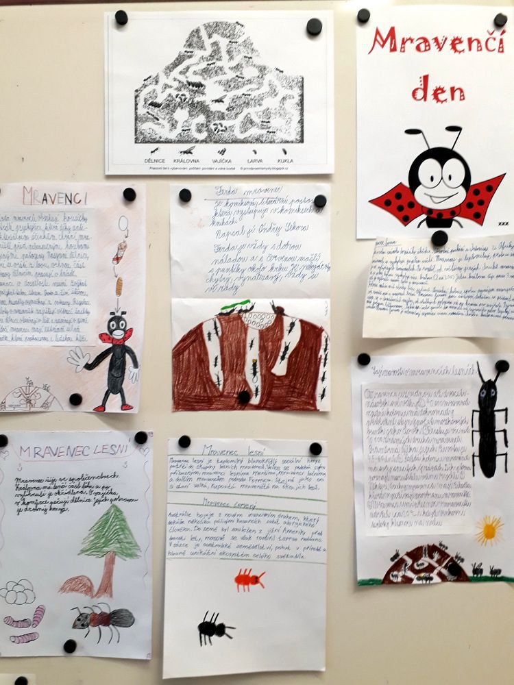 Pracovaly nejprve samostatně s knížkou Ferda Mravenec do pracovních listů, poté počítaly a tvořily ve skupinkách, vytvářely kukly z toaletního papíru, četly referáty, kreslily mravence a mraveniště. Na závěr si děti zasoutěžily v tělocvičně.