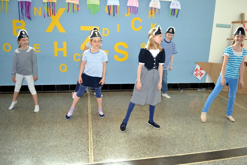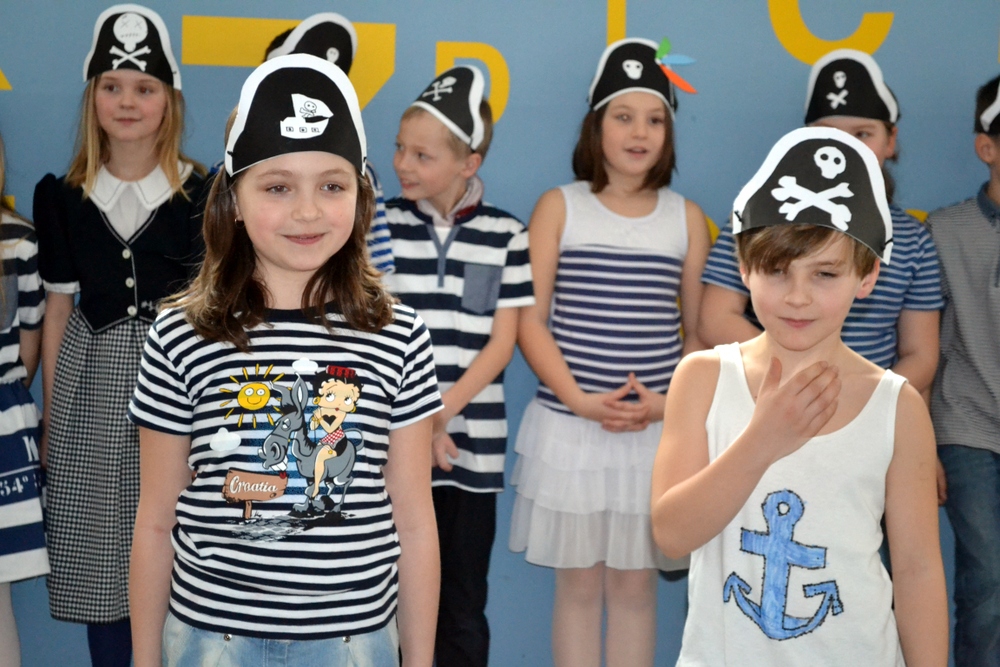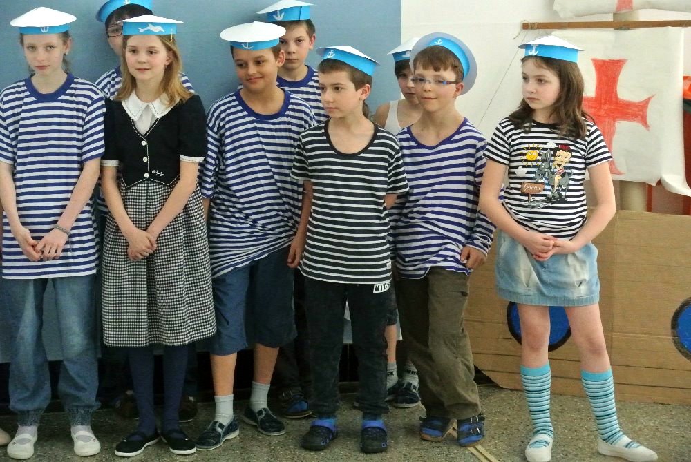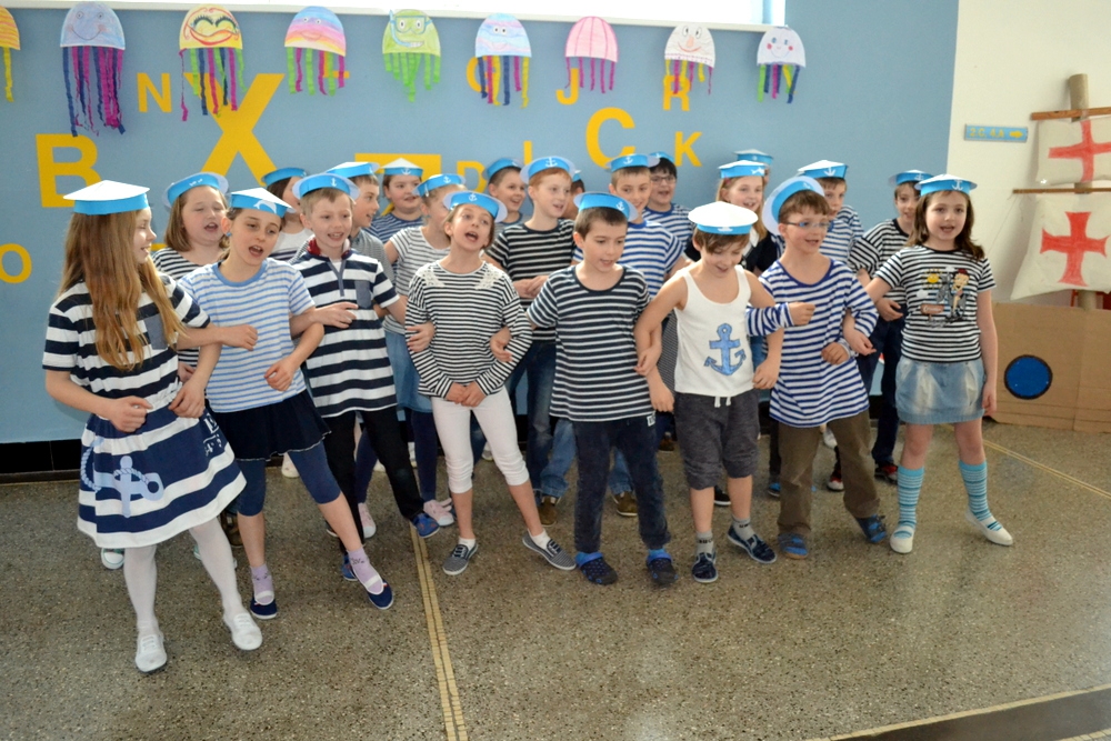 Ve čtvrtek 3O.května se přišli na vystoupení žáků 4.A podívat jejich rodiče, prarodiče a sourozenci. Děti zpívaly, tančily a recitovaly v námořnickém a později pirátském oblečení.
