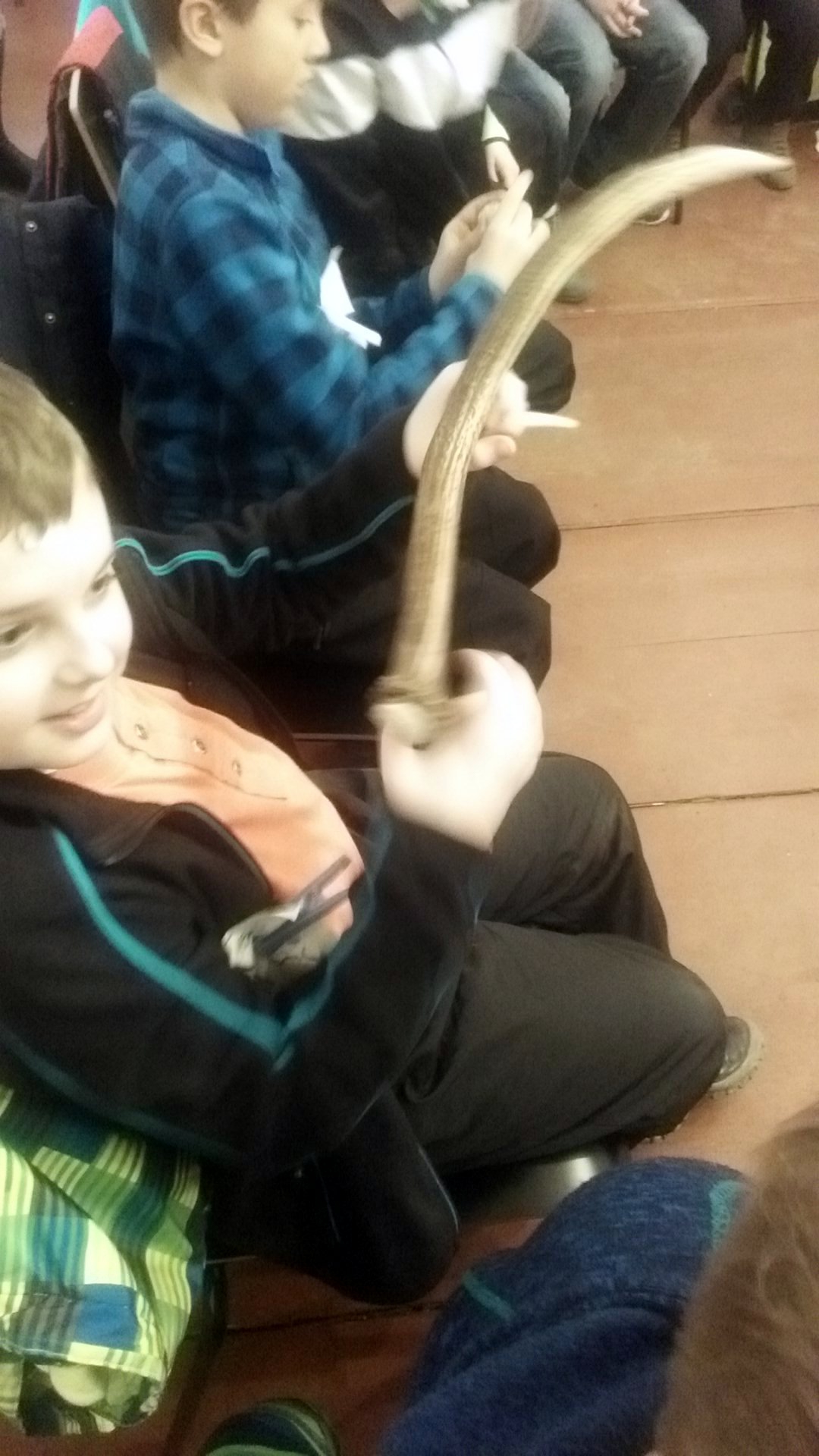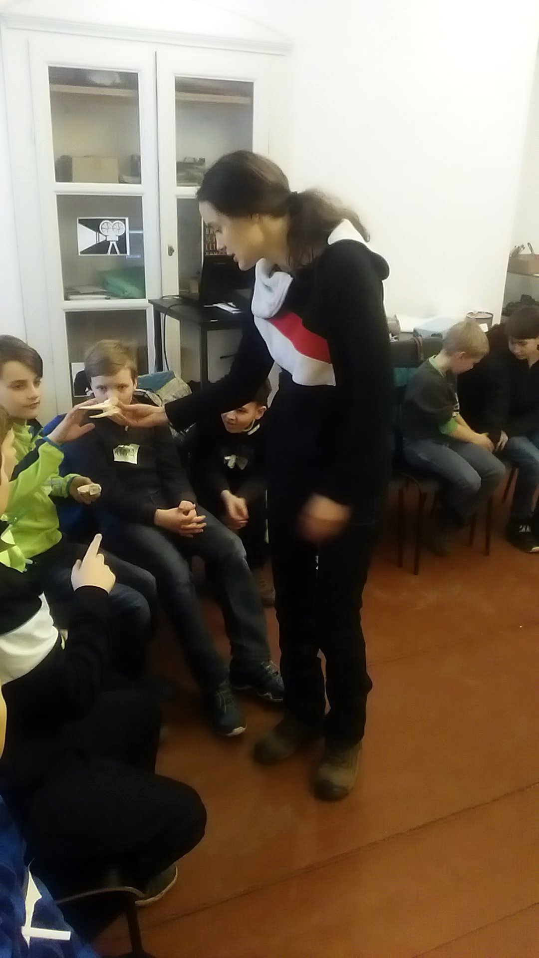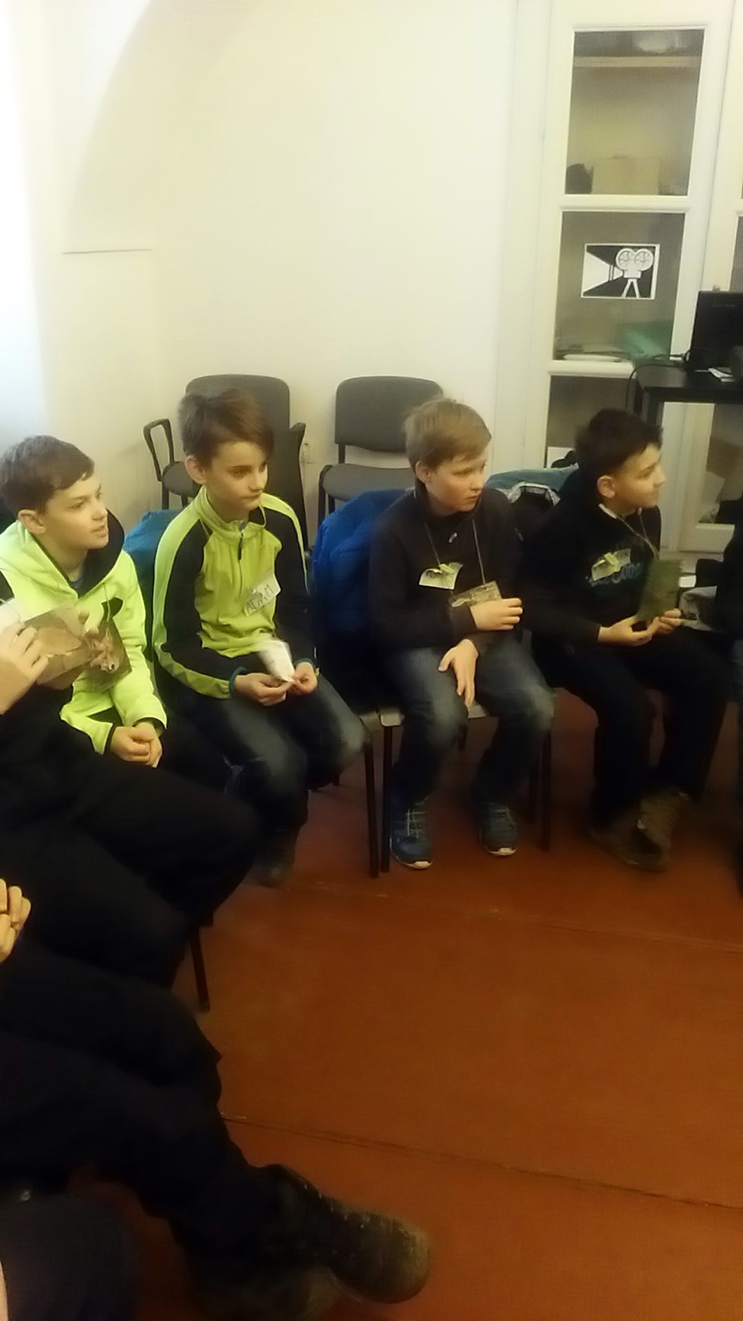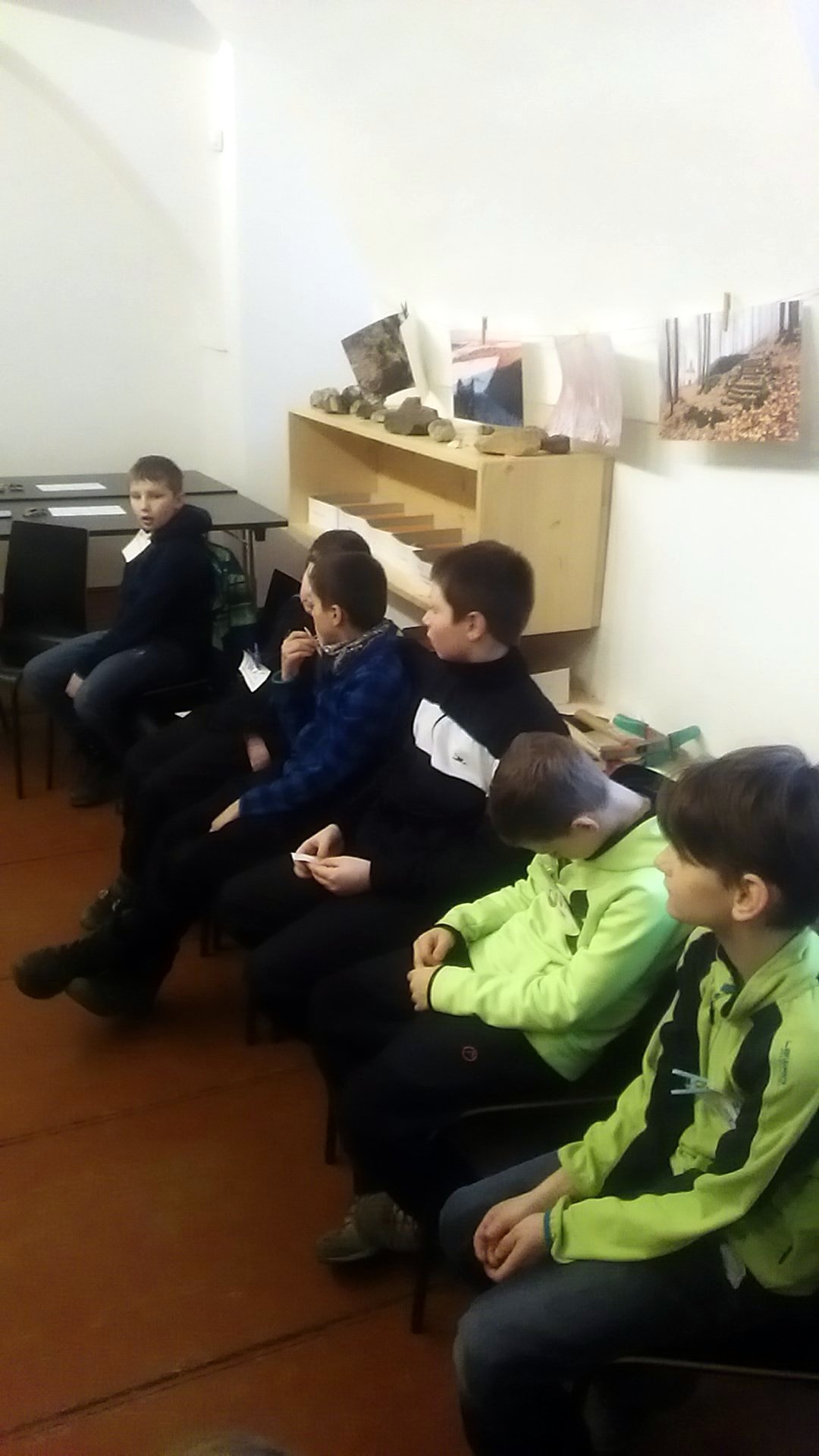 Dozvěděli jsme se, že tady kolem Broumova chodí občas rys. To jsme nevěděli. Dělali jsme potravinovou pavučinu. Osahali jsme si kostry některých živočichů , třeba čápa, tedy spíš jeho zobák. Prohlédli jsme si video z fotopastí.Potom jsme si vzali papír. Na něm byla namalovaná zvířata, třeba jelen, veverka, divoké prase. My jsme museli vyhledat správné tiskátko stopy a natiskat je. Také jsme poslouchali zvuky zvířat. Pak nás paní průvodkyně zavedla do místností, kde se třeba vyrábí ruční papír a tisknou knihy. Na závěr nás dovedla k falešným skalám. Na ty skály jsme si mohli vylézt a dívat se jako z vyhlídky.