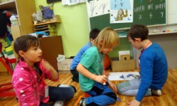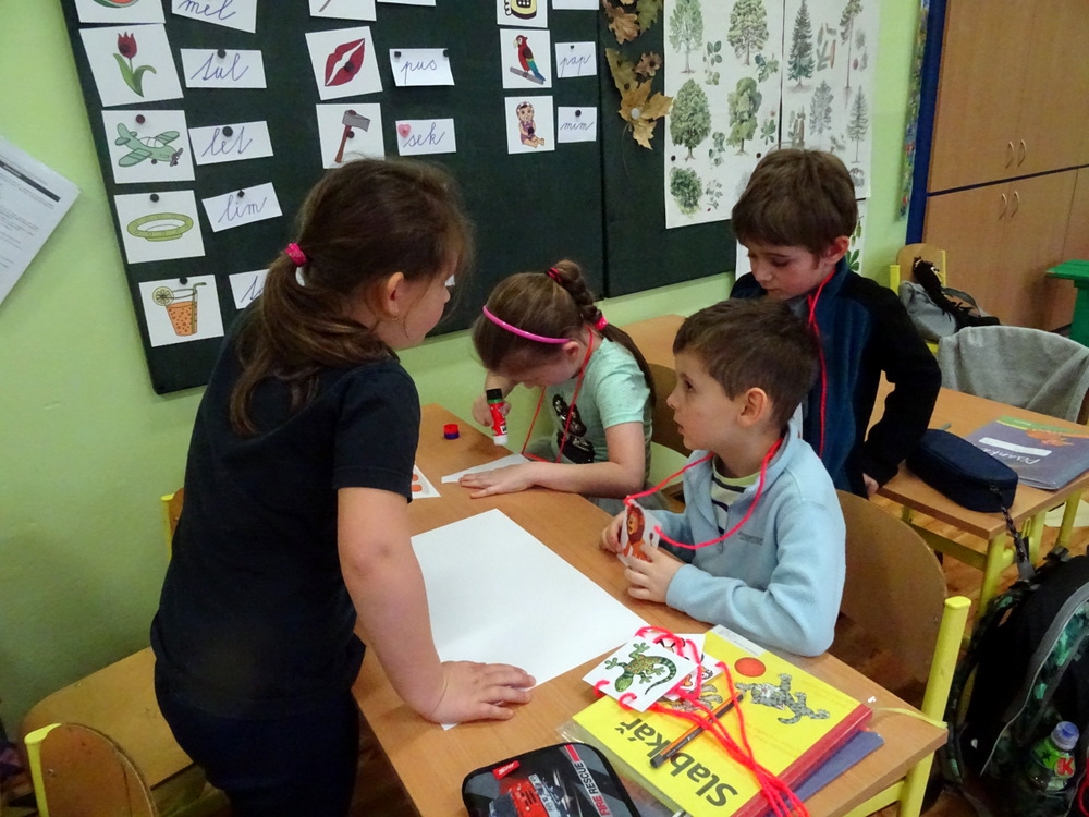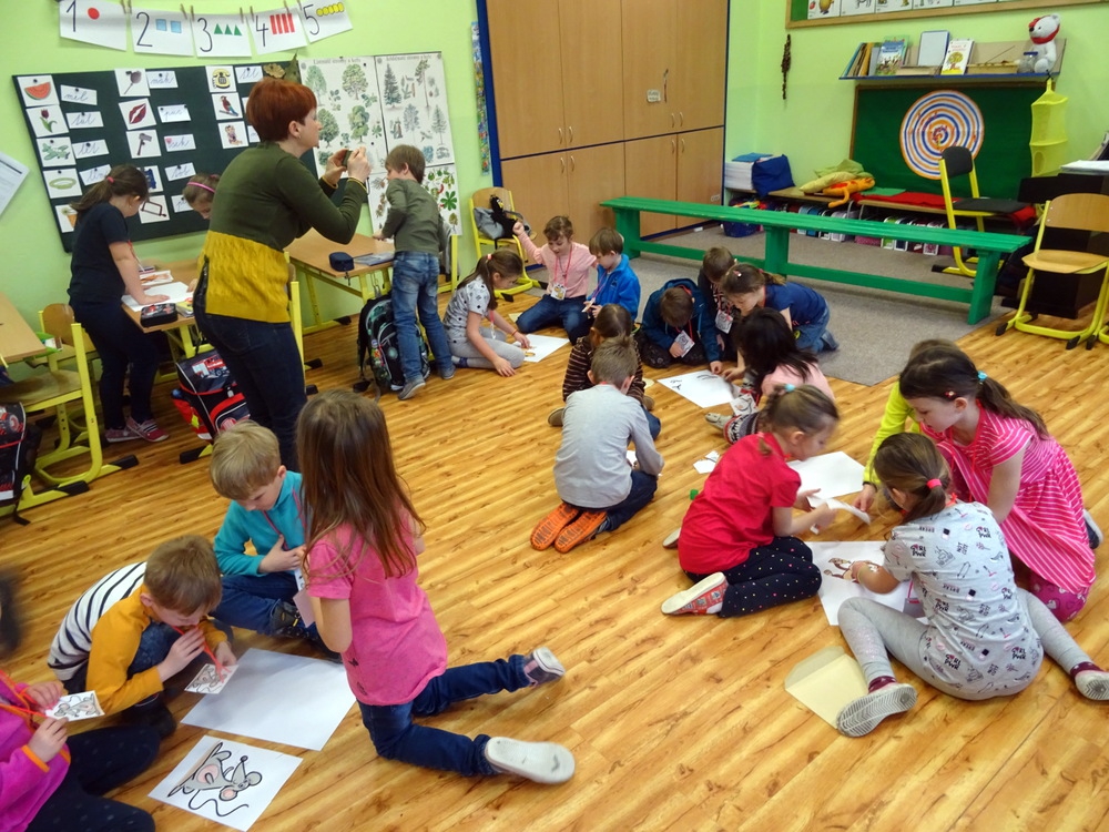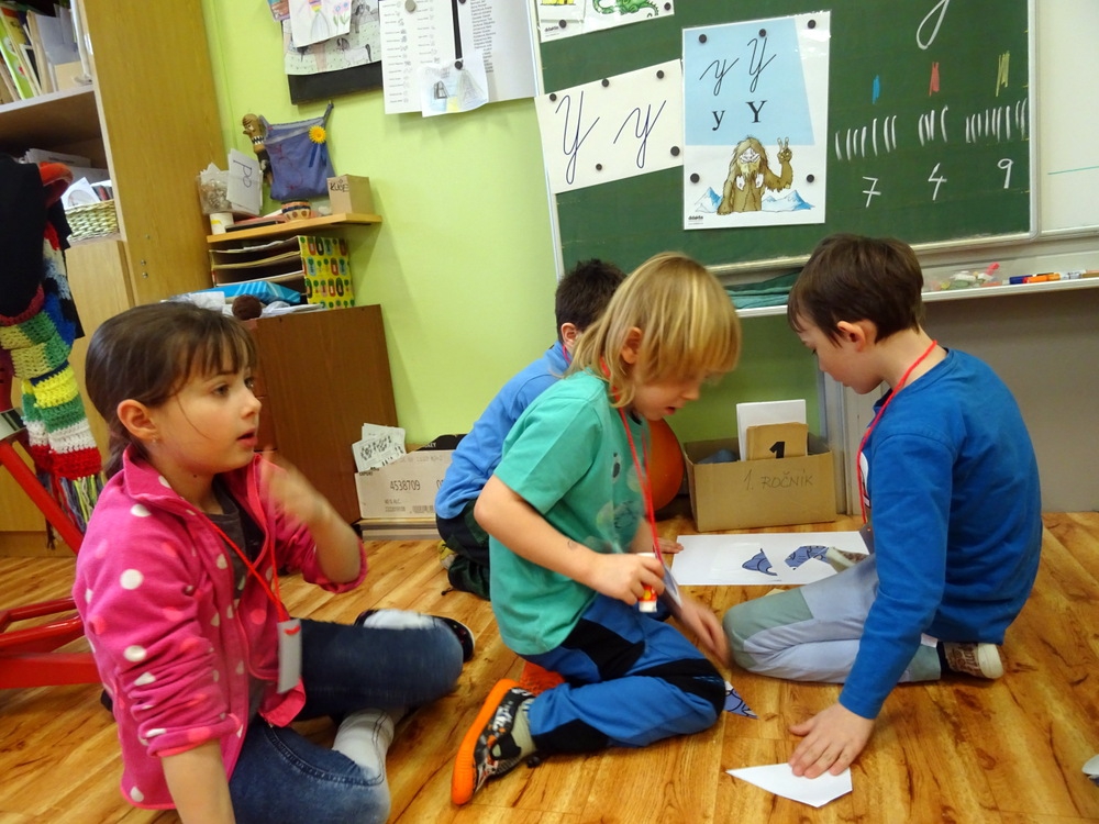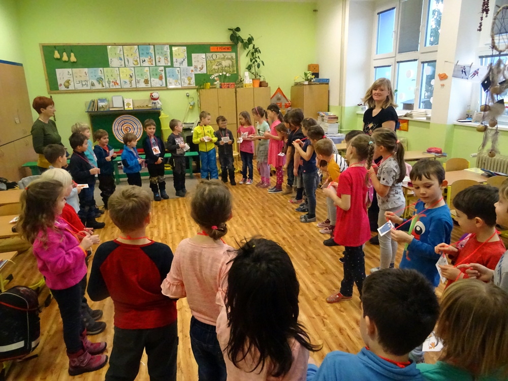 Proběhly ukázky školní práce a poté se pracovalo společně. Prvňáci a předškoláci si společné chvíle užili, na závěr si vzájemně vyměnili vyrobené dárečky.