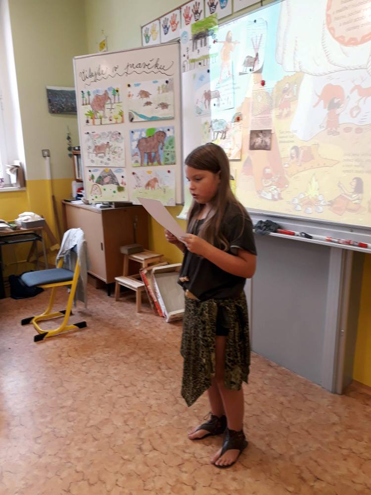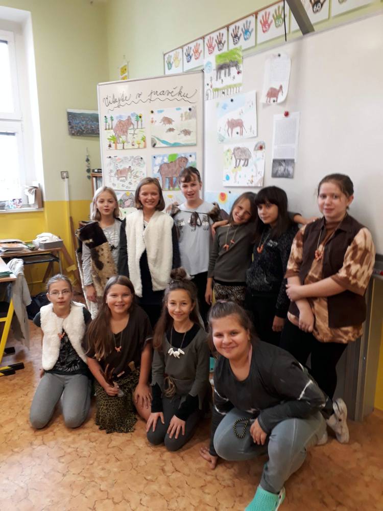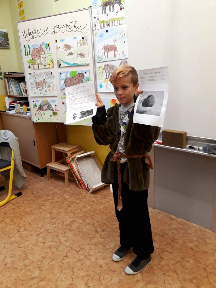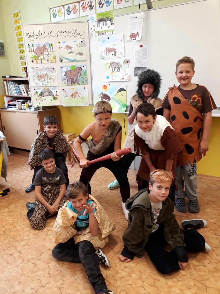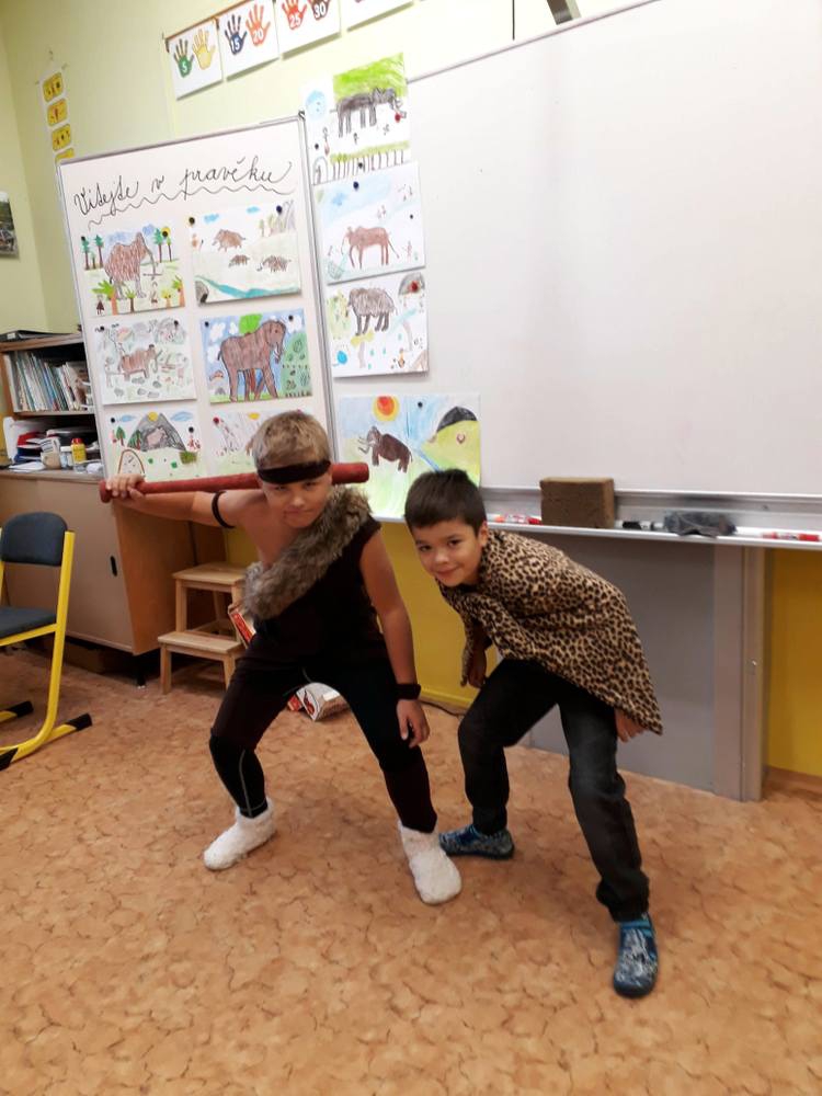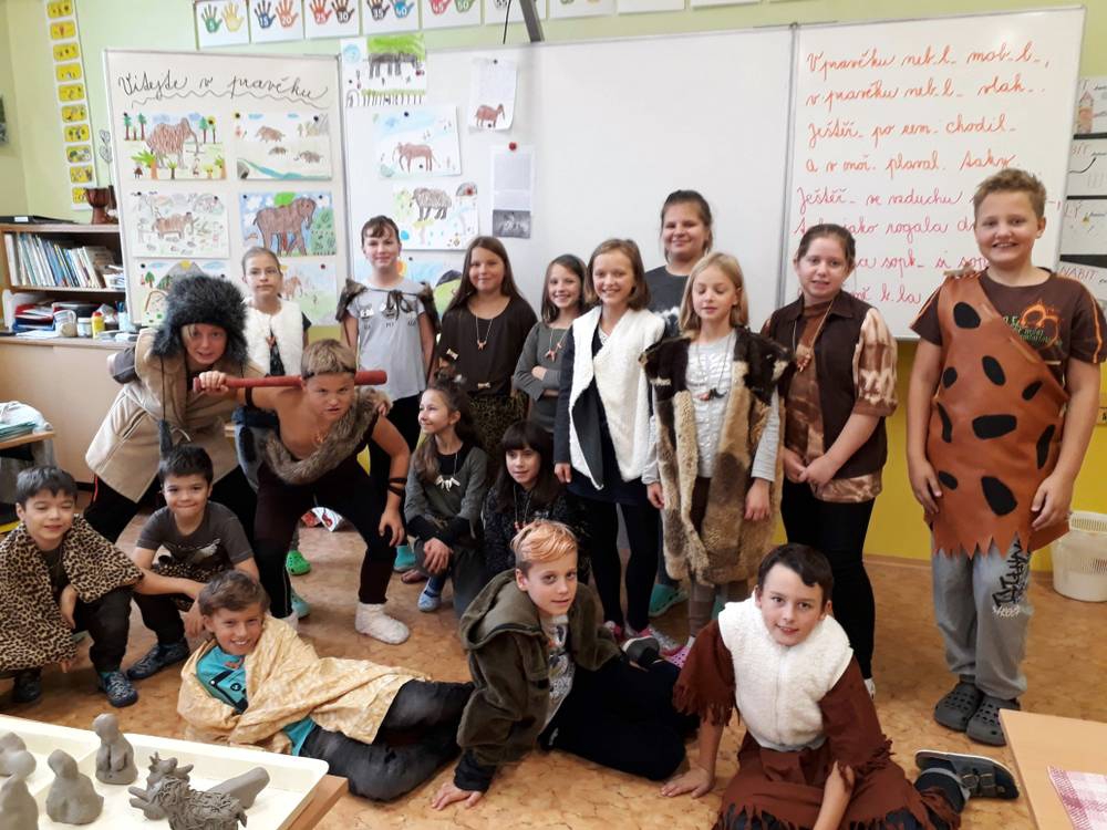 Ve škole se dozdobili vlastnoručně vyrobenýmí náhrdelníky z hlíny a plnili různé úkoly. Malovali mamuta, tvořili Věstonickou Venuši, zpívali a počítali. Poděkování patří maminkám a babičkám, které si s kostýmy opravdu vyhrály.