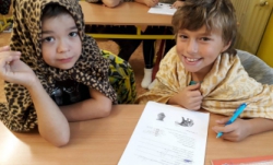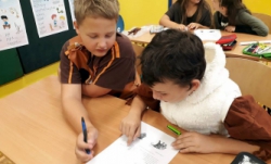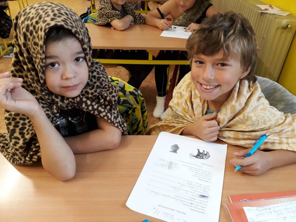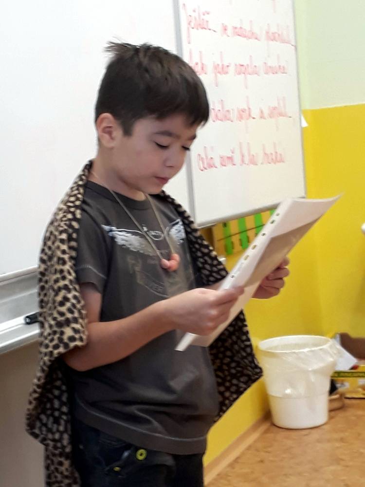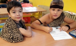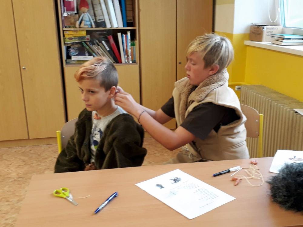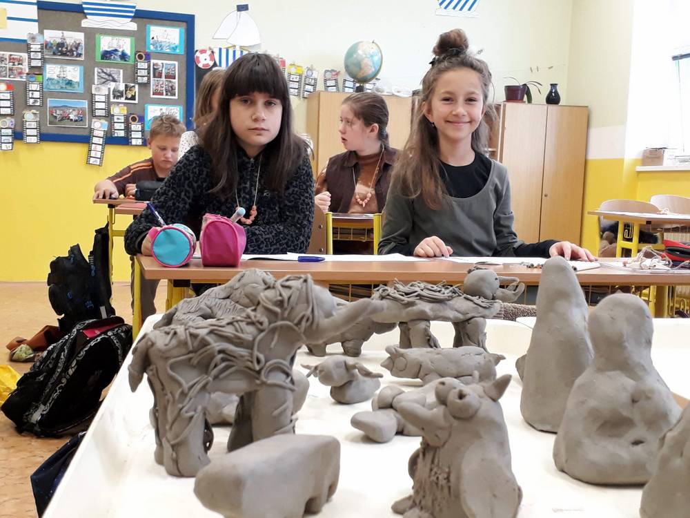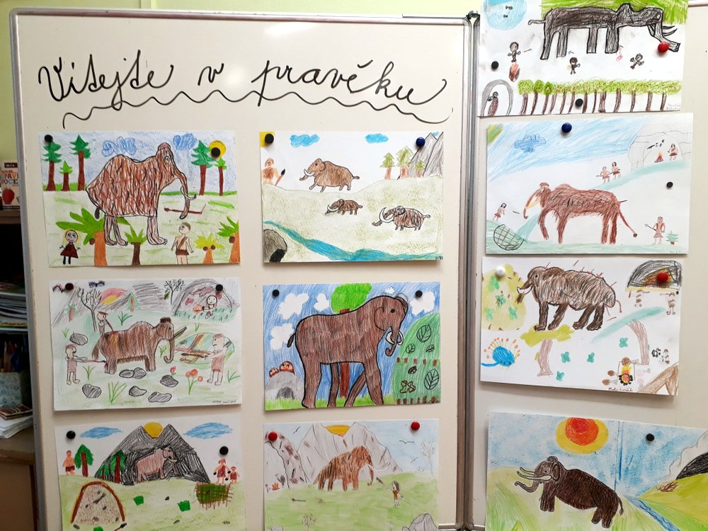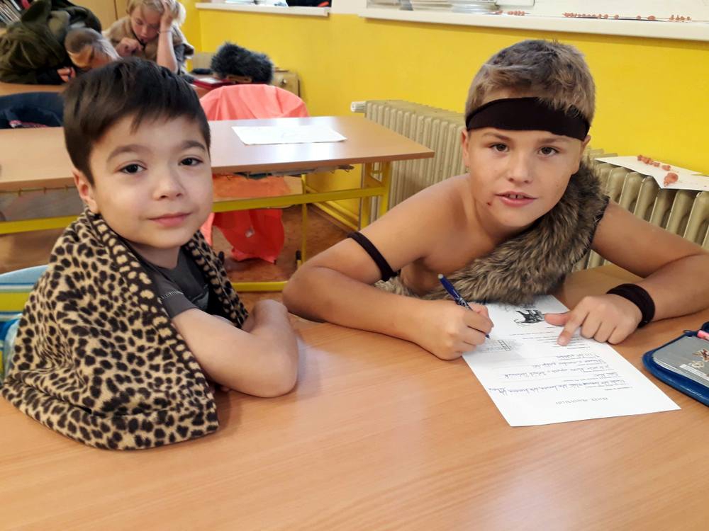 Ve škole se dozdobili vlastnoručně vyrobenýmí náhrdelníky z hlíny a plnili různé úkoly. Malovali mamuta, tvořili Věstonickou Venuši, zpívali a počítali. Poděkování patří maminkám a babičkám, které si s kostýmy opravdu vyhrály.