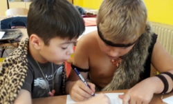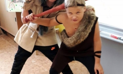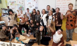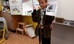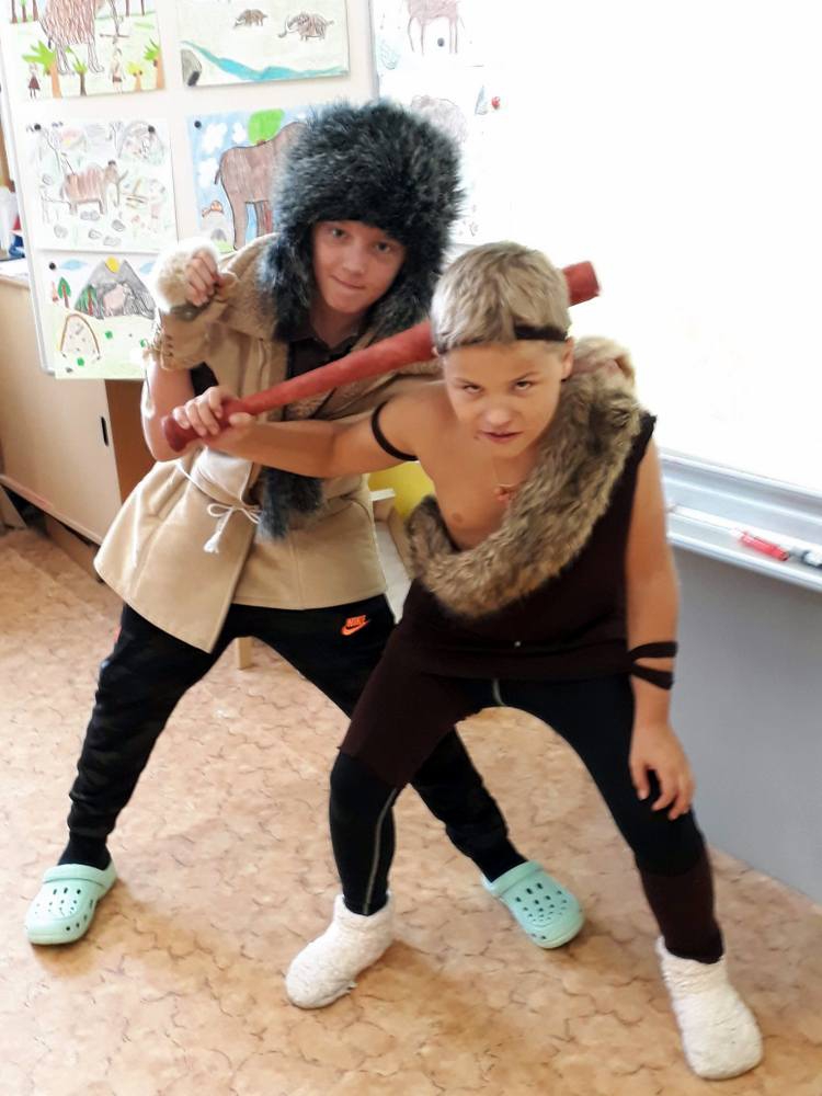 Na jeden den do doby kamenné se přesunuli žáci z 5.C . Již doma si připravili referáty o pravěku a s rodiči vybrali nebo vyrobili vhodné pravěké oblečení.