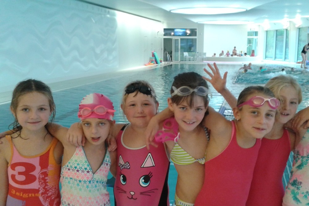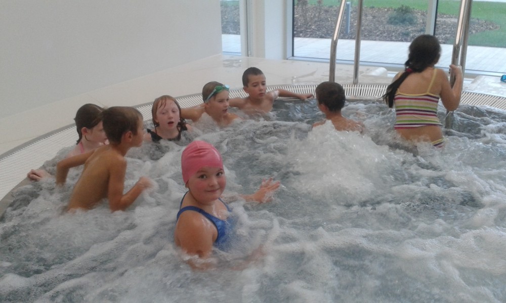 V krásném prostředí se děti učí plavat, potápět, nebát se vody. Na závěr každé lekce mohou relaxovat ve vířivce nebo na masážních lehátkách. Pobyt ve vodě si opravdu užívají.