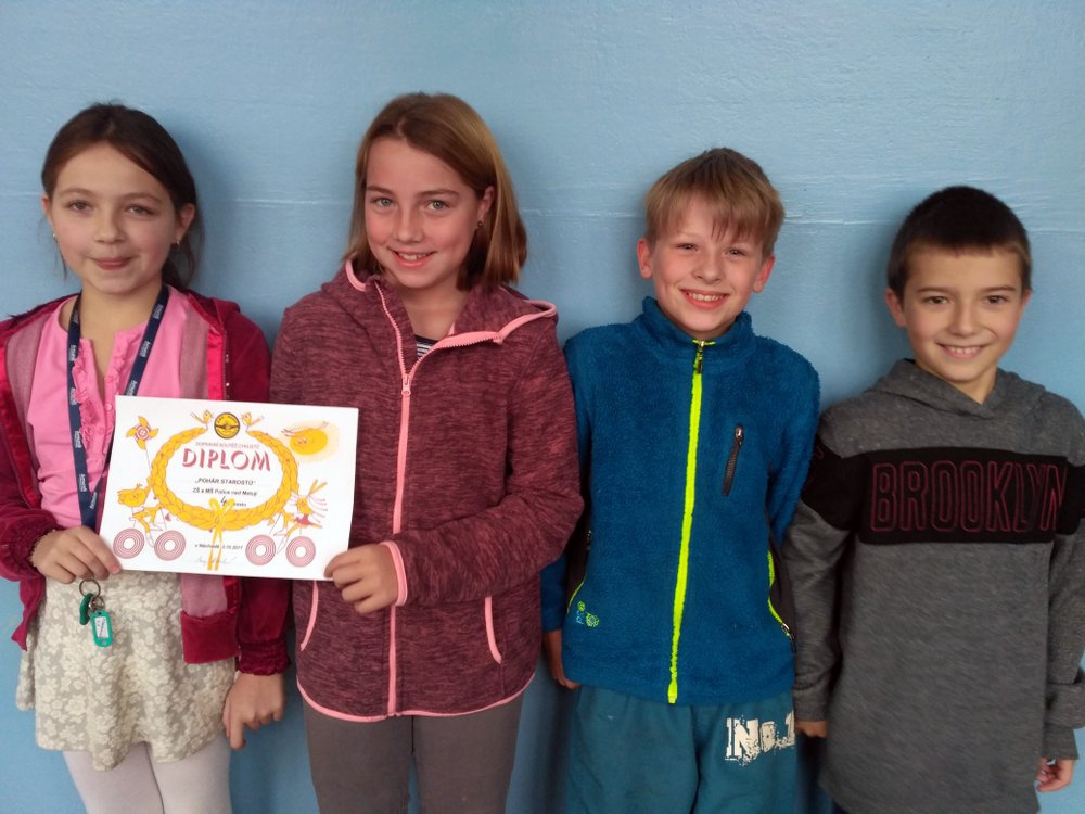 Povzbudit je přijela i naše starostka Ida Jenková. A družstvo ve složení Marie Tauchmanová, Eliška Řezníčková, Adam Nekvinda a Saša Nosek si vedlo výtečně. Obsadilo čtvrté místo z dvaceti škol našeho okresu. Gratulujeme!
