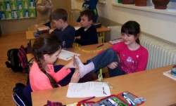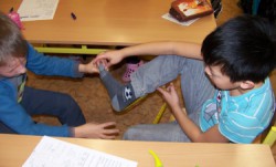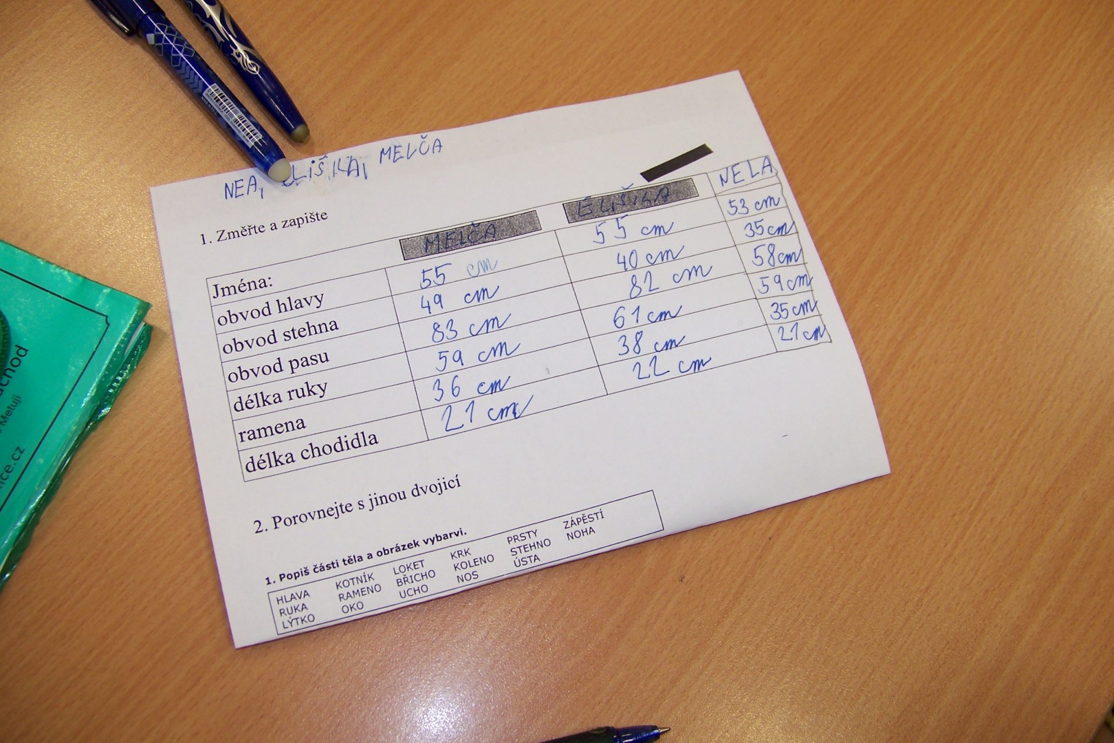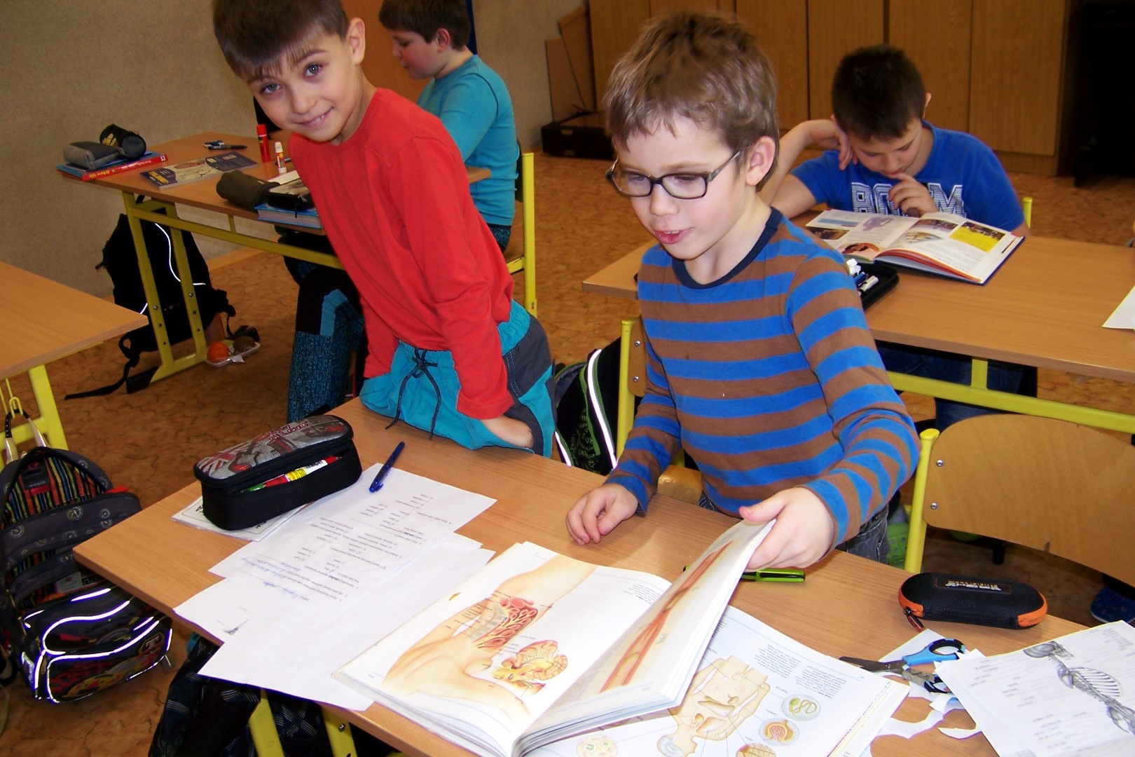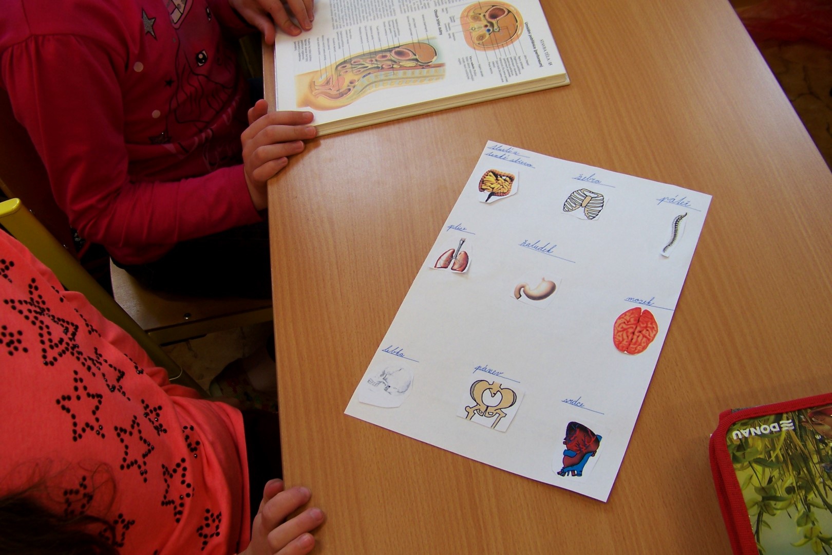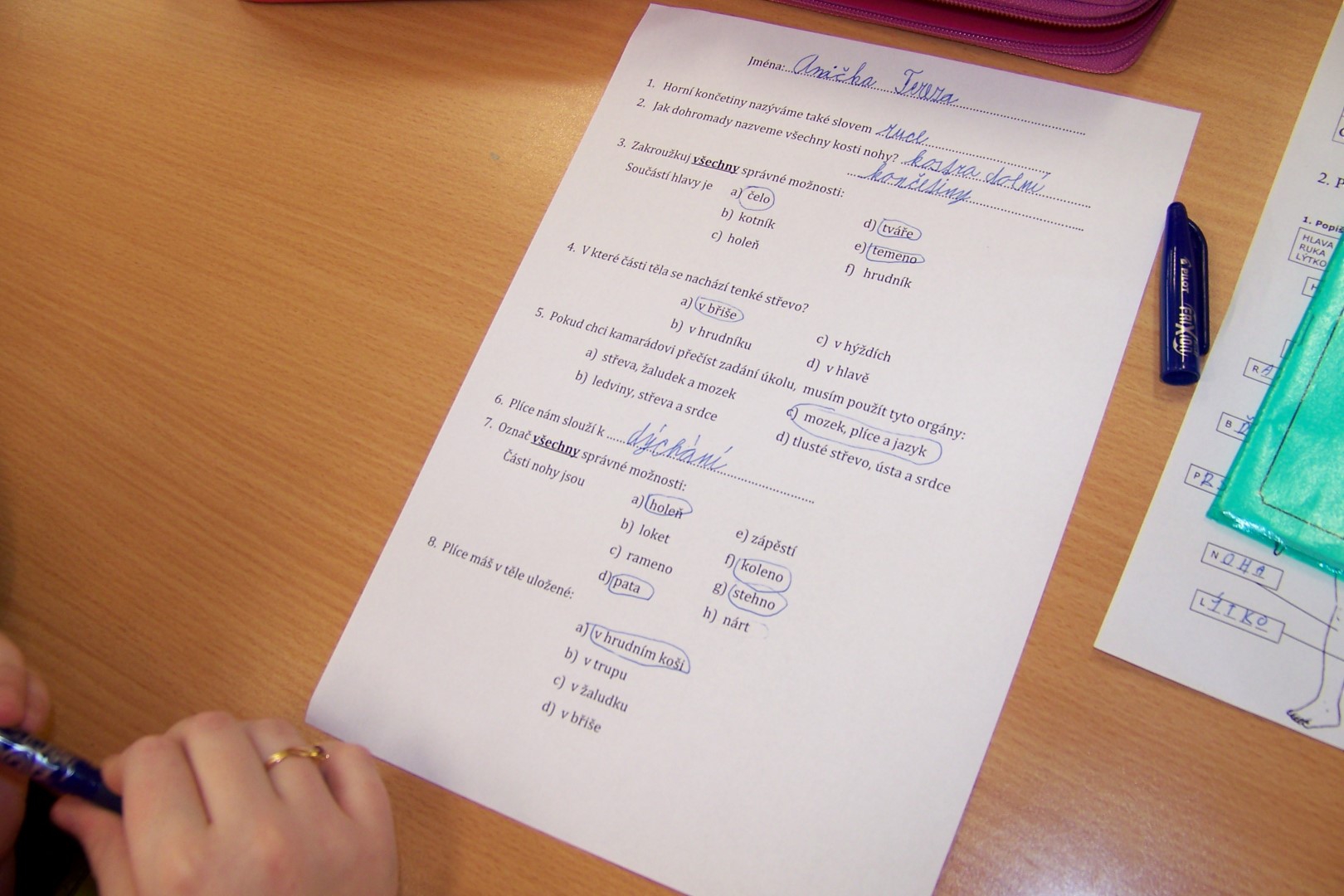 Pracovali střídavě ve dvojicích, čtveřicích a na závěr dne ve dvou skupinách. Vyplnili test, cvičili a běhali, pojmenovávali obrázky, kreslili model kostry i vnitřních orgánů,
