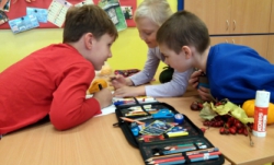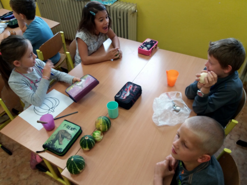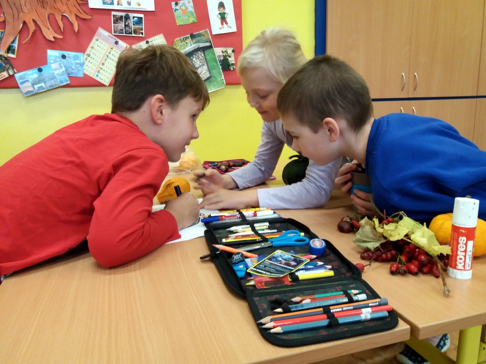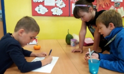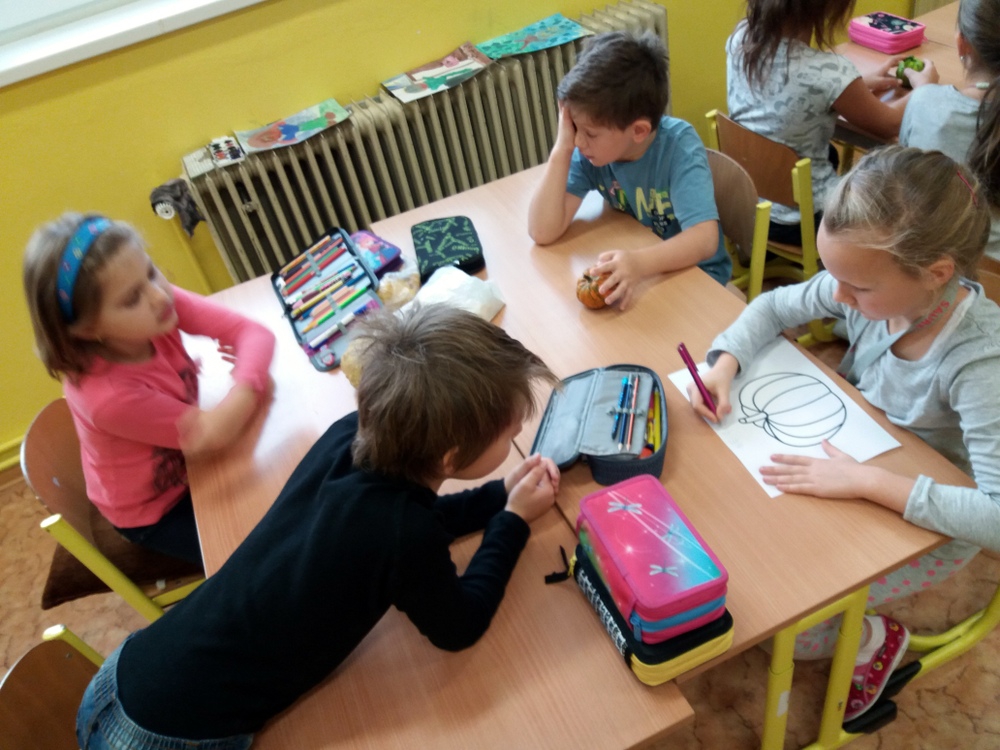 Hned v září jsme navštívili hronovské muzeum Pod čepicí a přesvědčili se o tom, jak lze naše oči oklamat. V říjnu jsme si udělali Dýňový den plný tvoření, dlabání, ochutnávání a poznávání svátku Halloween a Dušičky. V listopadu jsme se zúčastnili akce pořádané Muzeem papírových modelů. Naším úkolem bylo vystříhat betlémové postavy a sestavit betlém na podklad upravený dle naší fantazie. V prosinci nás pak čekal Andělský den, kdy jsme si zahráli na třídu plnou andělů, plnili jsme andělské úkoly, zdobili andělské kostýmy, upravovali andělská křídla a dověděli se, jak to bylo s Mikulášem. Před Vánoci jsme navštívili kostel Nanebevzetí Panny Marie, prohlédli si v něm rozlehlý Betlém a poslechli krásné vyprávění o tom, jak to vlastně bylo s Ježíškem. Také jsme se vydali do zoologické zahrady ve Dvoře Králové, abychom zvířátkům ozdobili vánoční strom a navodili i jim vánoční atmosféru. Nejen z těchto dnů přidáváme pár fotografií, které dokumentují naši práci a naše výlety.