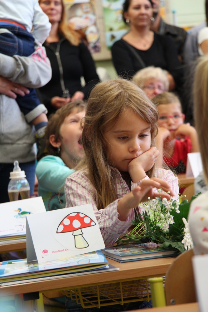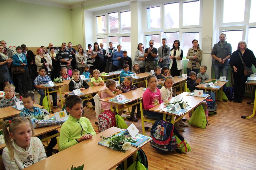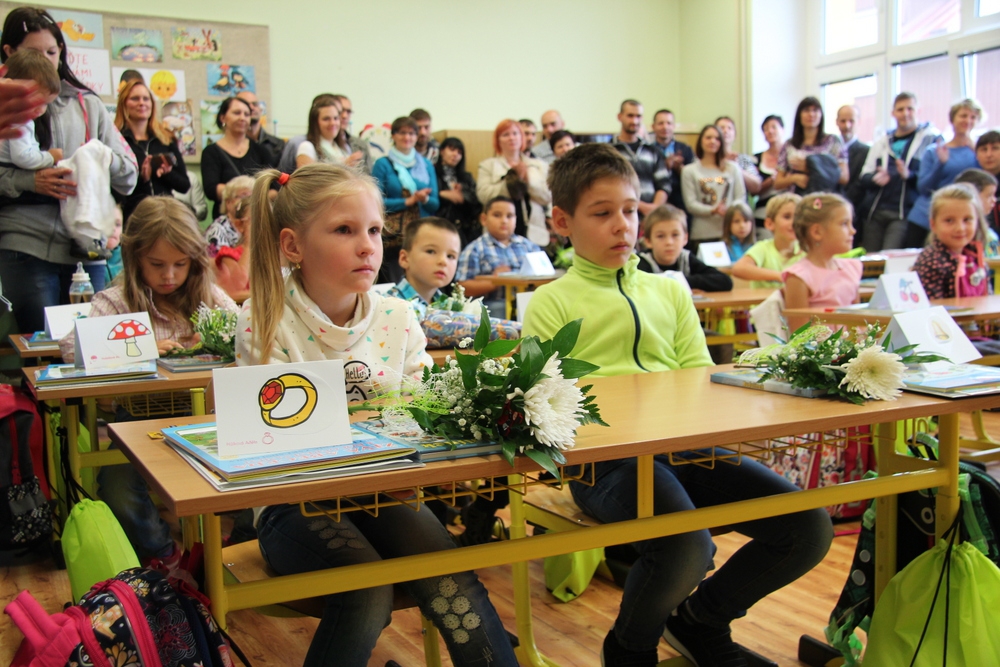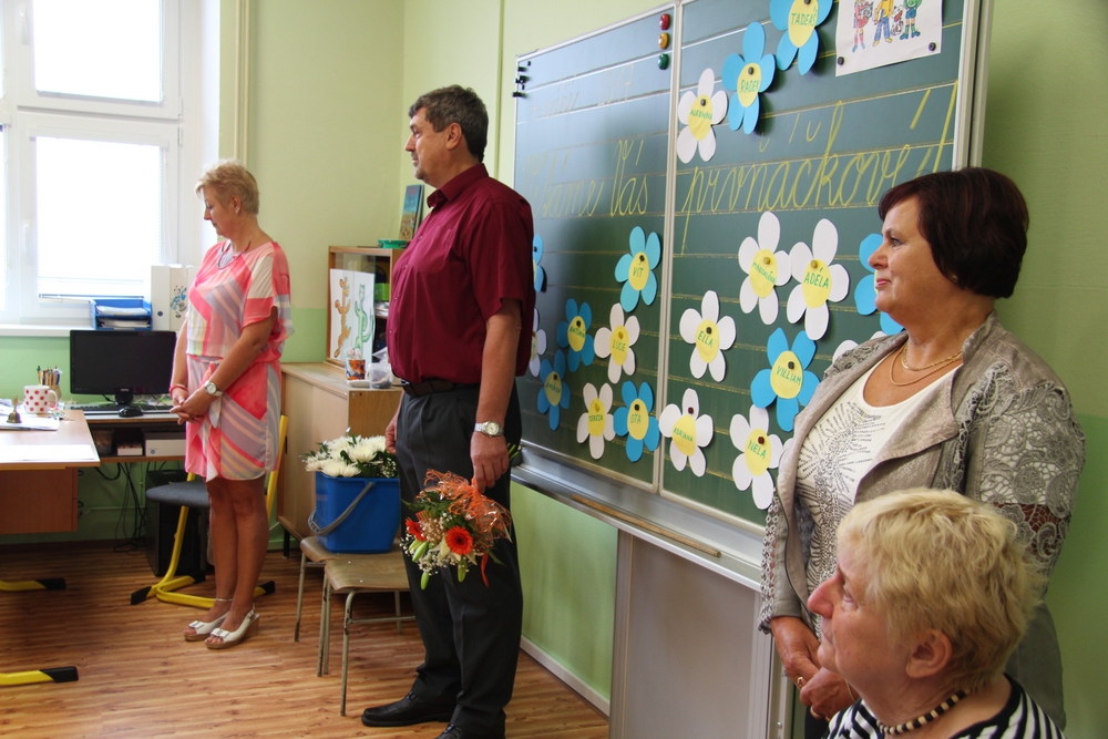 Přivítat prvňáčky přišla paní starostka Mgr. Ida Jenková, paní Věra Klusáčková za komisi pro slavnosti a obřady a za školu zástupkyně pro 1. stupeň Mgr. Jana Šulcová, vedoucí vychovatelka Eva Řeháková a ředitel školy. Bylo velmi milé vidět nové žáčky naší školy, ale také velké množství rodičů a prarodičů, kteří své ratolesti první školní den přišli doprovodit. Věříme, že se jim ve škole bude líbit.