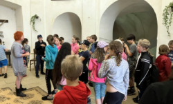 Naneštěstí se těsně před naším příchodem setmělo a stihl nás déšť, o to tajemnější celý pobyt v Potštejně byl. Čekání na lepší počasí jsme si zpříjemnili čtením povídky a plněním úkolů týkajících se hradu, na který jsme se měli zakrátko vydat.