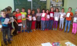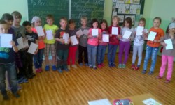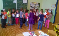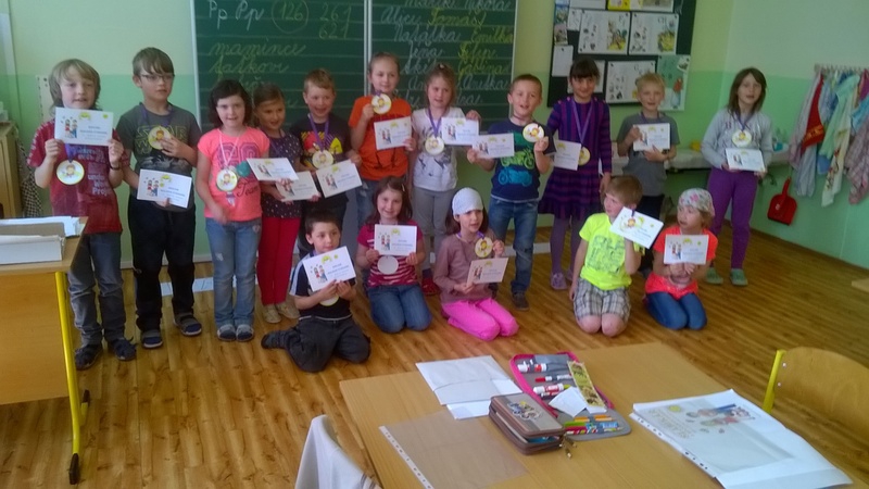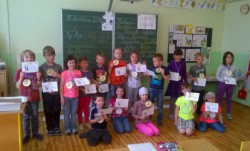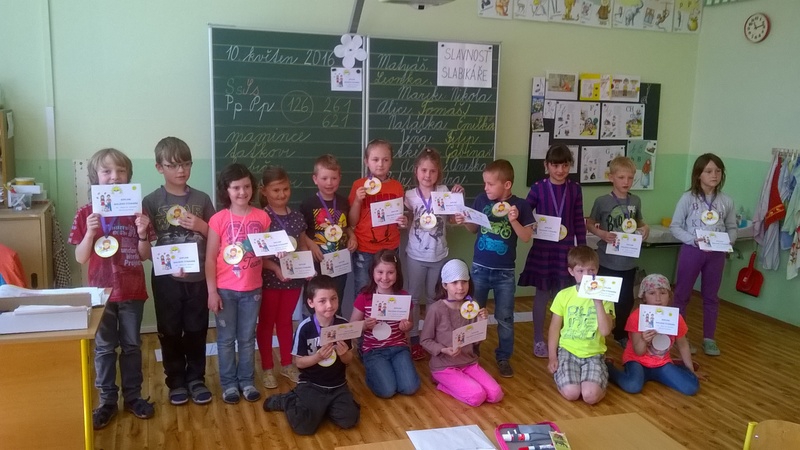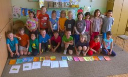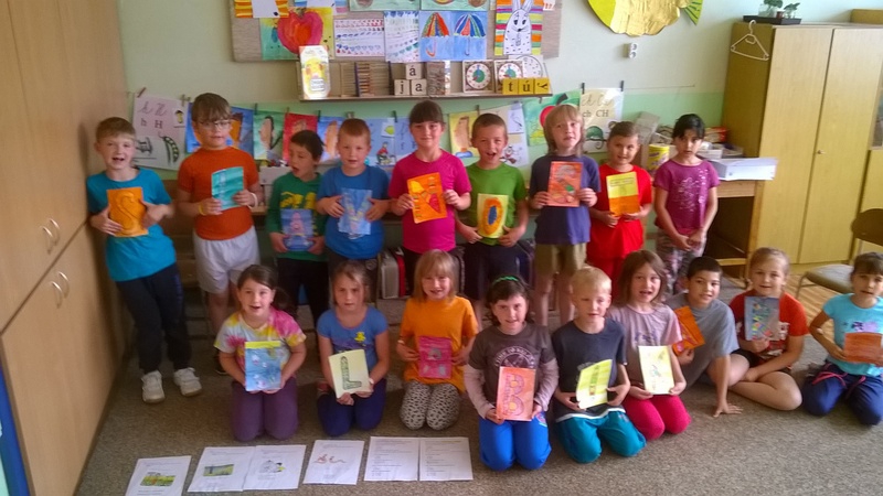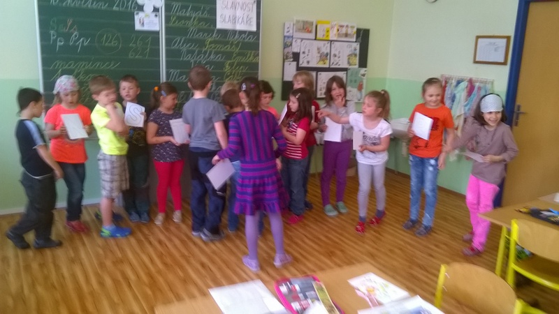 Začátkem května prvňáčci v  1.B  dočetli svoji první společnou knížku – Slabikář.
