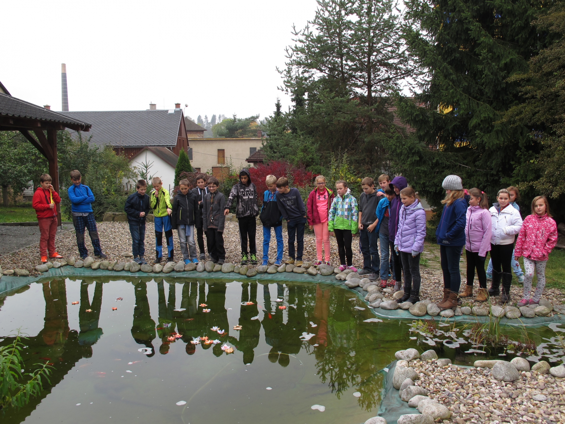 Třídy 6.A, 7.A a ŠD 5.A a 5.B se účastní se svými pracemi soutěže o řezací plotr, s názvem Hra se světlem. Děti ze šesté třídy skládaly origami lekníny, které byly večer pouštět na školním jezírku.