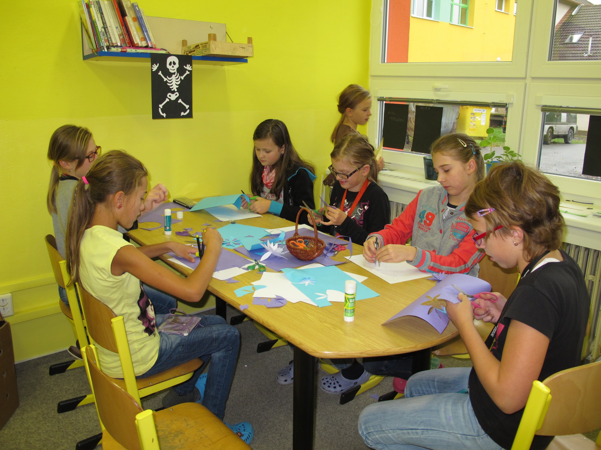 Ve večerních hodinách se sešla téměř třetina třídy a atmosféra byla podle přítomných rodičů romantická. Během polední pauzy vystříhaly děti pátých tříd ve školní družině jiný typ leknínů. Oba druhy se pak po jezírku proháněly společně. Sedmá třída se pustila do složitějšího vyrábění, kdy podle papírové šablony vyřezávala dýně do keramické hlíny.