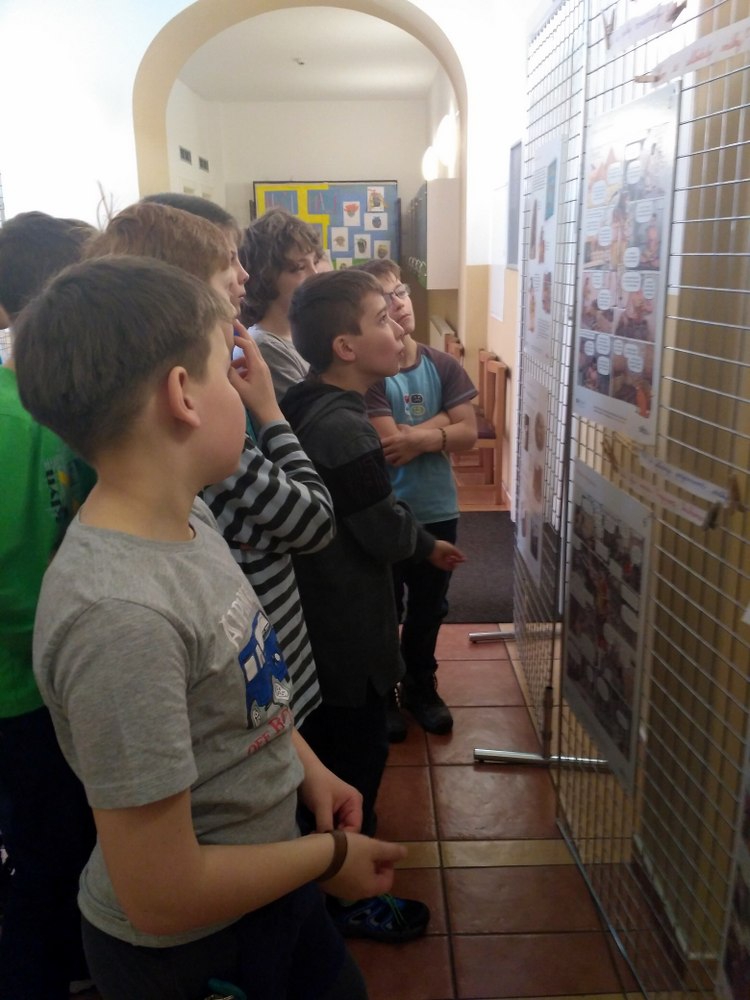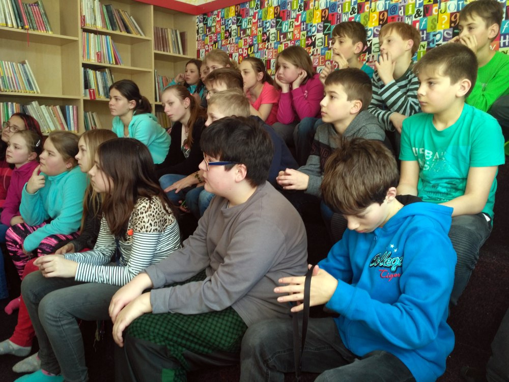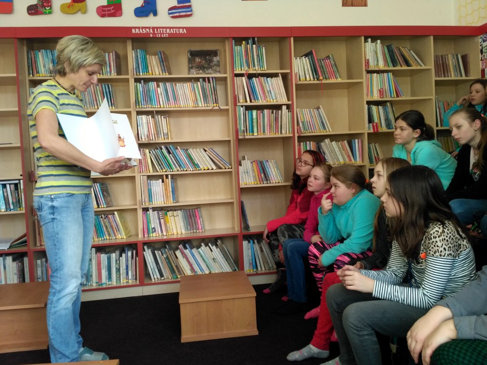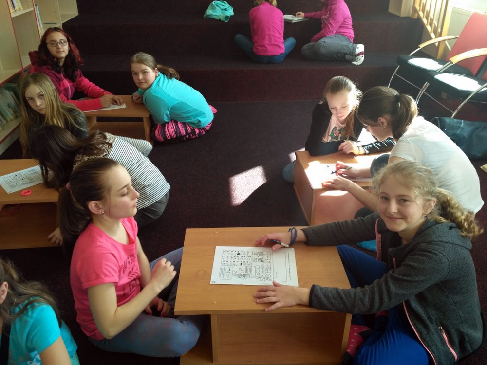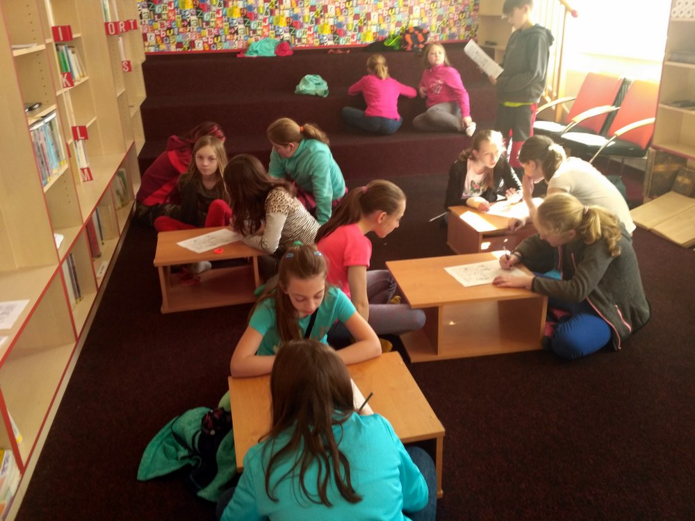 Třídy prvního stupně naší školy se během dvou týdnů vystřídají v knihovně na zajímavé besedě o vývoji písma a knihoven s názvem Spolkla mě knihovna.