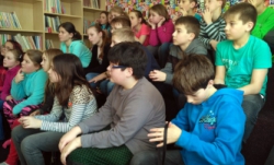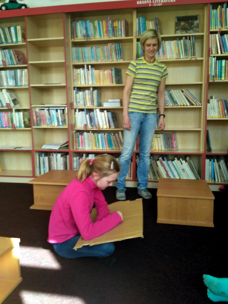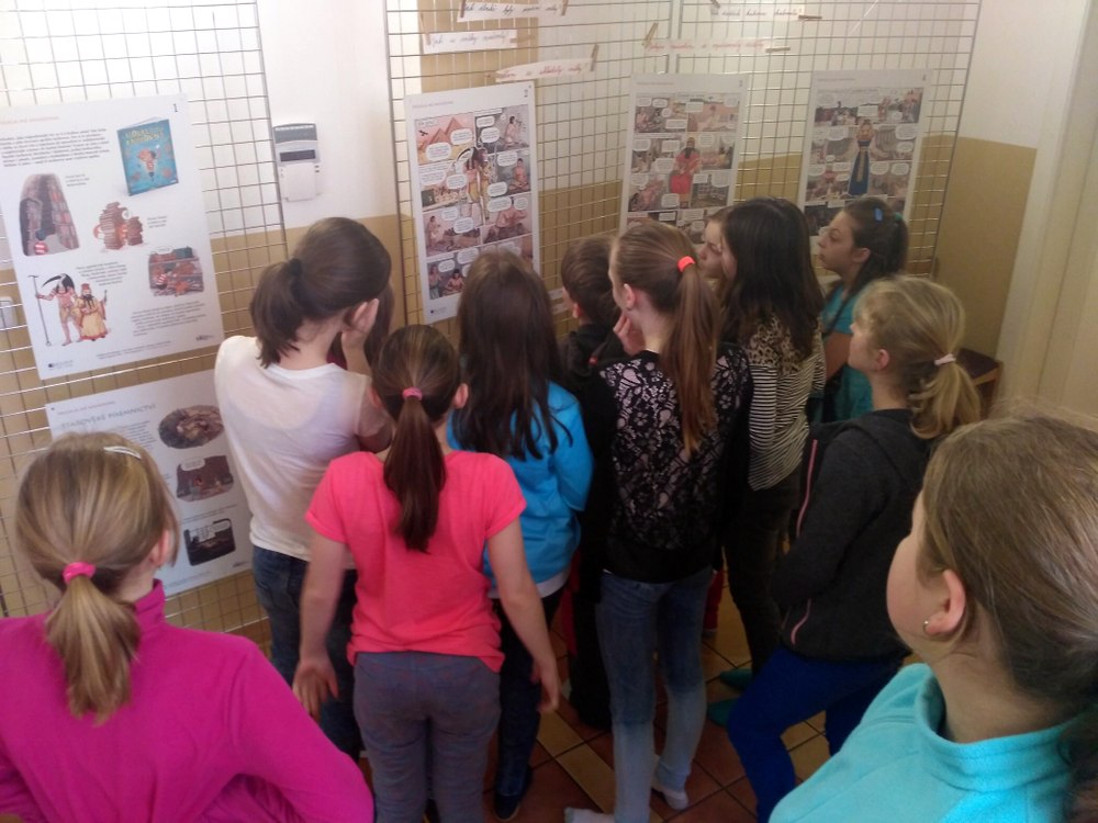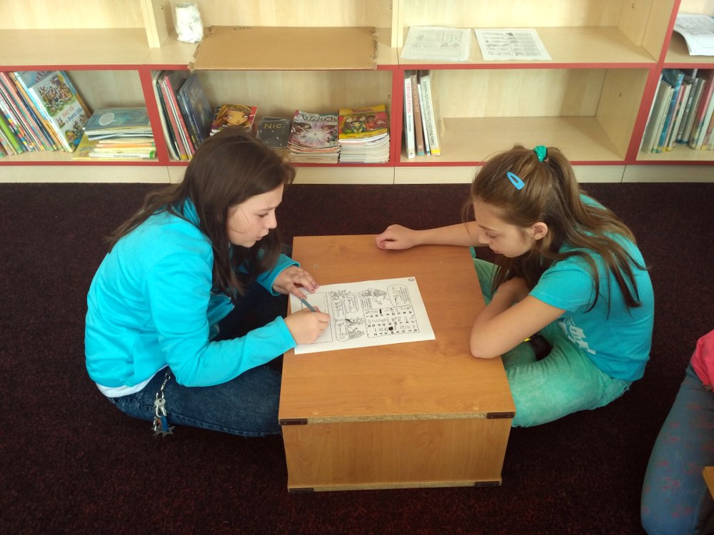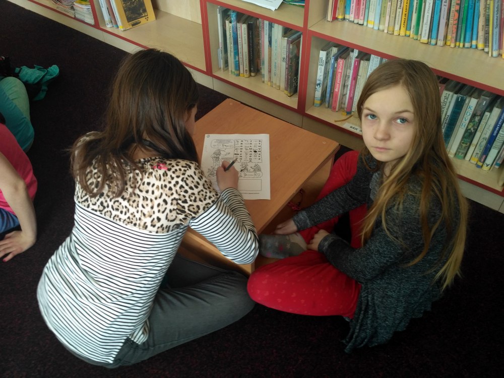 Třídy prvního stupně naší školy se během dvou týdnů vystřídají v knihovně na zajímavé besedě o vývoji písma a knihoven s názvem Spolkla mě knihovna.