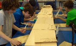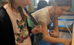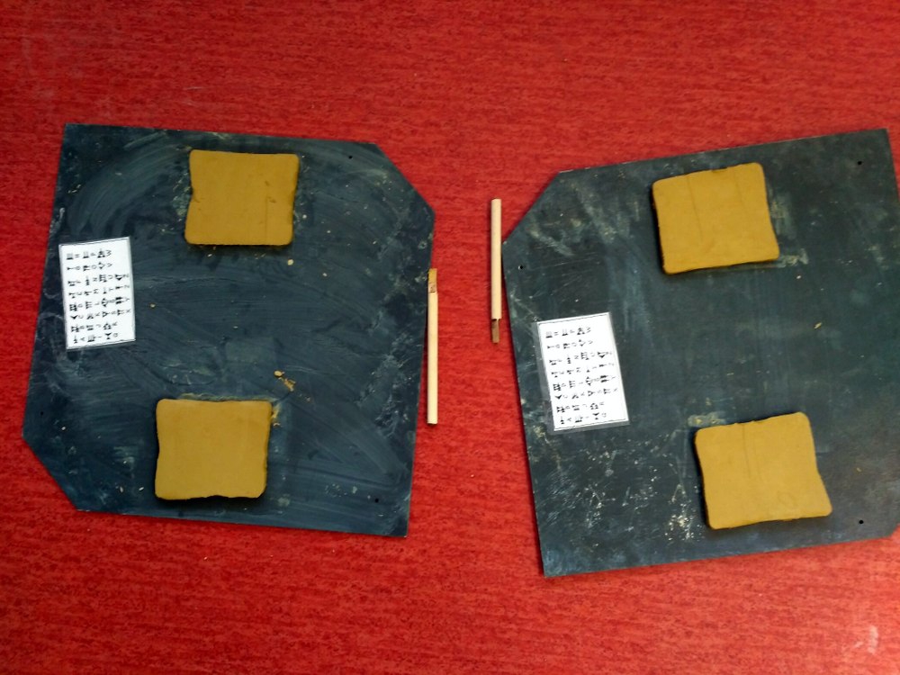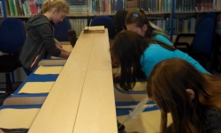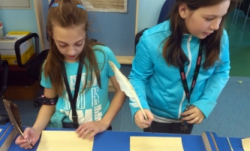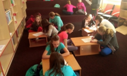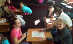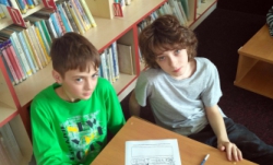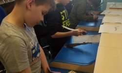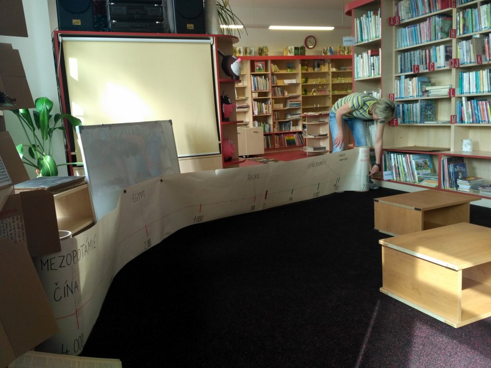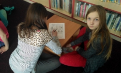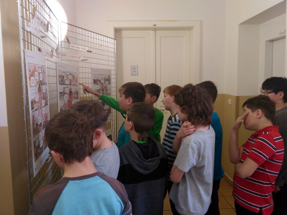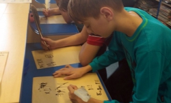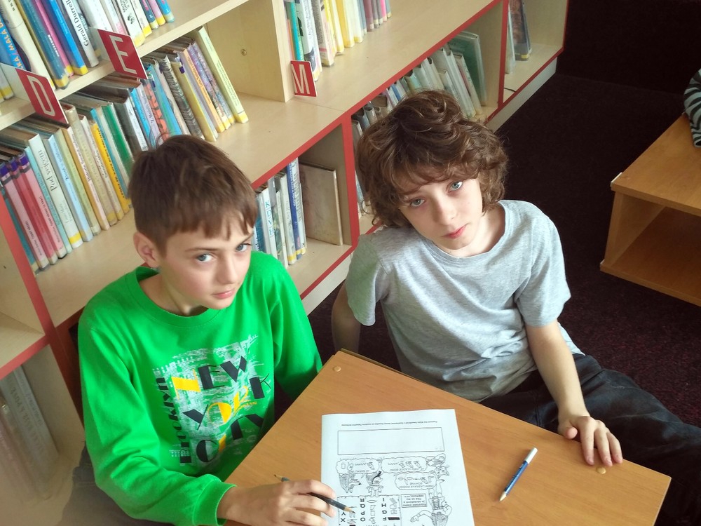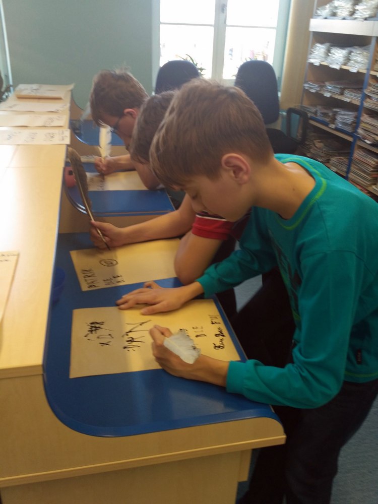Žáci se spolu s hlavním hrdinou knihy Kláry Smolíkové Davidem vydávají do dob minulých a poznávají a zkoušejí, jak a na co se dříve psalo. Zkusí si psát husím brkem na "pergamen", rýt klínové písmo do hliněných destiček a kreslit hieroglyfy. Děkujeme knihovně a zvlášť Katce Boučkové za další skvělý program.