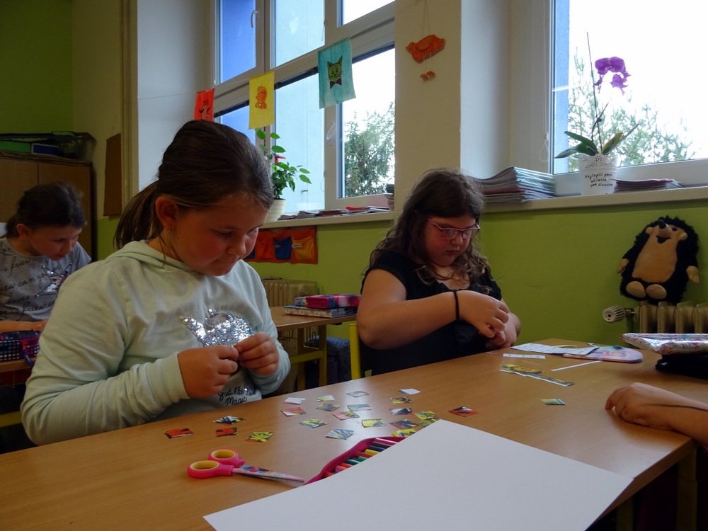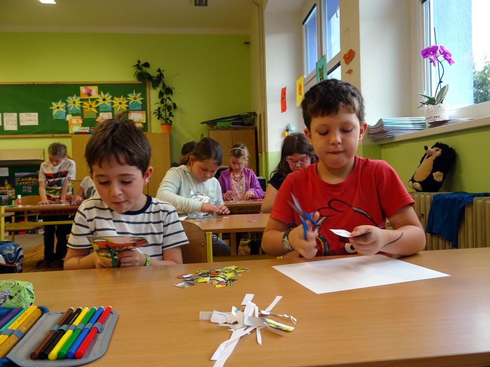 Pracovali jsme s knížkami, vyprávěli pohádky, recitovali básničky, počítali, skládali, lepili, malovali… něco z toho můžete vidět na následujících fotografiích.