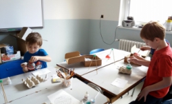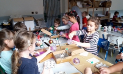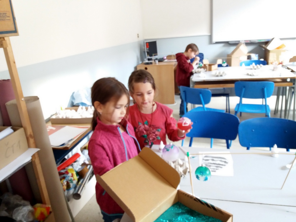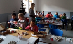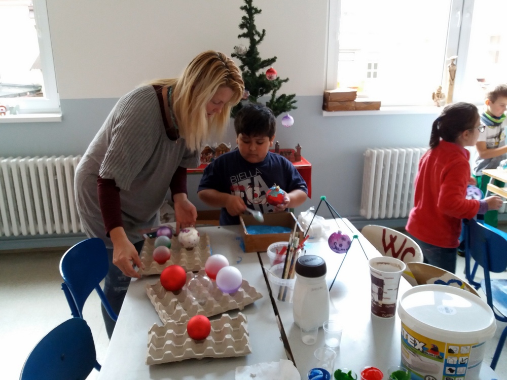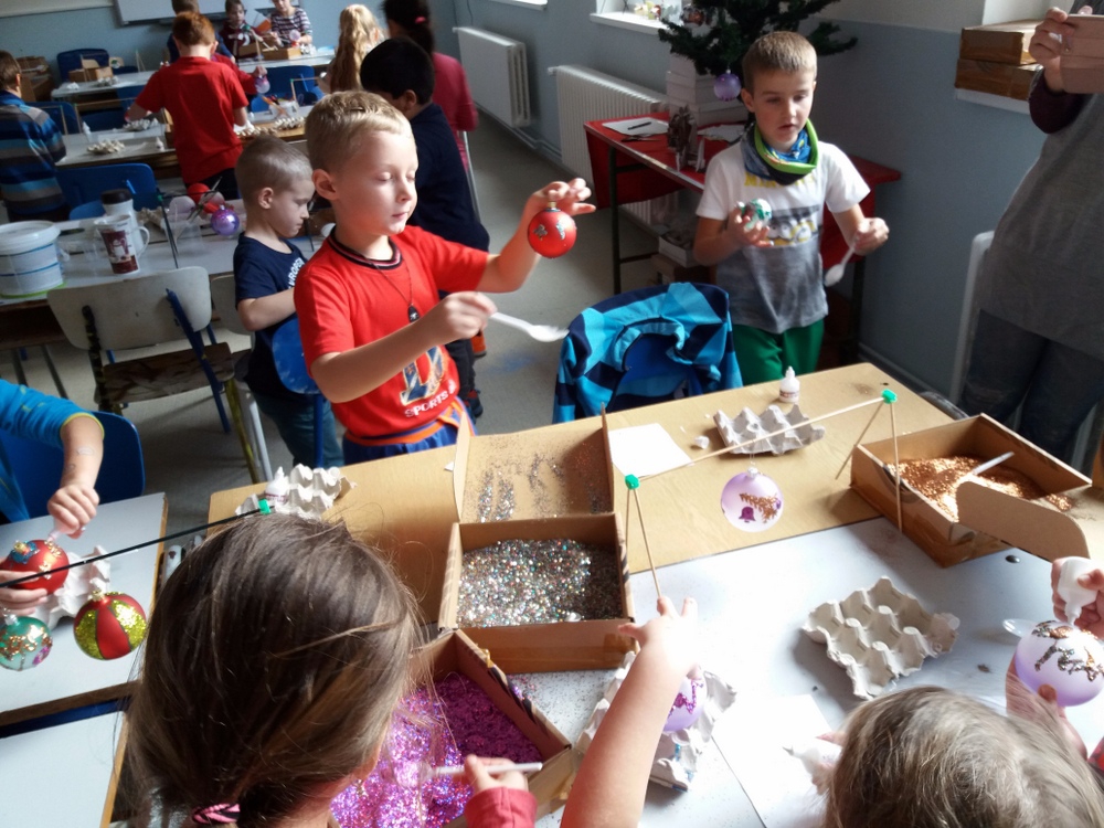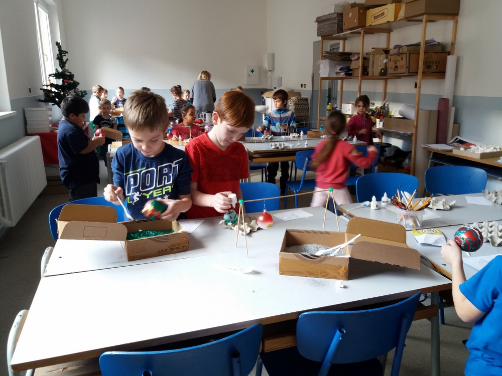 Nejdříve jsme si museli vymyslet motiv, který chceme na kouličce mít. Poté jsme si ho důkladně nakreslili na papír a podle vytvořeného nákresu jsme se při zdobení řídili. Každý si mohl vybrat barvu své ozdoby stejně jako třpytky. Byli jsme pochváleni za trpělivost a pečlivou práci.