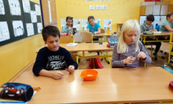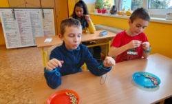 Během prosince jsme vyráběli dárky k Vánocům. V muzeu papírových modelů jsme využili akci na výrobu skleněných koulí. Dále nás navštívila Lenka Kozárová, která děti velmi nadchla a vyrobila s nimi drátkovanou rybičku a hvězdu zdobenou korálky. Těšíme se na další spolupráci!