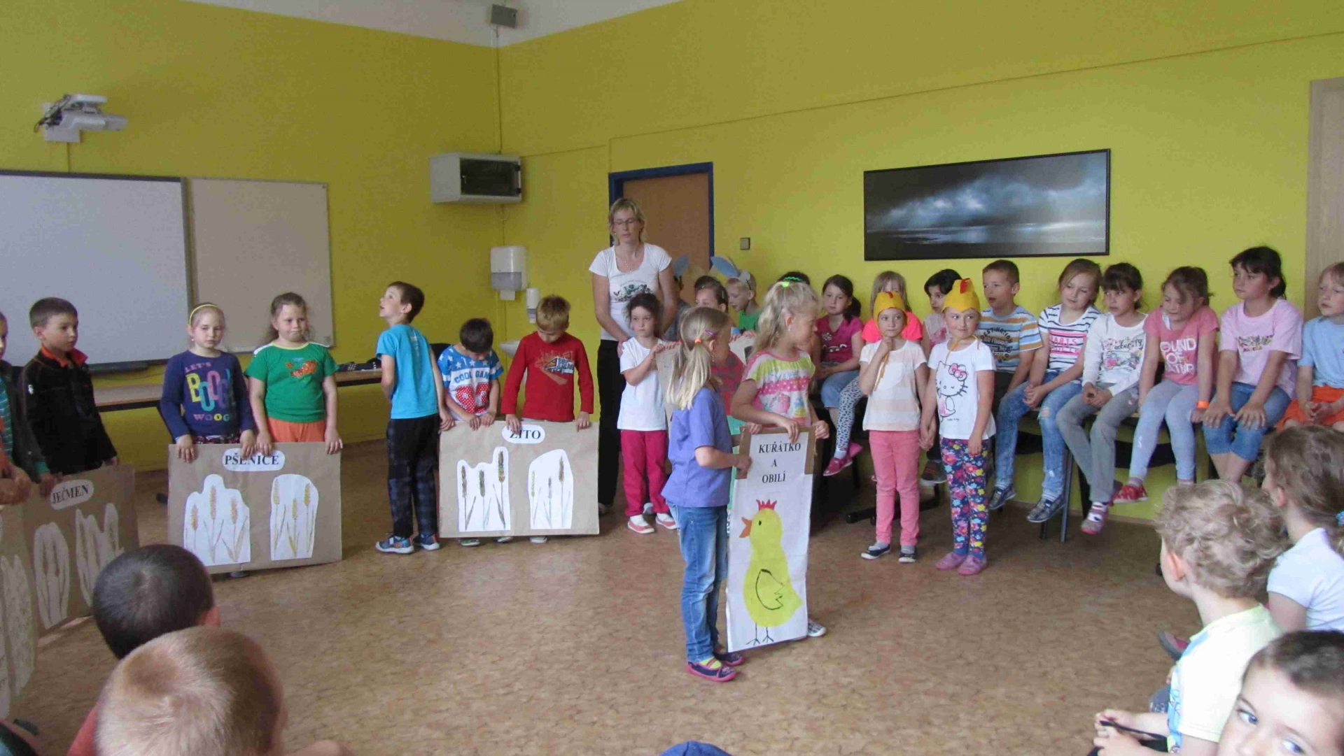 Žáci 1.A a 1.B během jarních dní nacvičovali v rámci výuky i během školní družiny program, který představili na Dni řemesel 28.5.2016. Pro veliký ohlas a šikovnost dětí jsme zahráli pohádku Kuřátko a obilí, zazpívali a zatančili písničky, zarecitovali básně ještě jednou v pondělí 30. 5. 2016 dětem z MŠ Jiráskova a žákům z 1.C. Představení se dětem velice líbilo.