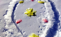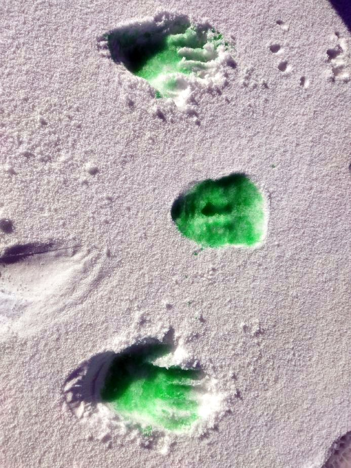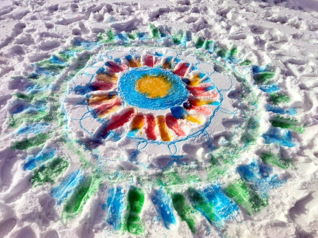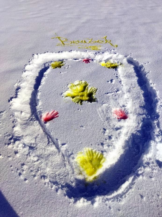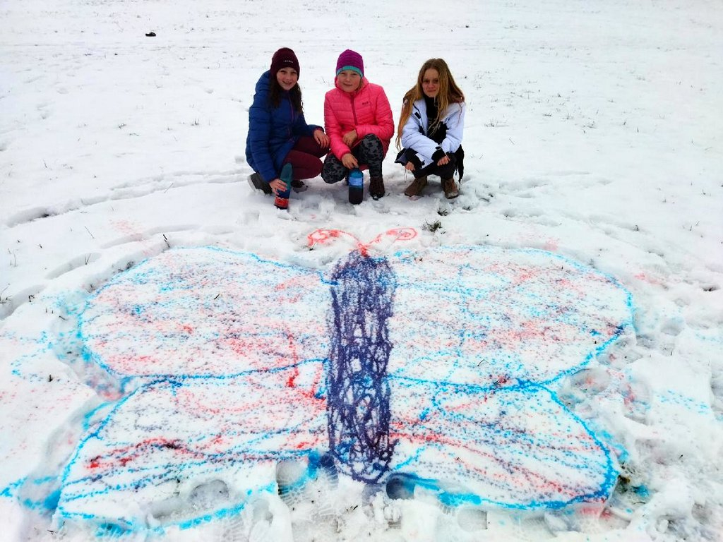 Konečně letos byly příznivé podmínky k tvoření venku a tak mohli žáci vyrazit vyzkoušet si pro svá výtvarná díla neomezenou sněhovou plochu. Díla vznikala pomocí techniky drippingu, kterou ve světě proslavil Jackson Pollock. Jedná se o cákání a polévaní plochy barvou. Žáci pro svá díla využili potravinářské barvy, které jsou pro přírodu neškodné. Zároveň se jedná o nestálá díla, která při nepříznivých podmínkách rychle zmizí. Snad se alespoň někomu z vás podařilo si galerii pod širým nebem na Klůčku projít.