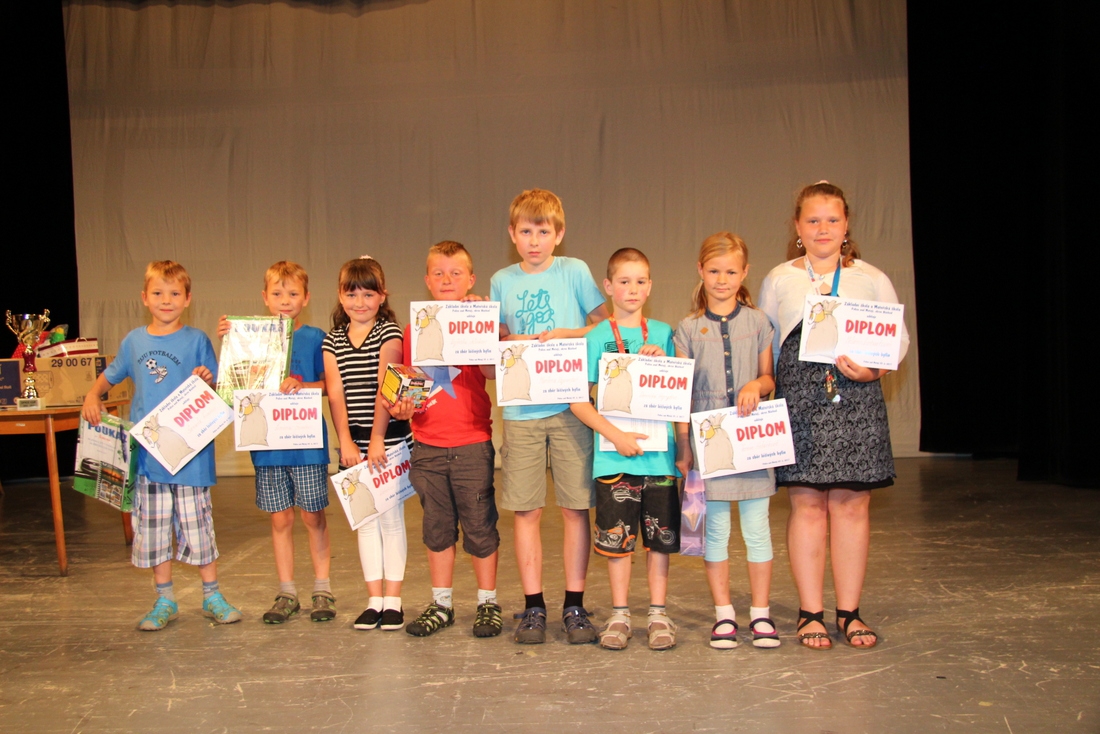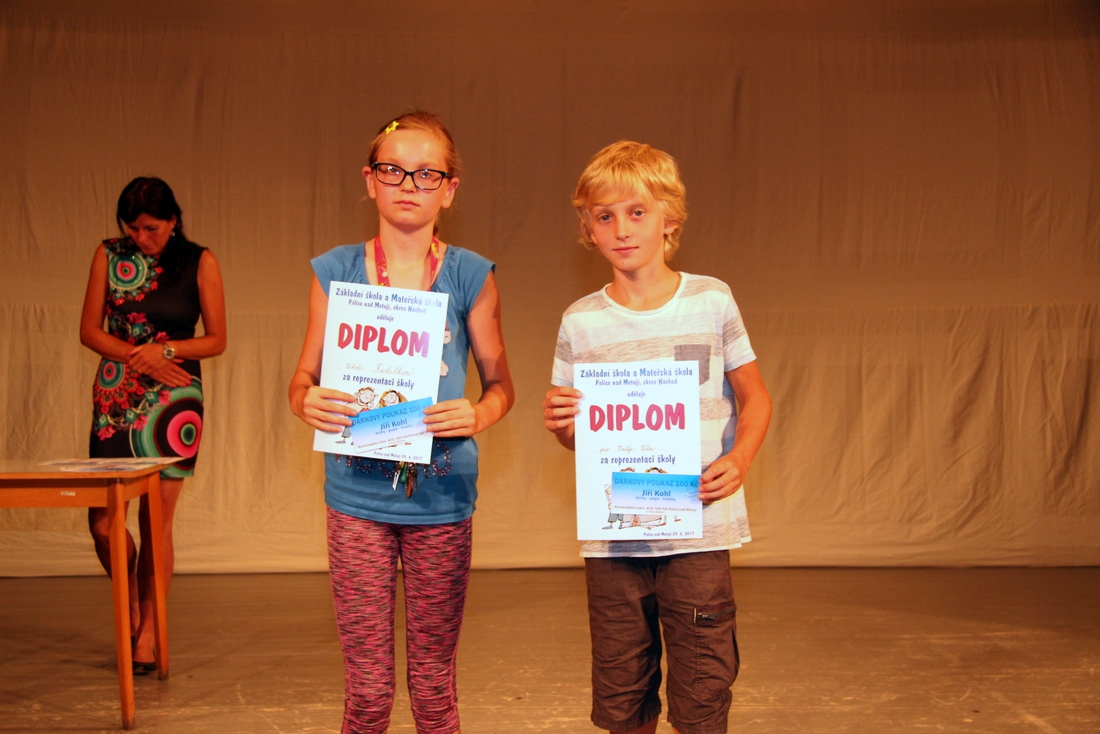 Toto slavnostní hodnocení je rozděleno na dvě části. První část je určena pro žáky prvního stupně, kdy se vyhlašují celkové studijní výsledky, výsledky sběru léčivých bylin, sběru starého papíru, odměňují se žáci za reprezentaci školy. Druhá část je určena pro žáky druhého stupně, kdy obsah hodnocení je doplněn programem 9. tříd. V tomto programu má každá třída možnost rozloučit se se školou programem ve vlastní režii. Jak celé dopoledne probíhalo si můžete prohlédnout ve fotoalbu.