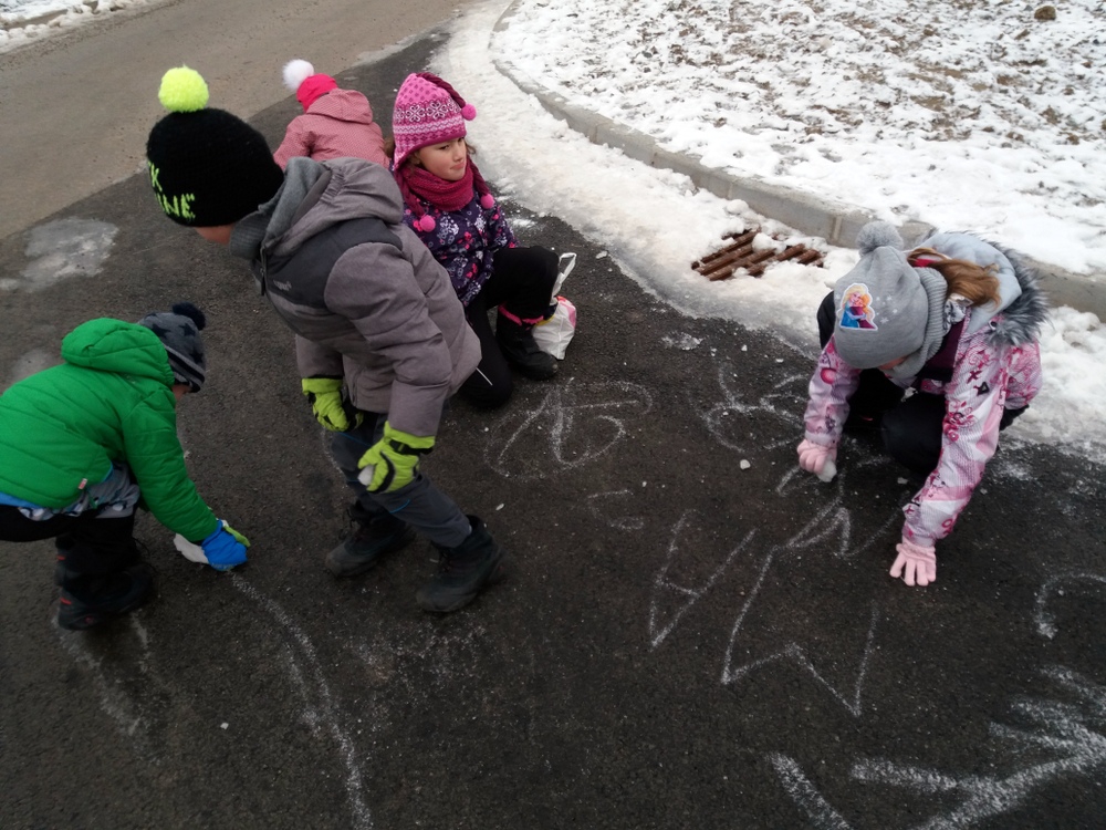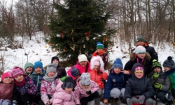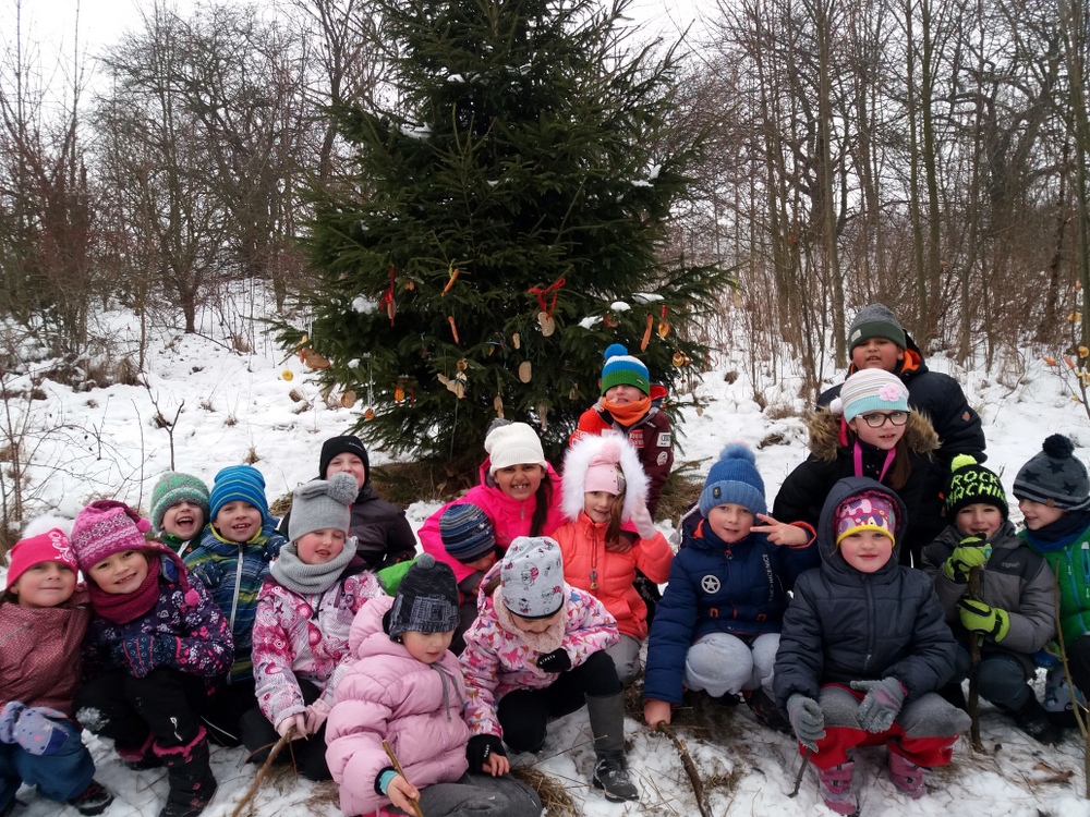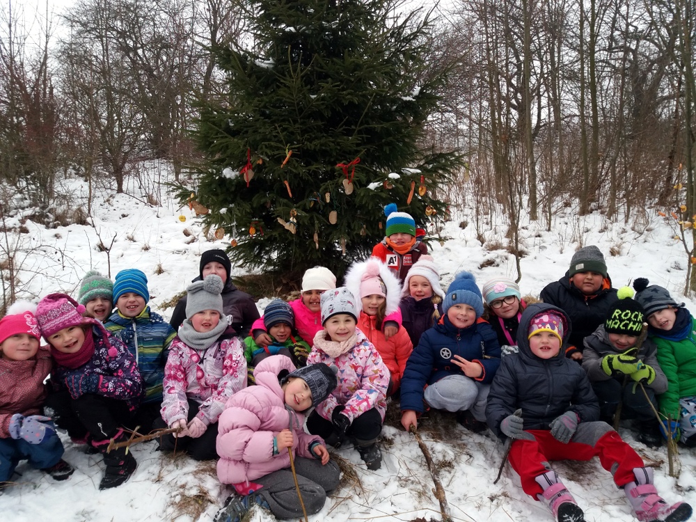 Děkujeme všem rodičům, kteří nám pro zvířátka dali tolik dobrot. My jsme je navázali na mašle a odnesli do lesa. V den zdobení mrzlo a ruce nás pěkně zábly, věříme ale, že jsme zvířátkům udělali mlsnou nadílkou radost a po svátcích půjdeme uklidit jen mašle.
