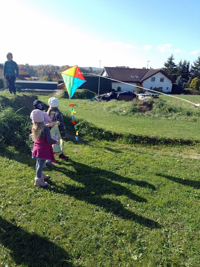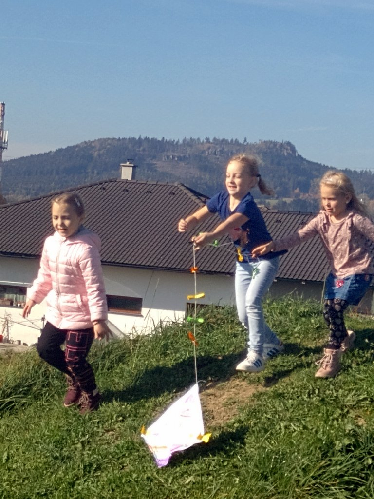 Zajímavá byla také sportovní soutěž tříd 1.A a 1.B v Pellyho parku. K podzimu patří draci, my jsme je vyrobili a pak mohla proběhnout drakiáda. Všem se líbila. Ochutnávka ovoce a zeleniny a taková „poznávačka“, o co jde, byla taky příjemná. Na podzim opadávají stromy, všude je plno listí. My jsme je sbírali, vyrobili jsme z nich hezké růžičky.