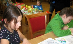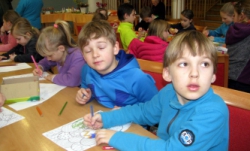Ve všech odděleních jsme v dubnu a v květnu skládali puzzle. Každý podle věku měl za úkol složit na čas 2 puzzle. Z každého oddělení nejlepší 3 žáci postupují do celodružinového kola, kde už všichni skládají stejně obtížné puzzle. Uvidíme, jak se jim povede. Druhá akce všech žáků byla výtvarná soutěž na téma „ptáci“, malovali jsme, lepili, a pak začala hra na „učitele“, kdy hodnotili práci svých kamarádů. Vychovatelky v odděleních vyhlásily výsledky soutěže a zhodnotily i přístup „dětských učitelů“.  Prvňáčkové vystupovali s pásmem z večerníčků na akci školy „odpoledne v klášteře“, dost hodin věnovali nacvičování tanečků a cvičení na hudbu znělek, výrobě rekvizit. Ale stálo to za to!