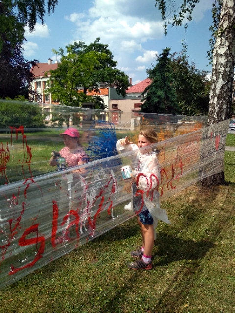 30 dětí ze ŠD využilo Dne dětí k malbě pod širým nebem v Bezděkových sadech. Své výtvory věnovaly radnici k 300. výročí. Za svou píli byly odměněny nadšenými diváky a zmrzlinou. Tato akce proběhla ve spolupráci s papírovým muzeem.