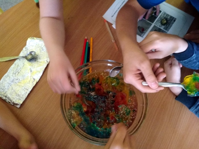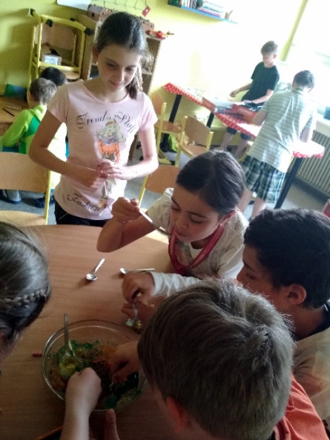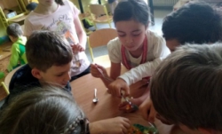 Ve všech odděleních jsme v dubnu a v květnu skládali puzzle. Každý podle věku měl za úkol složit na čas 2 puzzle. Z každého oddělení nejlepší 3 žáci postupují do celodružinového kola, kde už všichni skládají stejně obtížné puzzle. Uvidíme, jak se jim povede. Druhá akce všech žáků byla výtvarná soutěž na téma „ptáci“, malovali jsme, lepili, a pak začala hra na „učitele“, kdy hodnotili práci svých kamarádů. Vychovatelky v odděleních vyhlásily výsledky soutěže a zhodnotily i přístup „dětských učitelů“. Prvňáčkové vystupovali s pásmem z večerníčků na akci školy „odpoledne v klášteře“, dost hodin věnovali nacvičování tanečků a cvičení na hudbu znělek, výrobě rekvizit. Ale stálo to za to!
