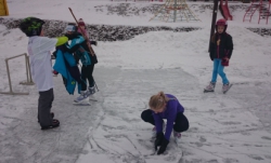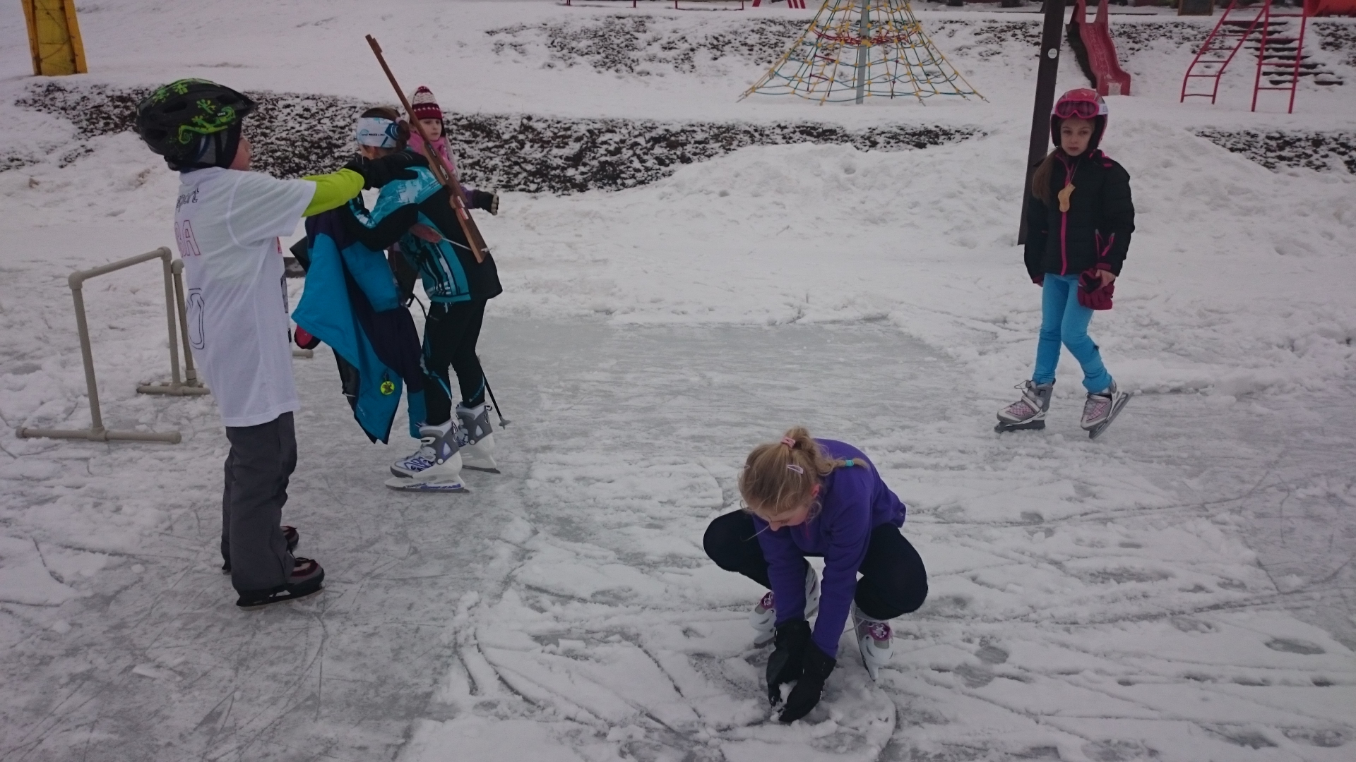 Přesto že to vypadalo, že nám počasí přát nebude, vše dopadlo krásně. I když od rána sněžilo a led nám zapadal, nenechali jsme se odradit a vyzbrojeni bruslemi vyrazili na sídliště.
