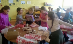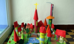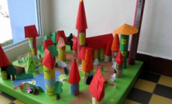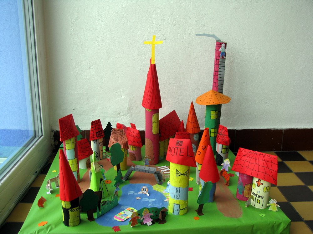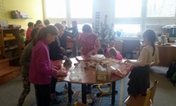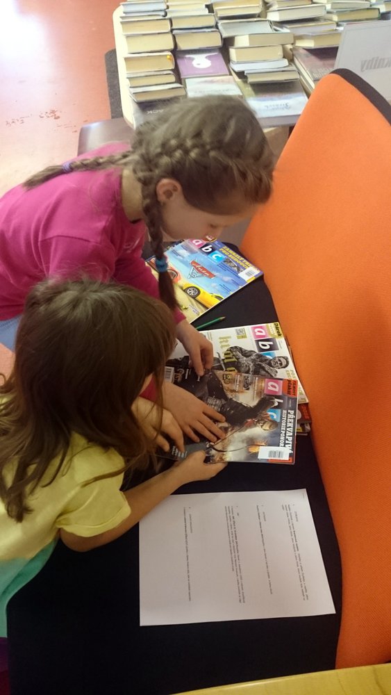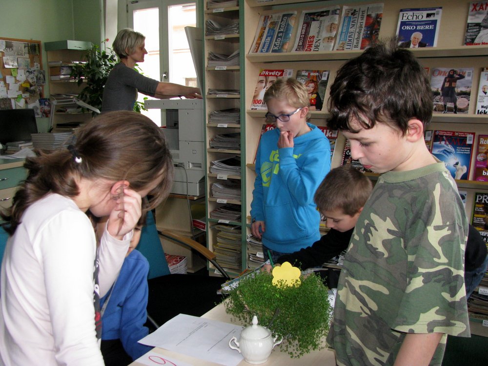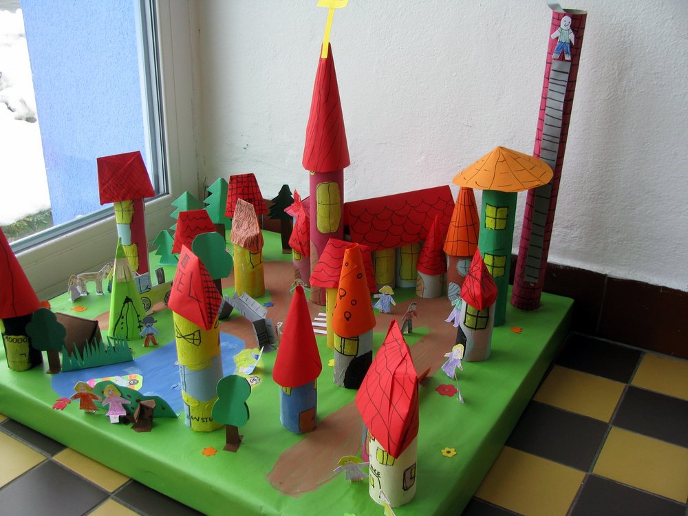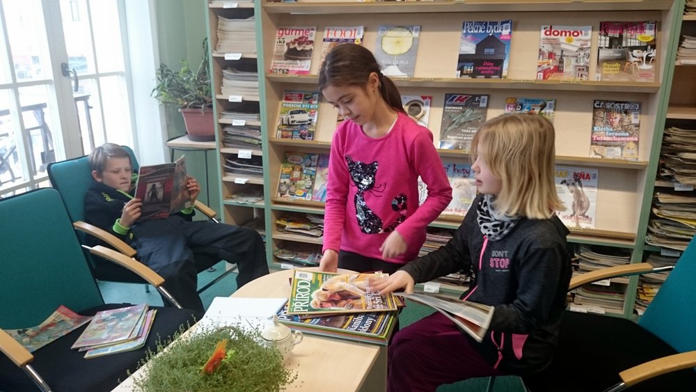 Také jsme si rozpustili sníh na bílém talířku a byli jsme překvapeni, kolik je v něm nečistot. Bylo to pro nás překvapení, protože jsme si na tento pokus přinesli obzvláště čistý sníh. Na konci měsíce jsme také navštívili městskou knihovnu. Tady nám paní Boučková připravila krásný program. Naučili jsme se vyhledávat správné články v časopisech a sestavili pohádku. V době, kdy jsme byli ve třídě, jsme si hlavně hráli. Přesto se nám podařilo sestavit papírové městečko. Každý přidal nějaký nápad, co by v něm chtěl nebo jen vytvořil domeček či postavičku.