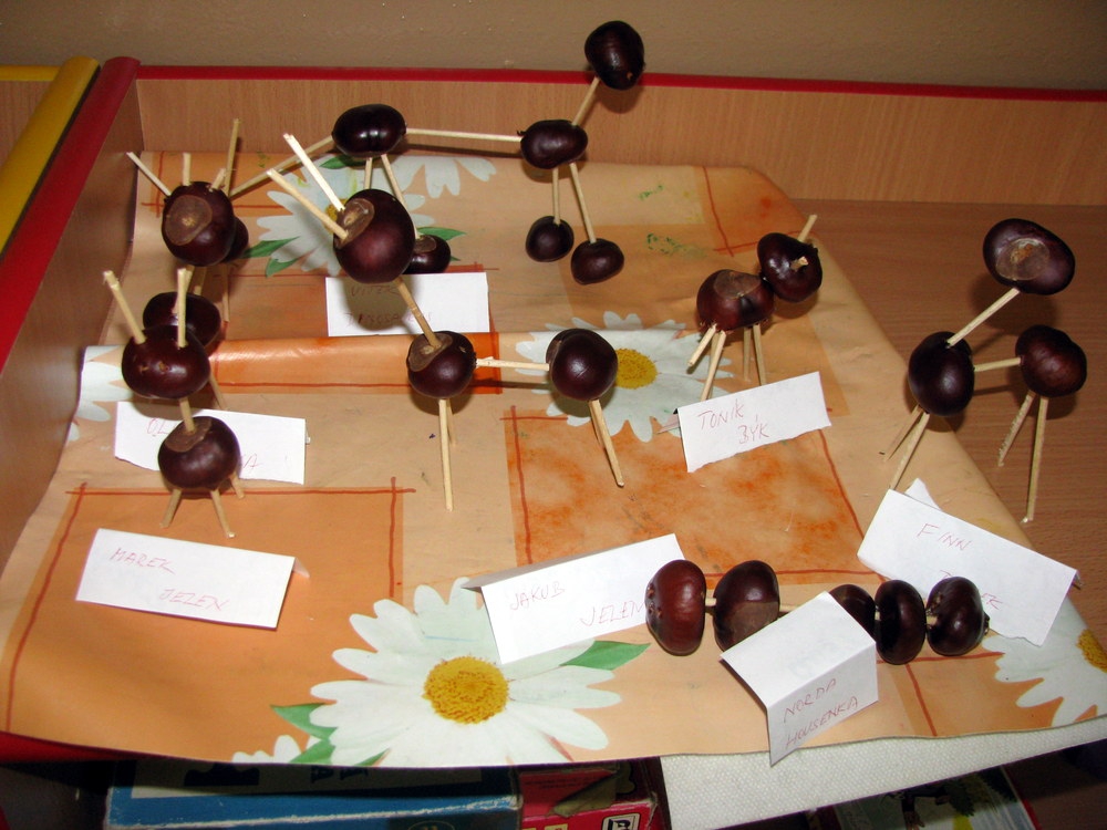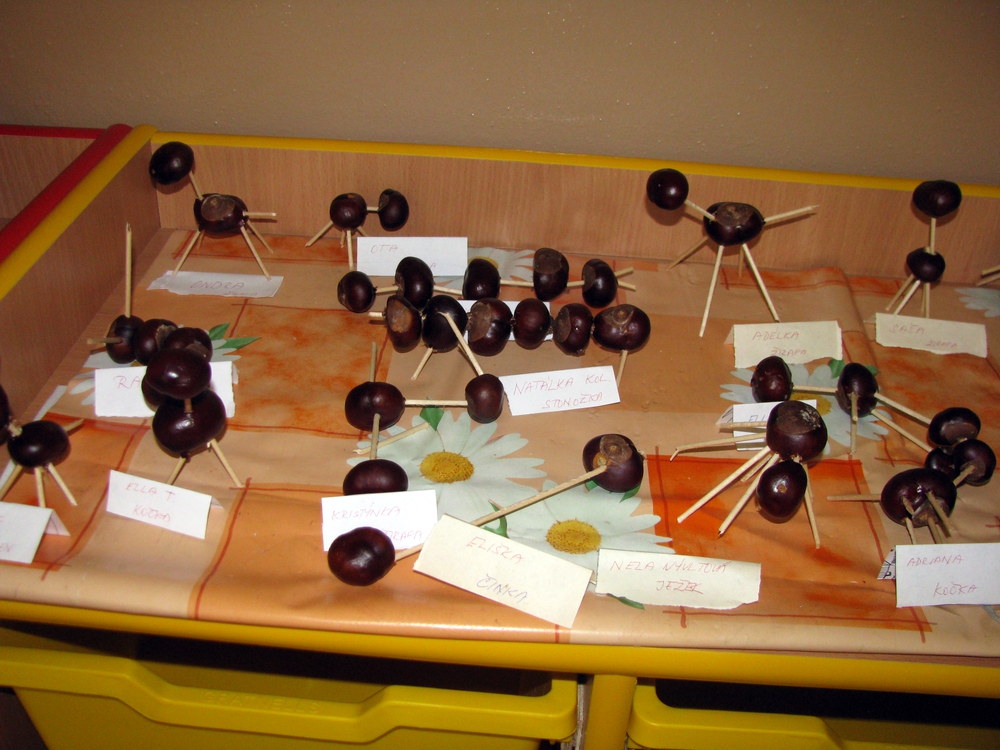 Pěkné počasí jsme se letos okamžitě snažili využít k pobytu venku, děti si mohly zahrát hry v parcích, na loukách, na hřišti, chodili jsme na tematické vycházky. V odděleních podle zájmů a věku dětí upravujeme činnosti, které máme naplánované podle ročního období. Na podzim využíváme přírodních materiálů při výtvarných činnostech, soutěžíme, hrajeme hry apod. Letos bylo problematické pouštění draků. Prvňáčkům sice svítilo sluníčko, ale foukal jen „větříček“. Přesto někteří draci létali. Druháčkové šli pouštět draky až napodruhé, ale ani oni neměli ideální počasí k této podzimní akci. Nejlépe se snad dařilo třeťákům.