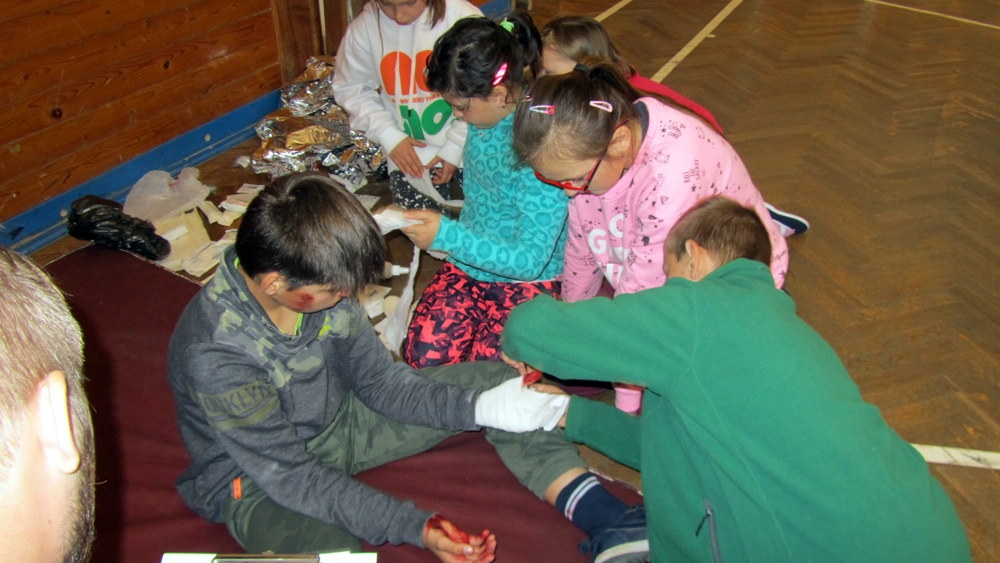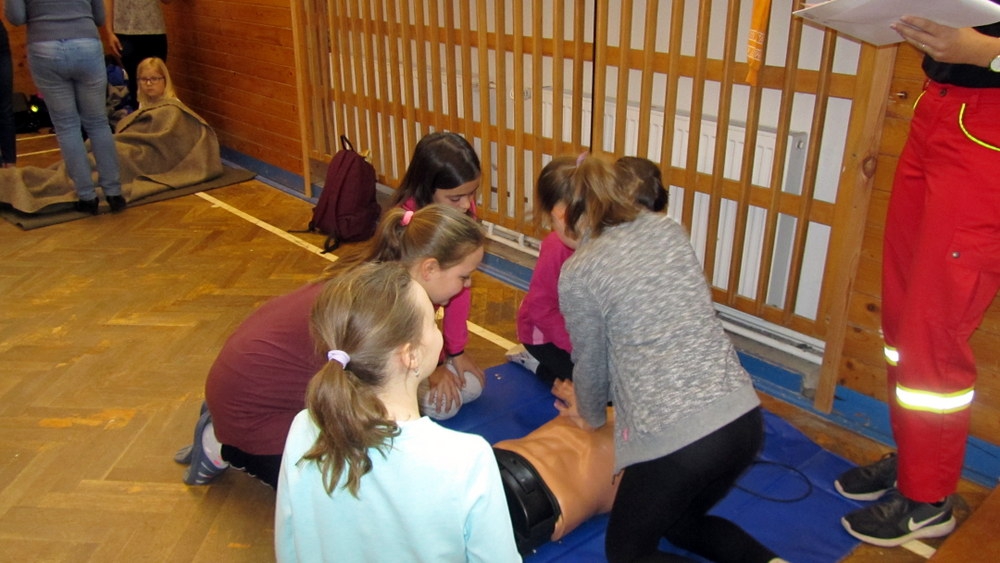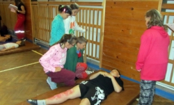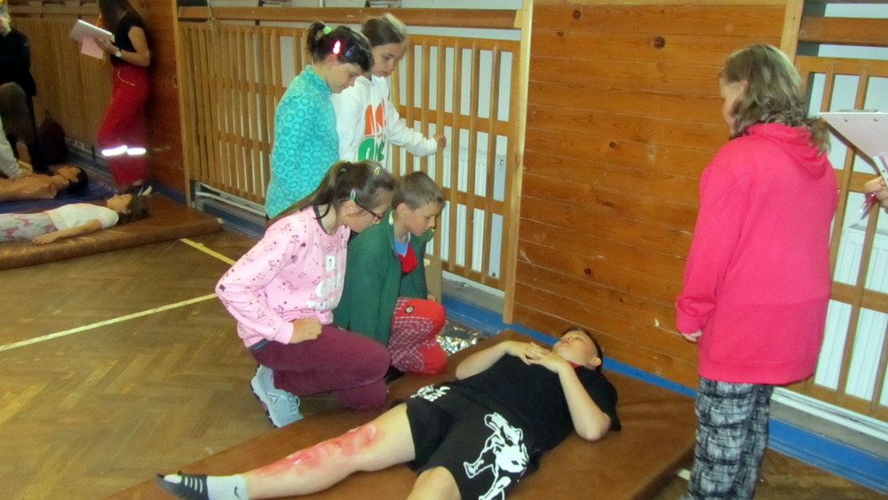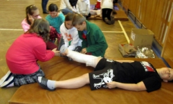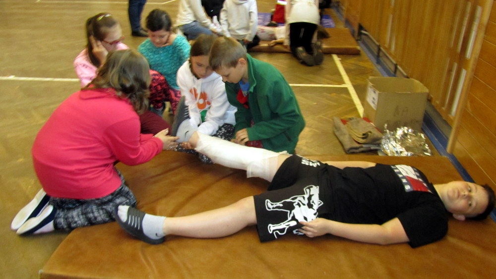 Od září pravidelně 11 dětí navštěvovalo zdravotnický kroužek, ve kterém se učilo první pomoc – obvazovou techniku, ošetření různých poranění, přivolání RZS. Pravidelně se účastníme soutěže organizované ČČK.
