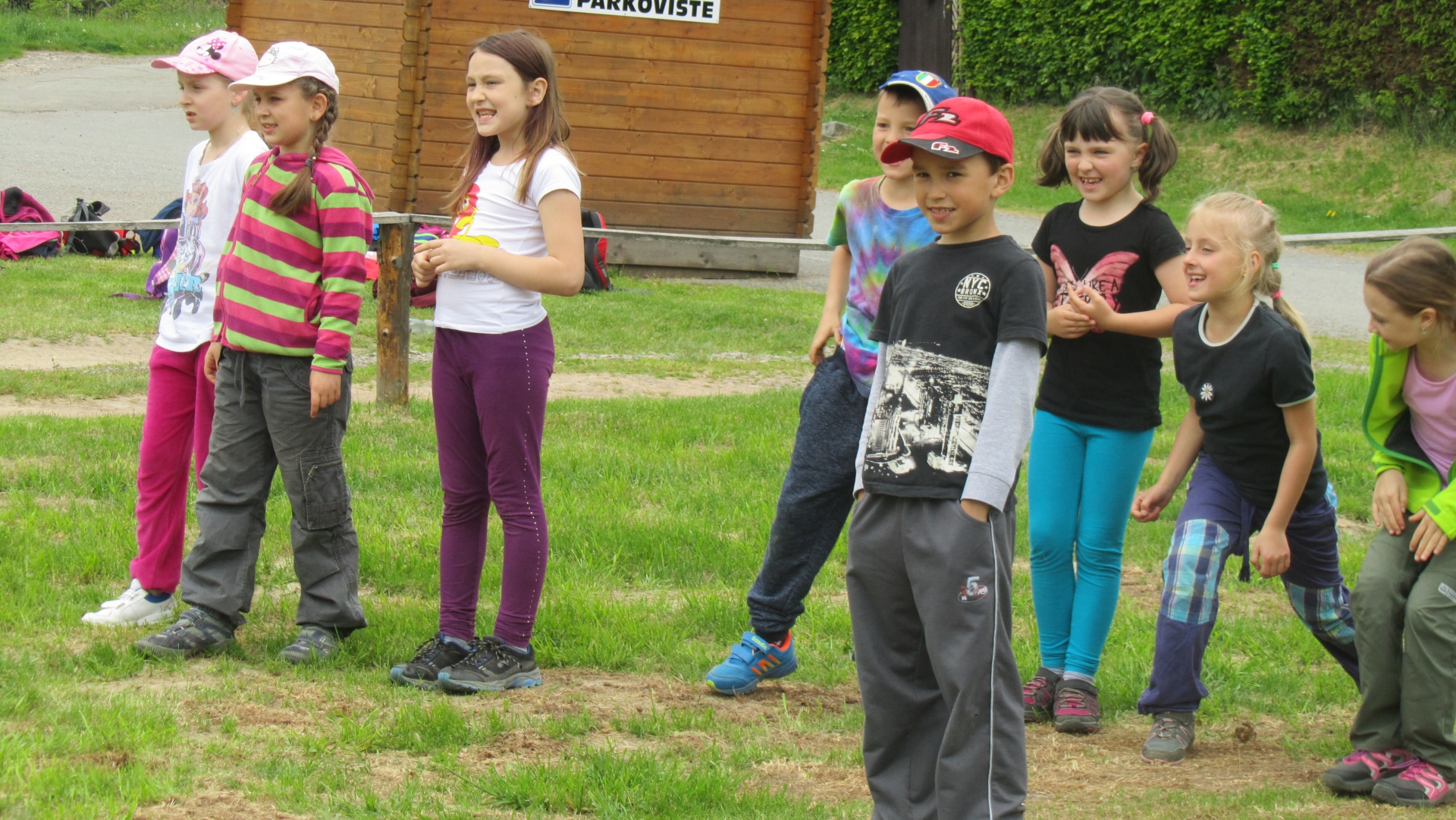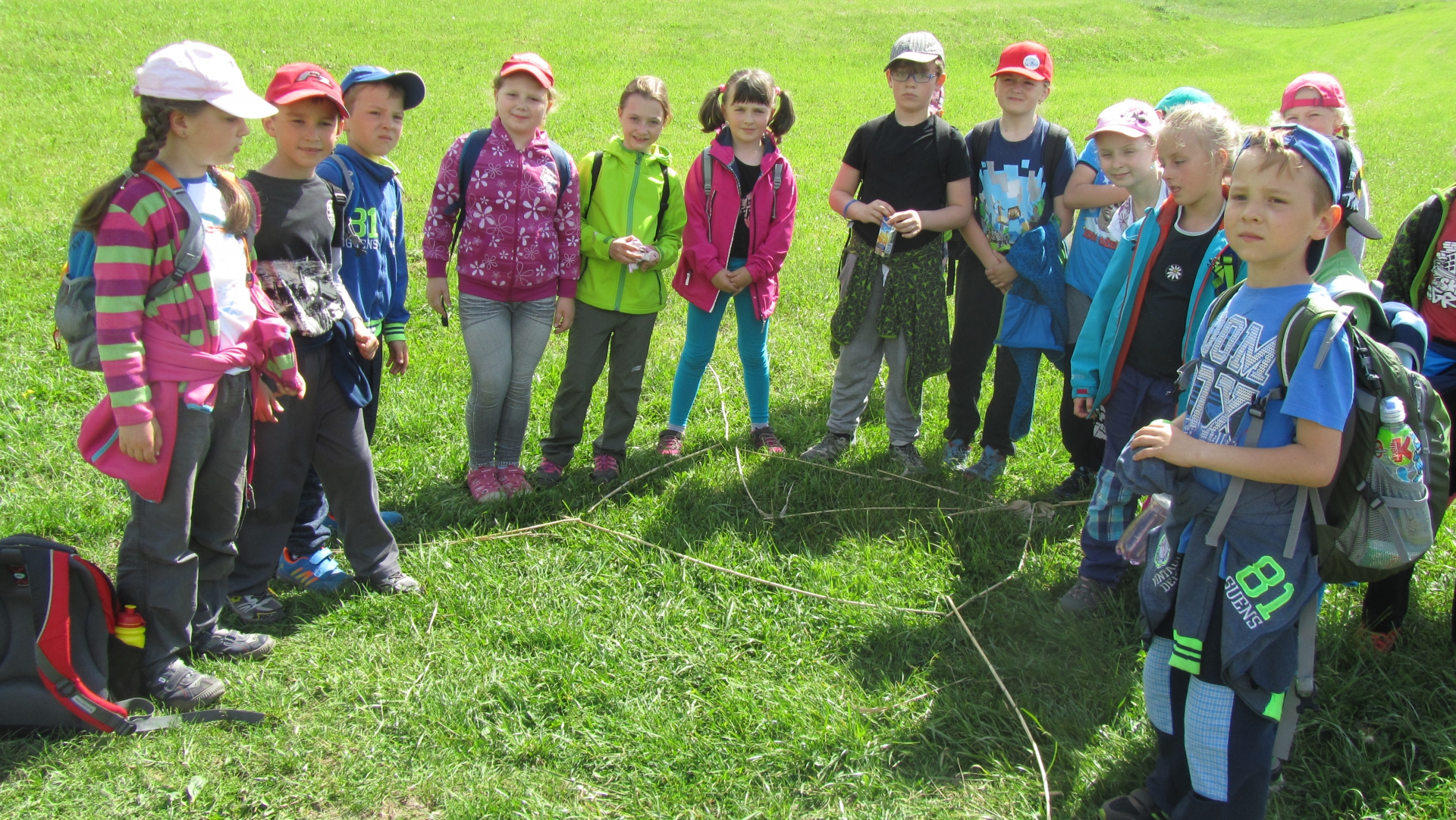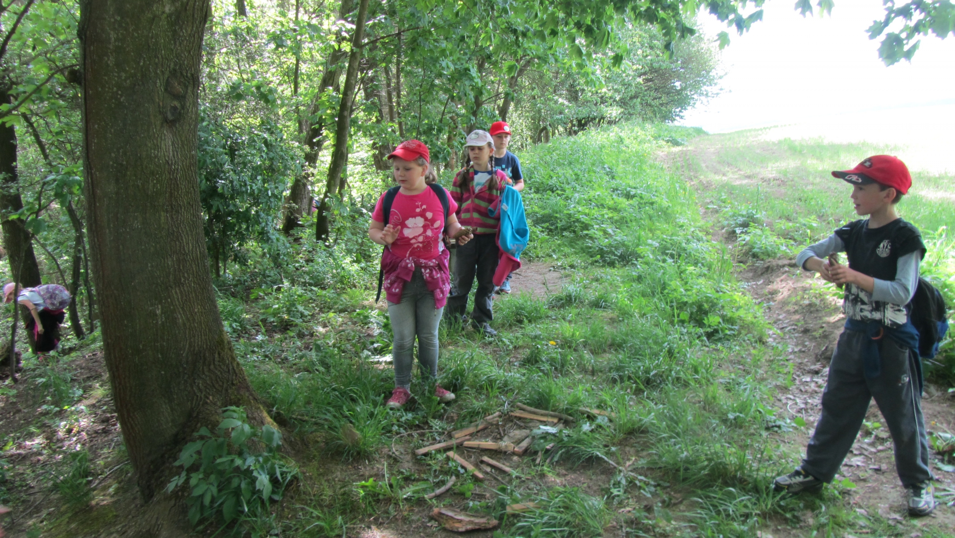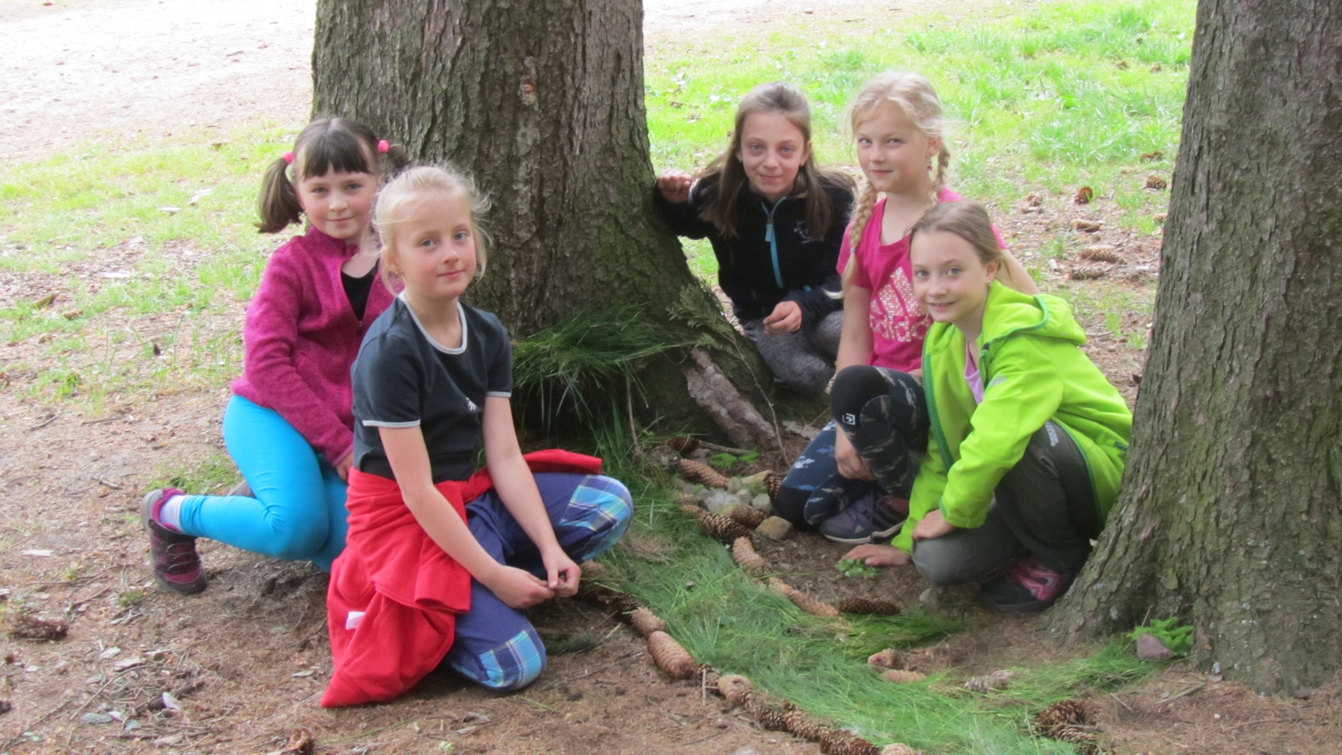 Nejmladší děti jely autobusem do Pěkova a po krátké svačince na louce za Michálkovými vyrazily nejkratší cestou na Ostaš. Po cestě zodpovídaly otázky na téma příroda. Na Ostaši v lese stavěly domečky z přírodních materiálů, které pak představily spolužákům.